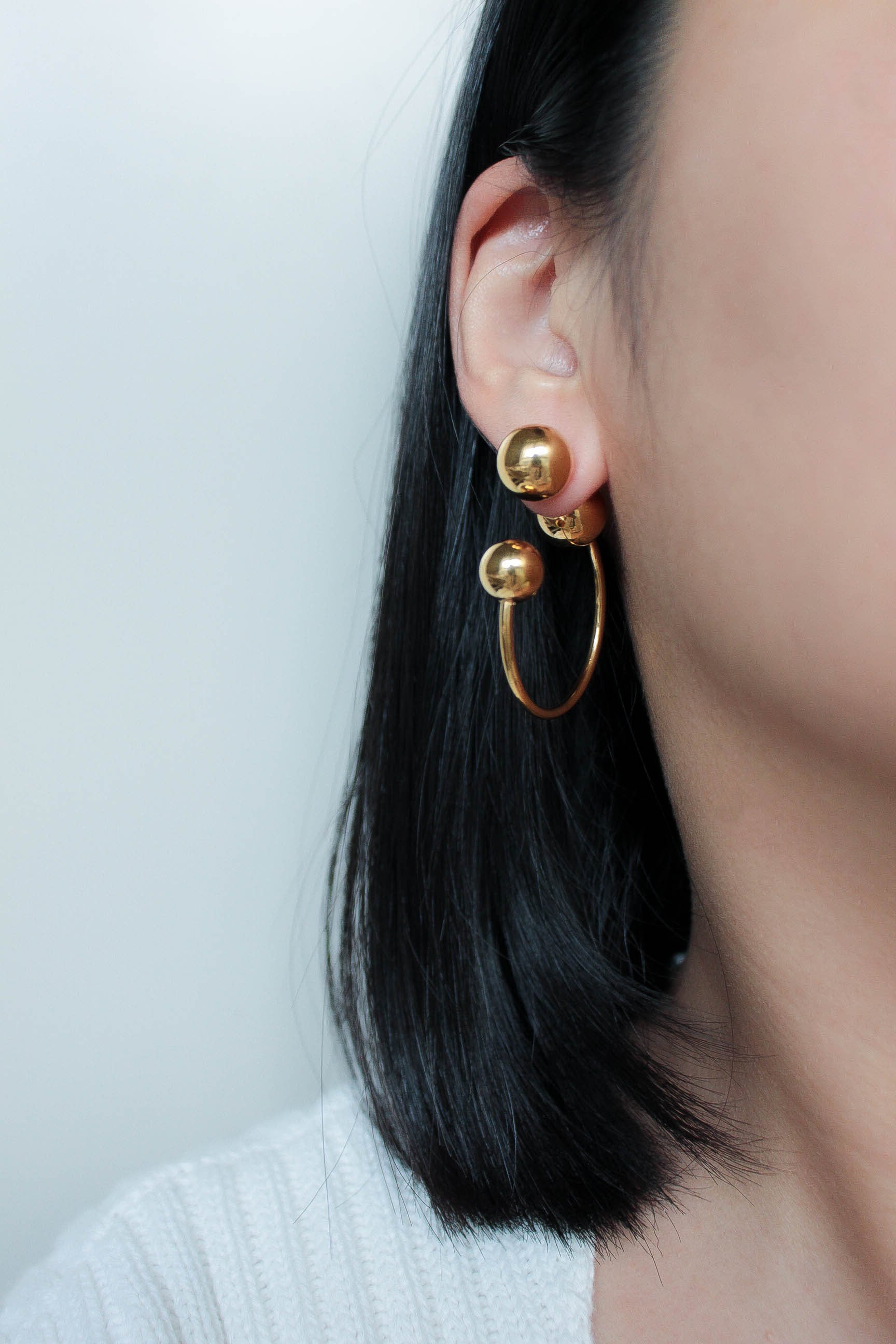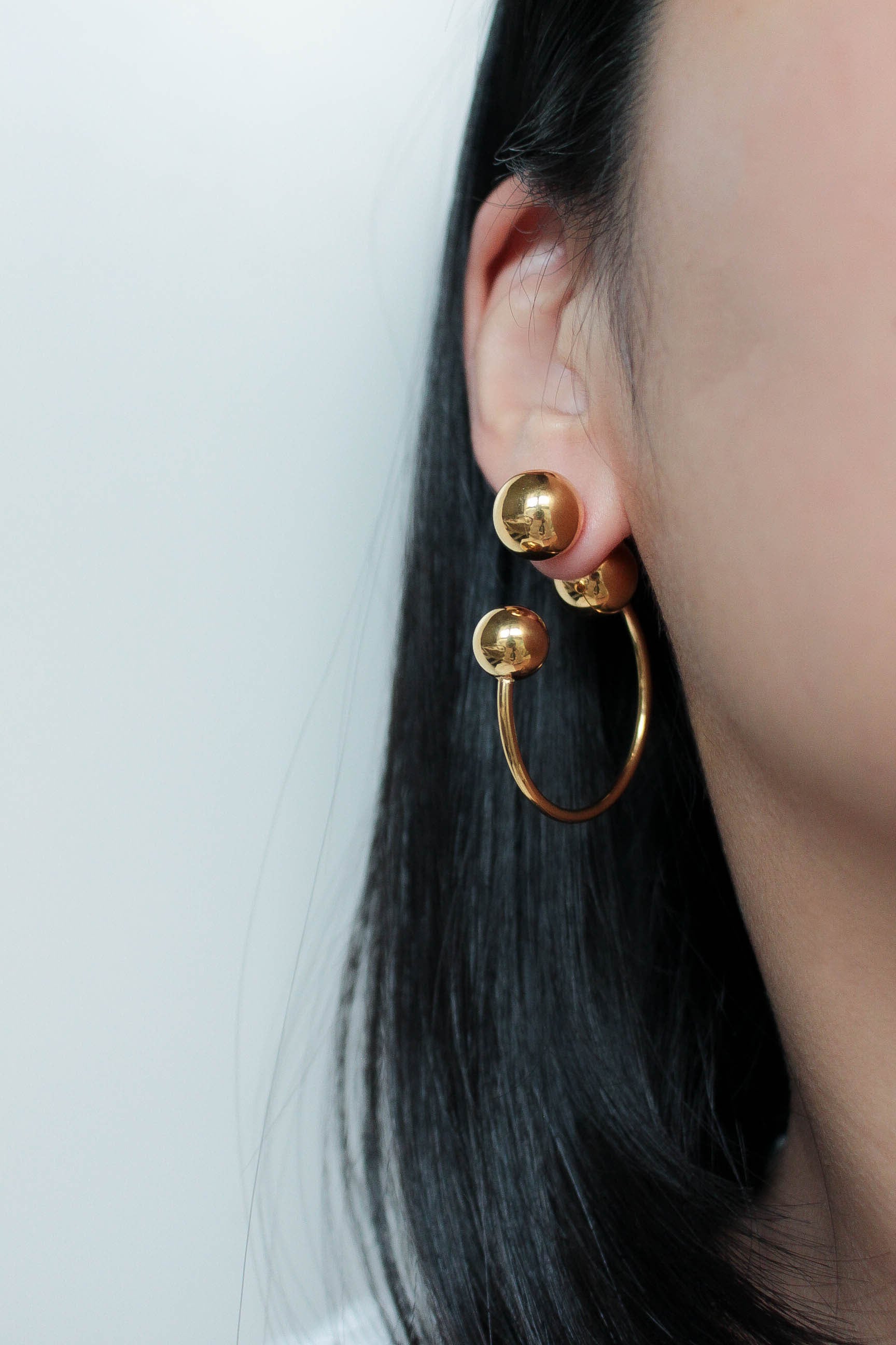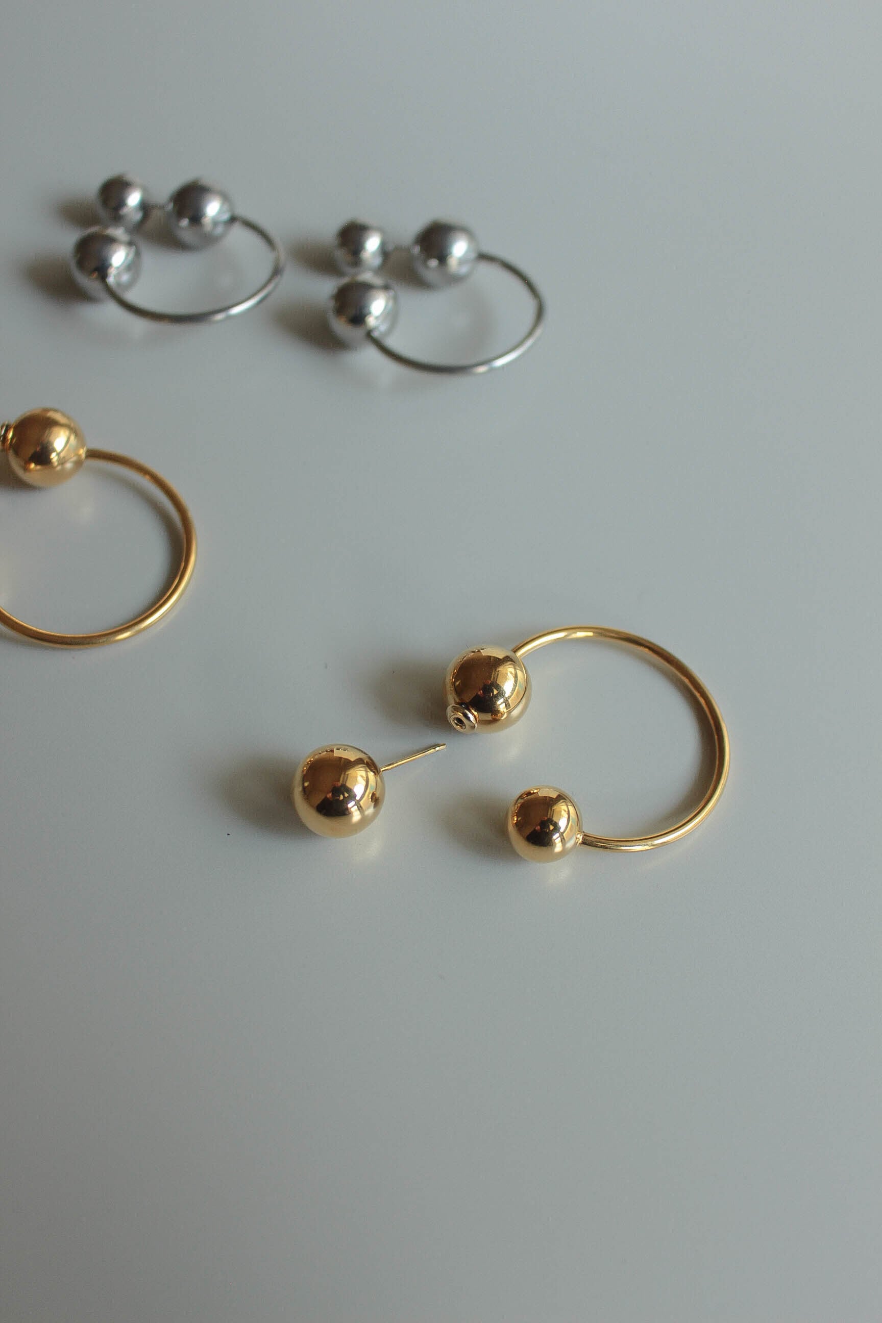 キャッチ部分もボールモチーフを用いたエッジの効いたお洒落ピアス。