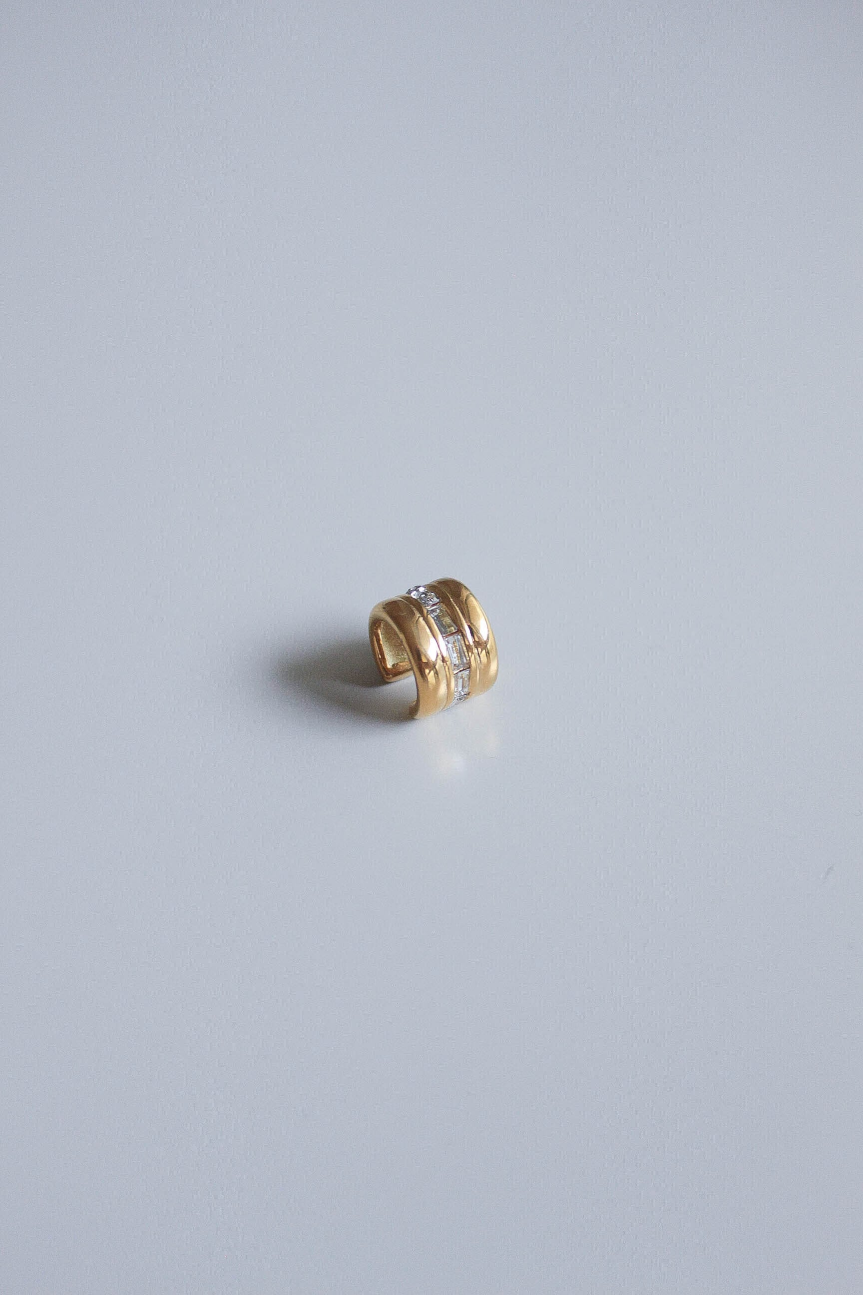 スクエアのジルコニアダイヤをレールセットしたジルコニアイヤーカフ。
