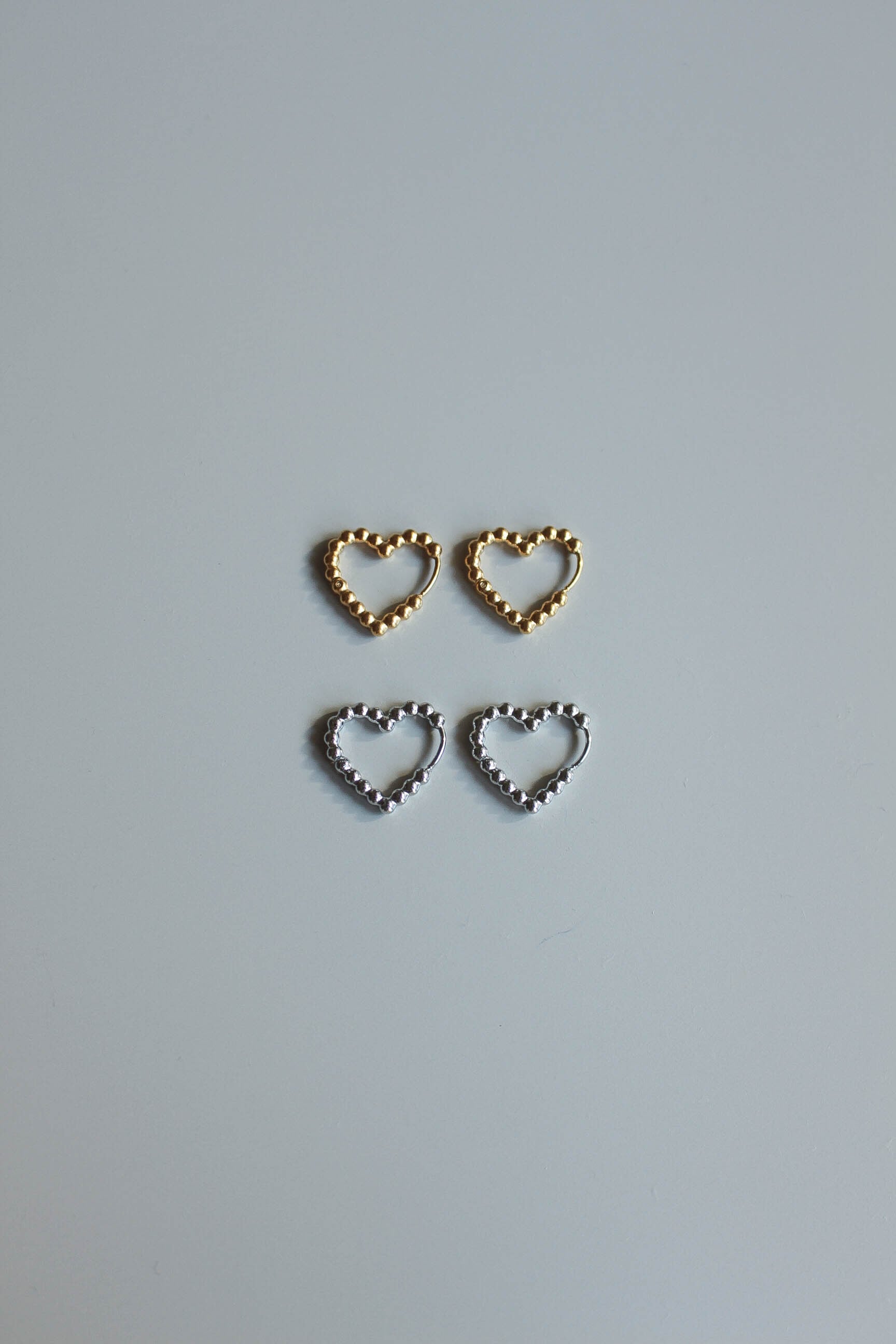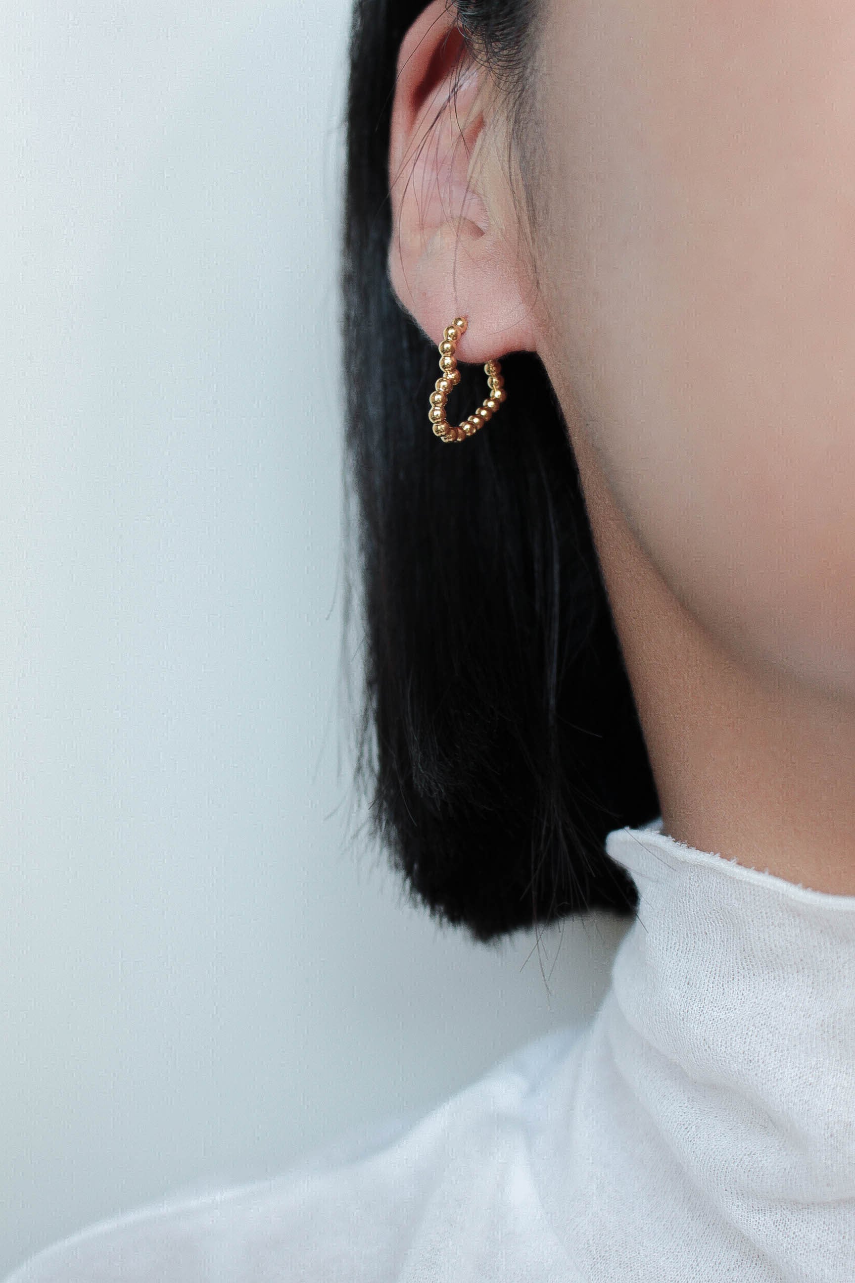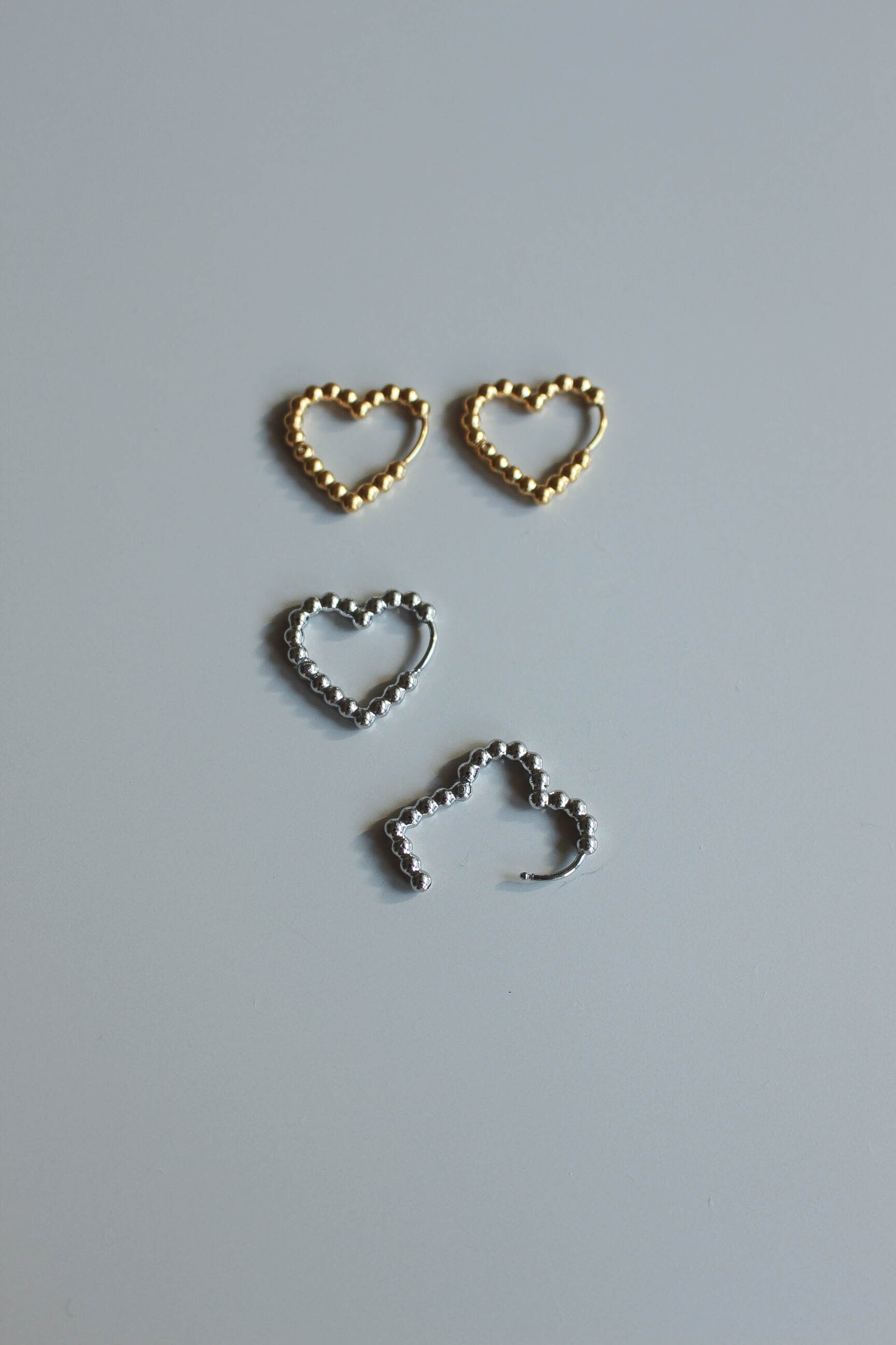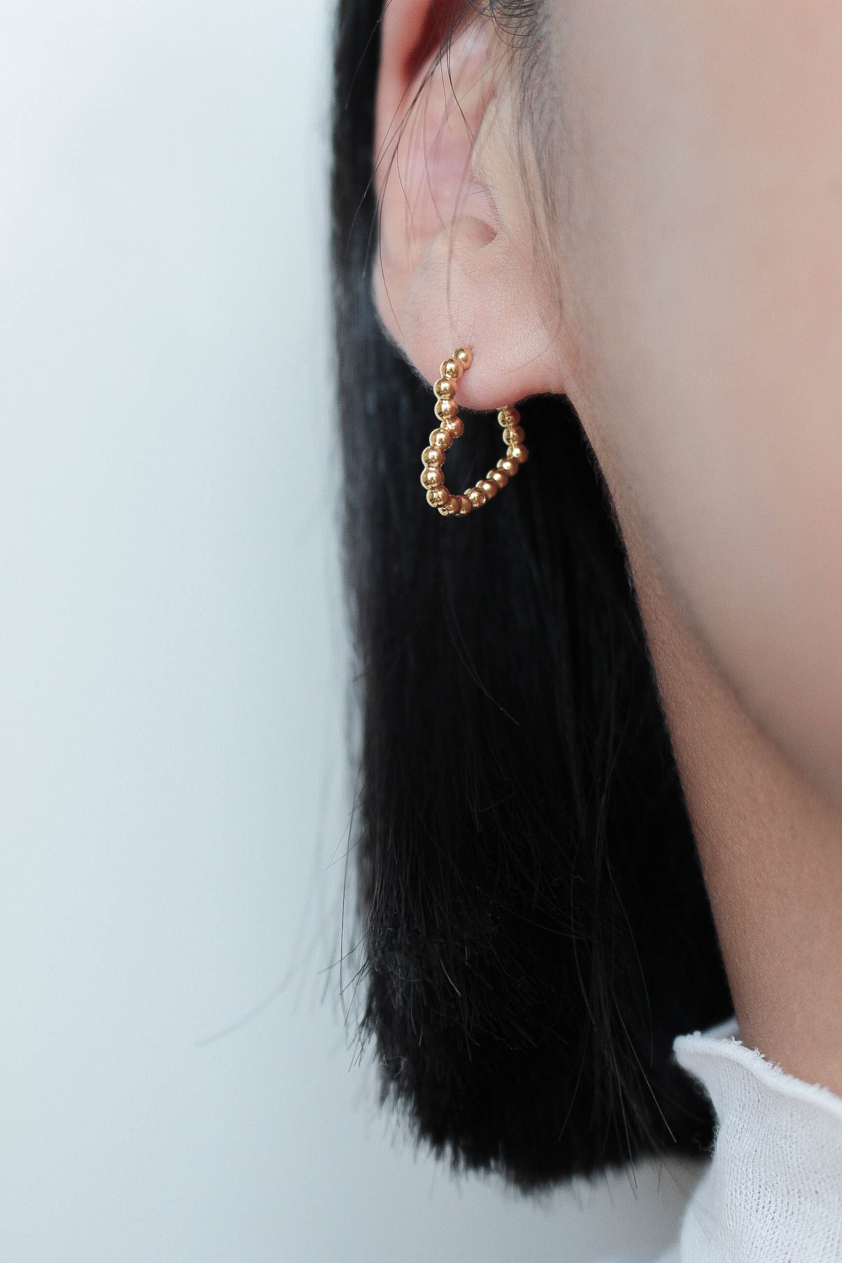 ハートフープをビーズでデザインしたシンプルなフープピアス。