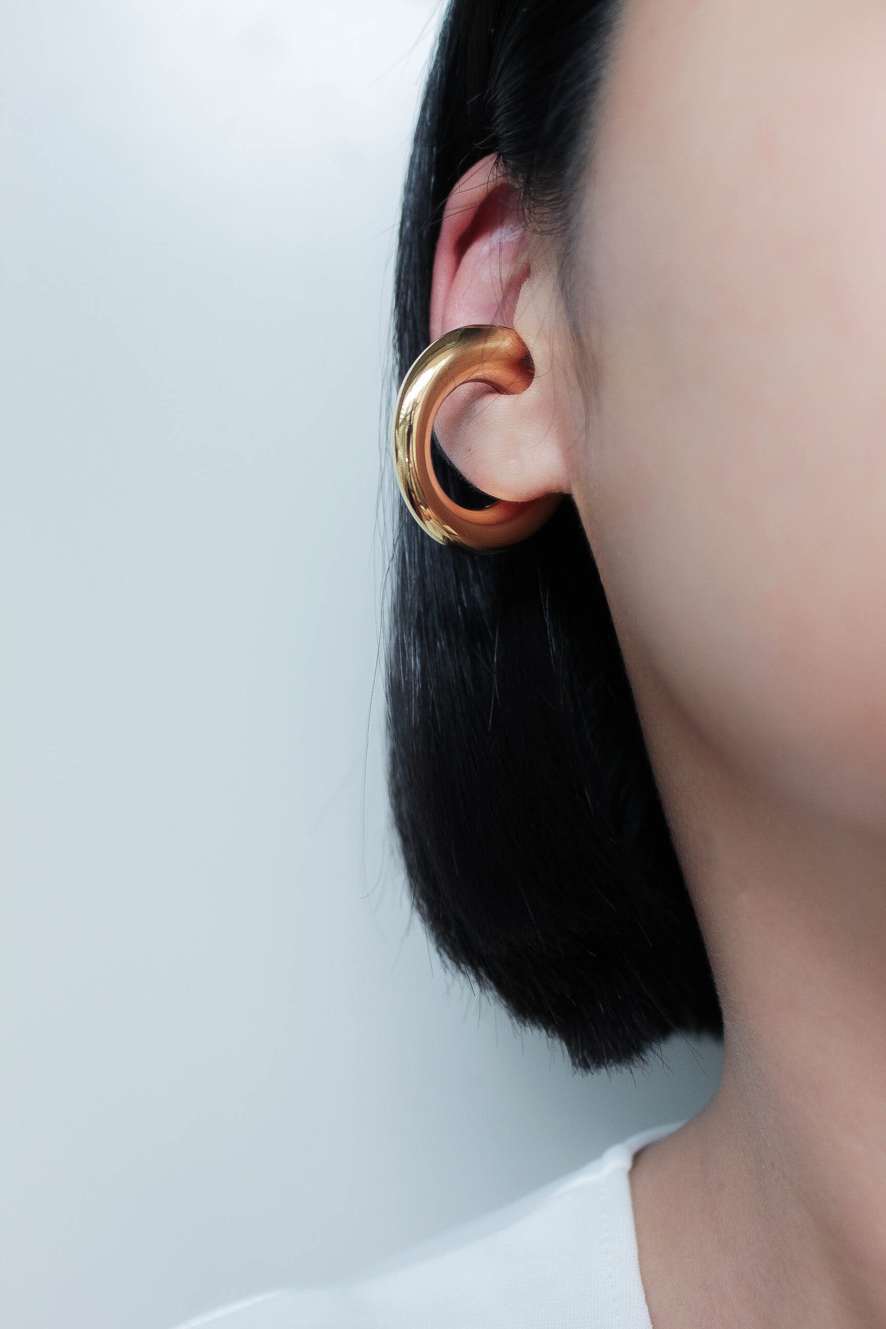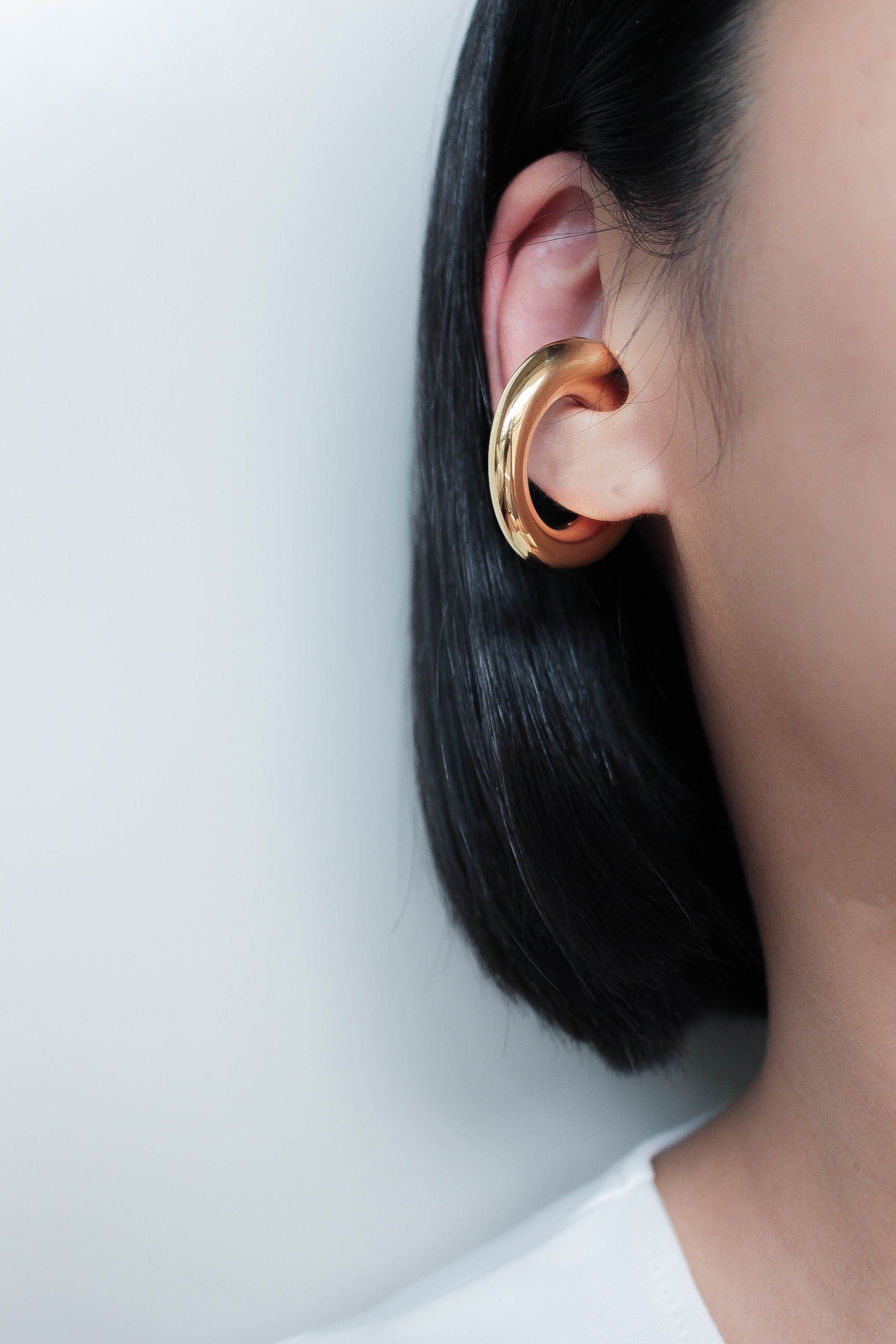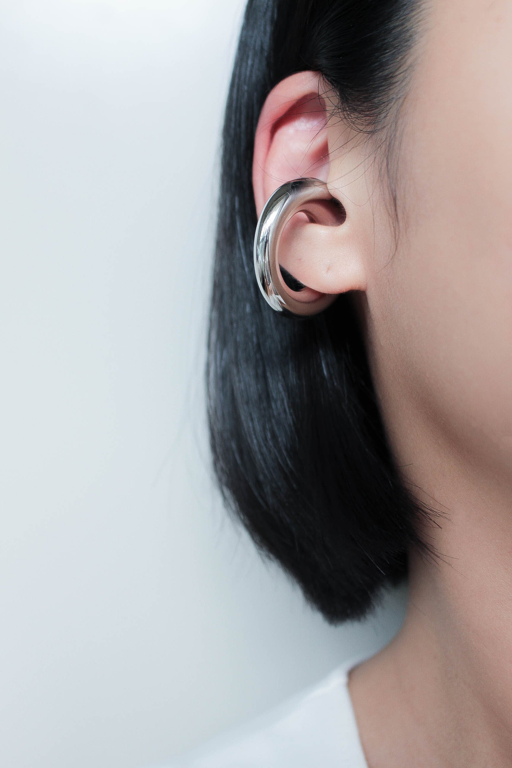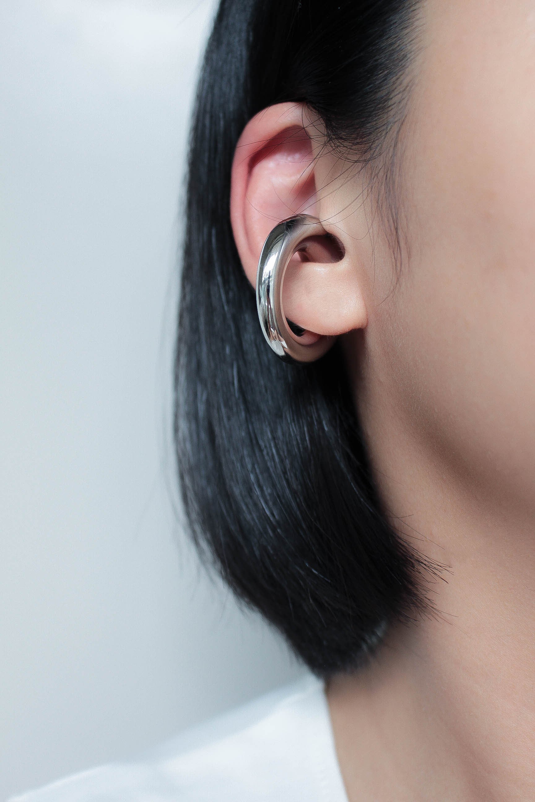 中央にかけて緩やかに厚みのある大ぶりのイヤーカフ。