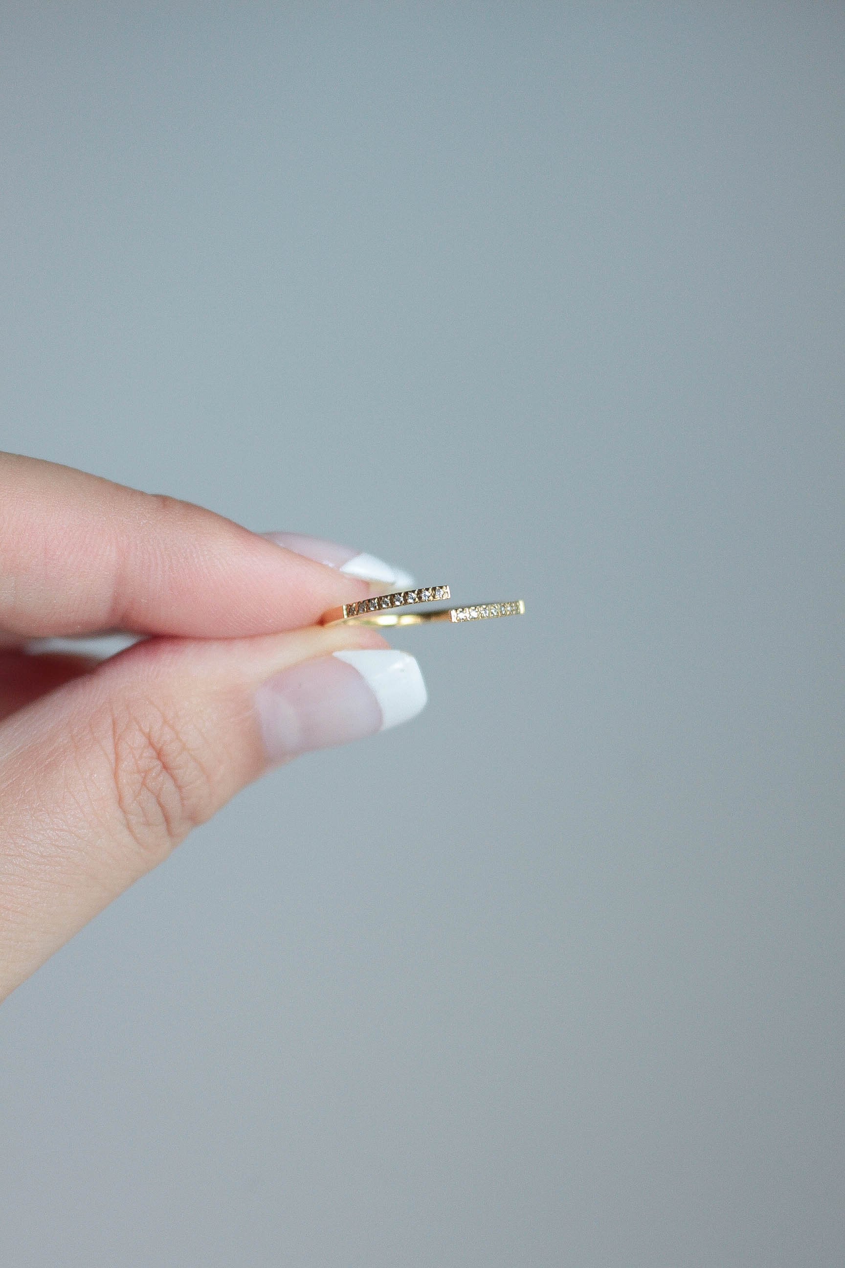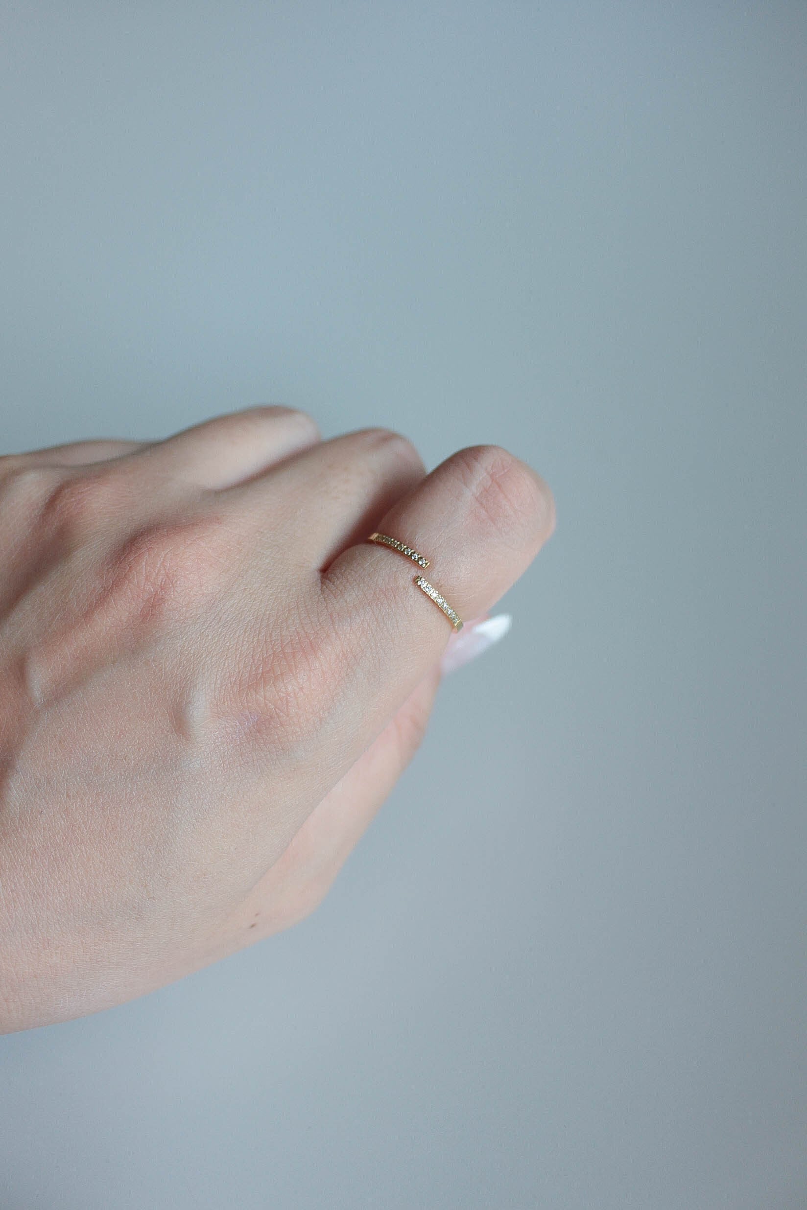 ラインに沿ってジルコニアダイヤをセットしたサイズ調節可能なオープンリング。むくみを気にせず着用できるお洒落リングです。