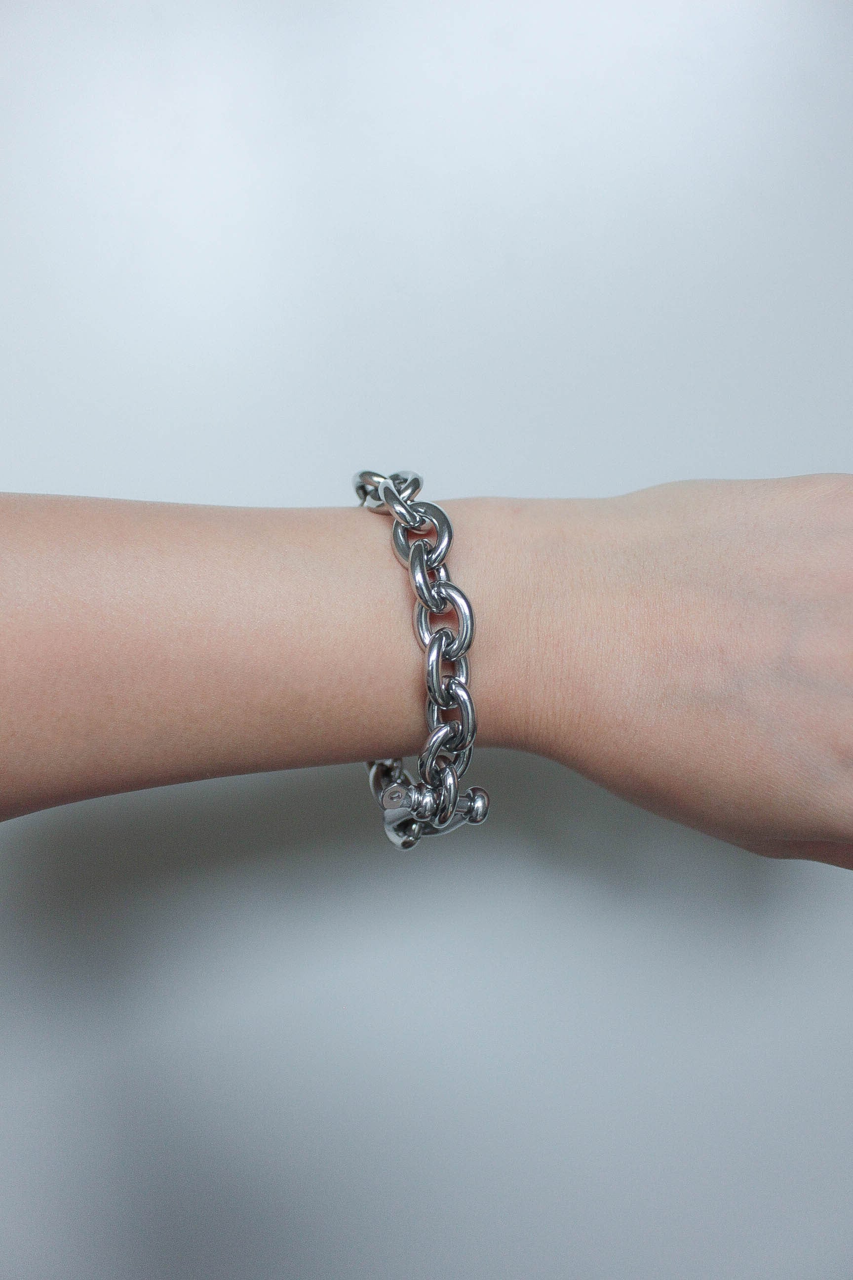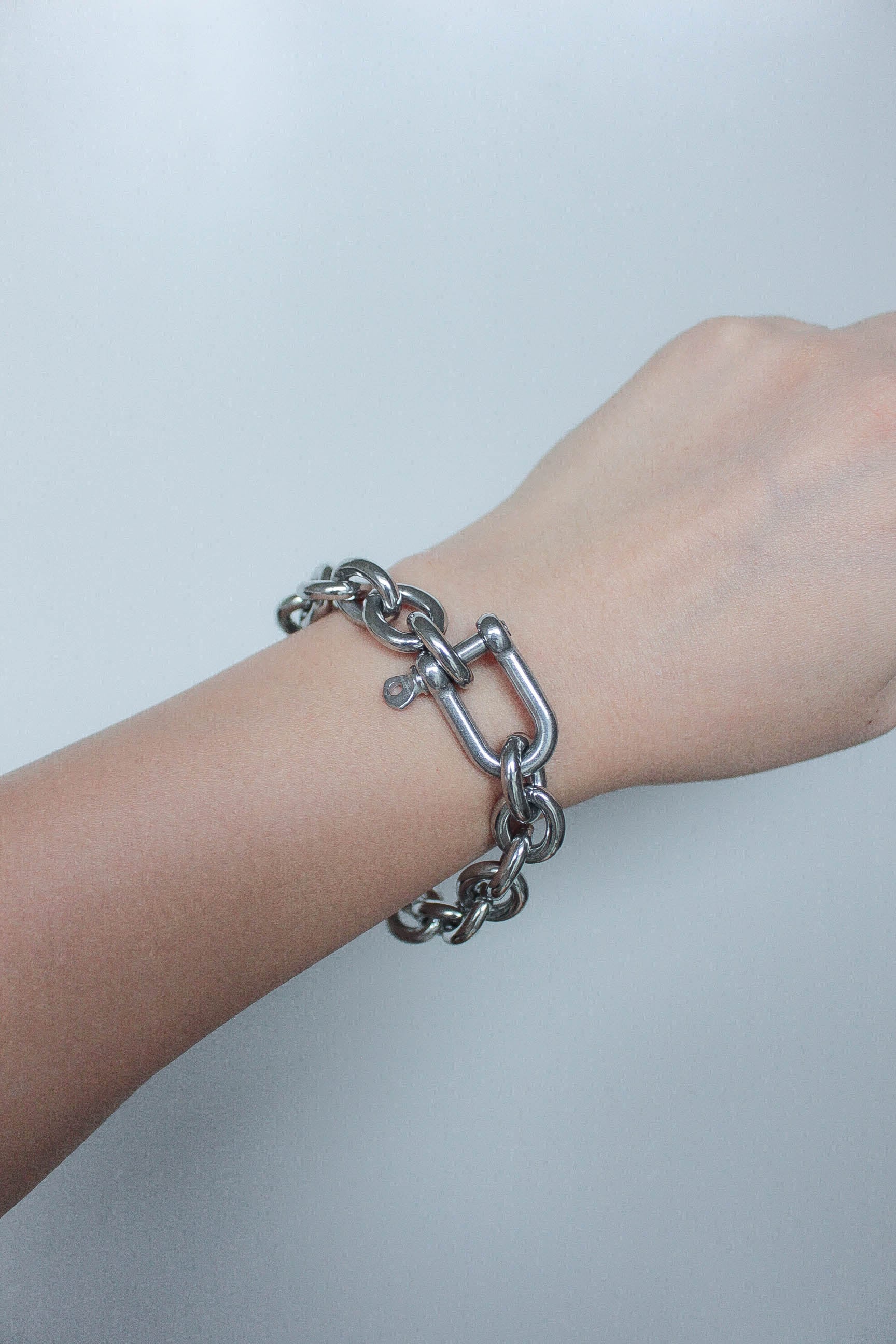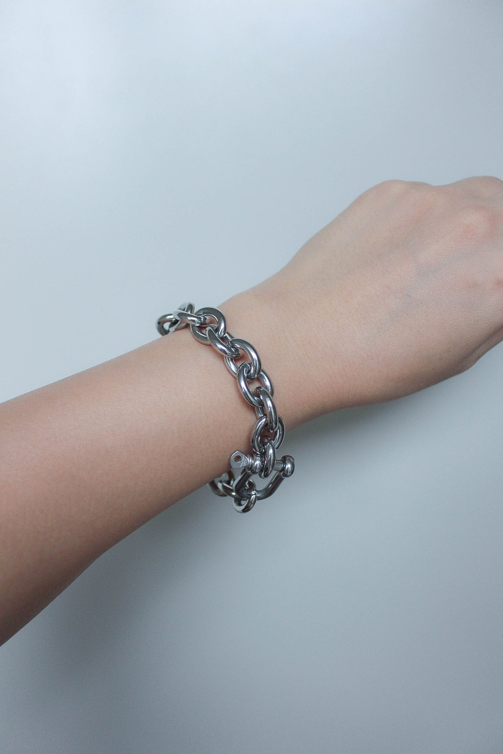 留め具部分にデザイン性を加えた上品な艶感、重厚感のあるブレスレット。