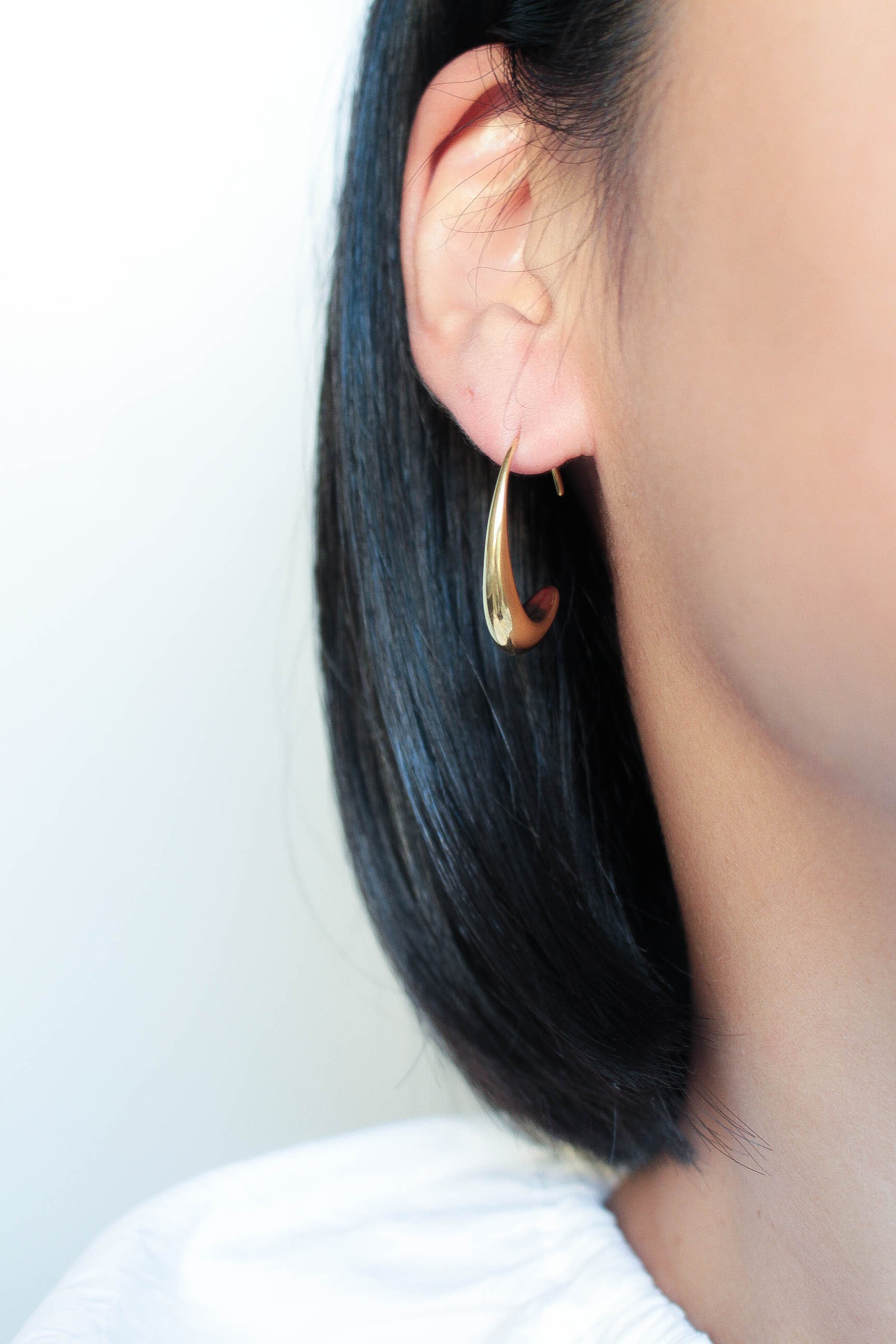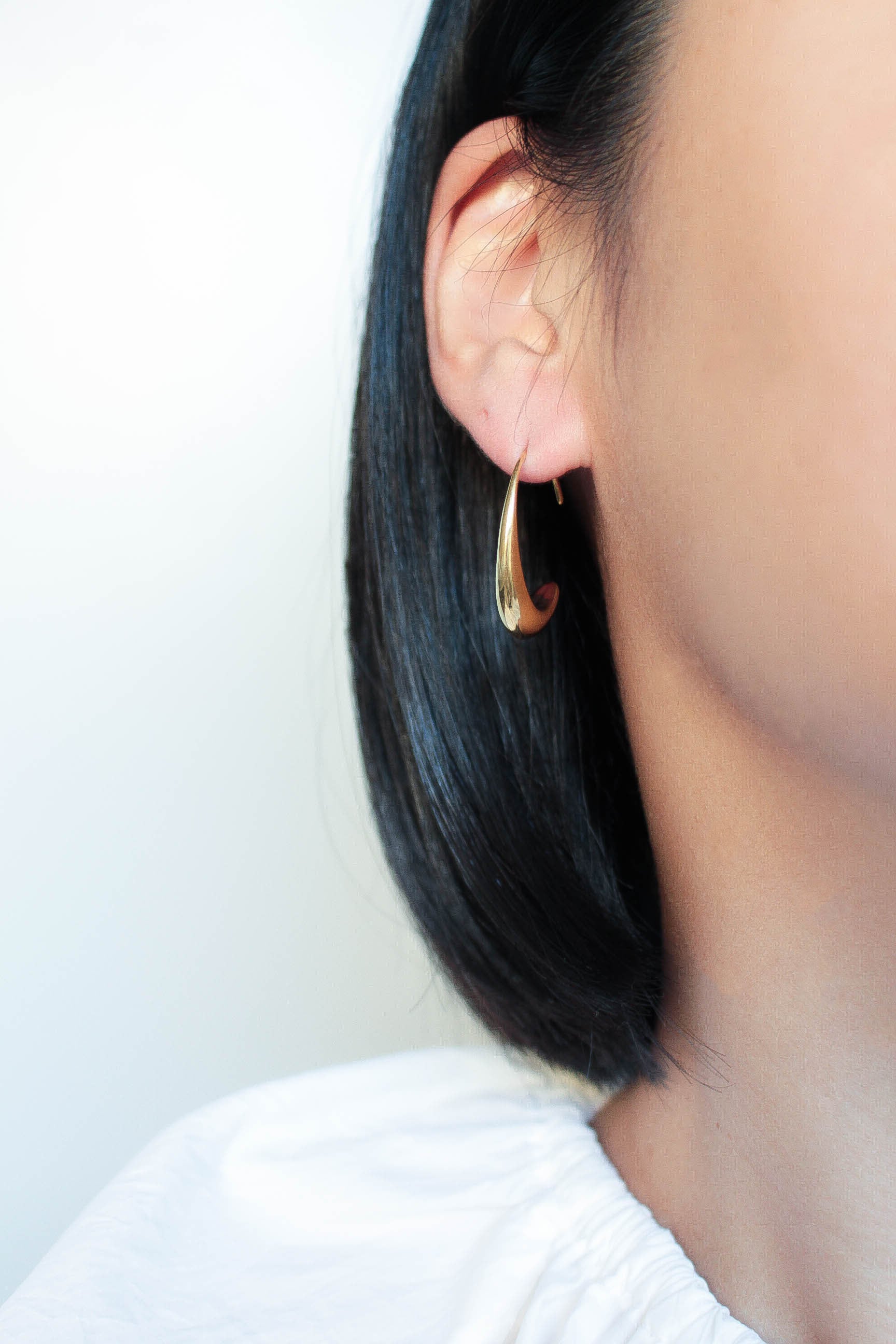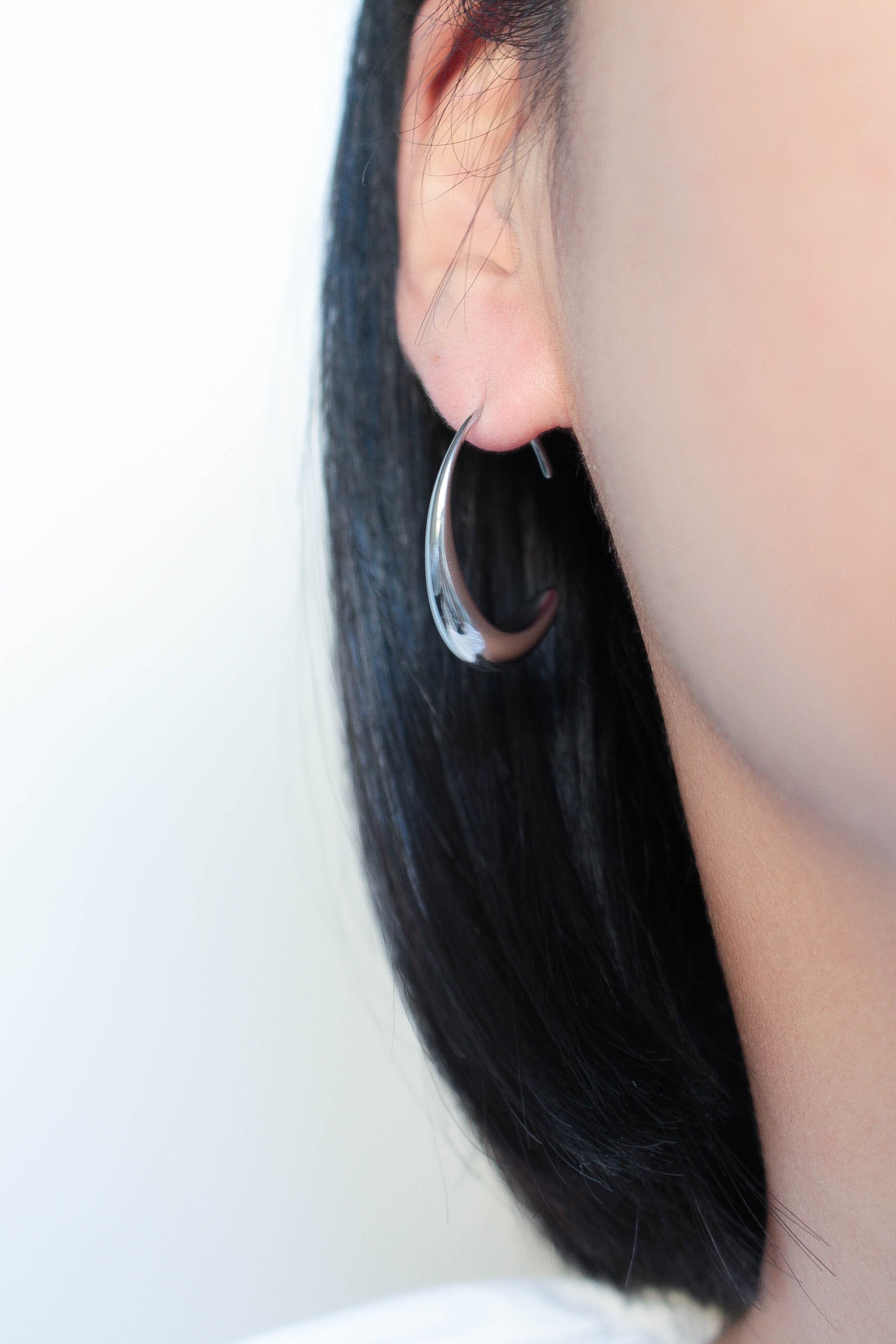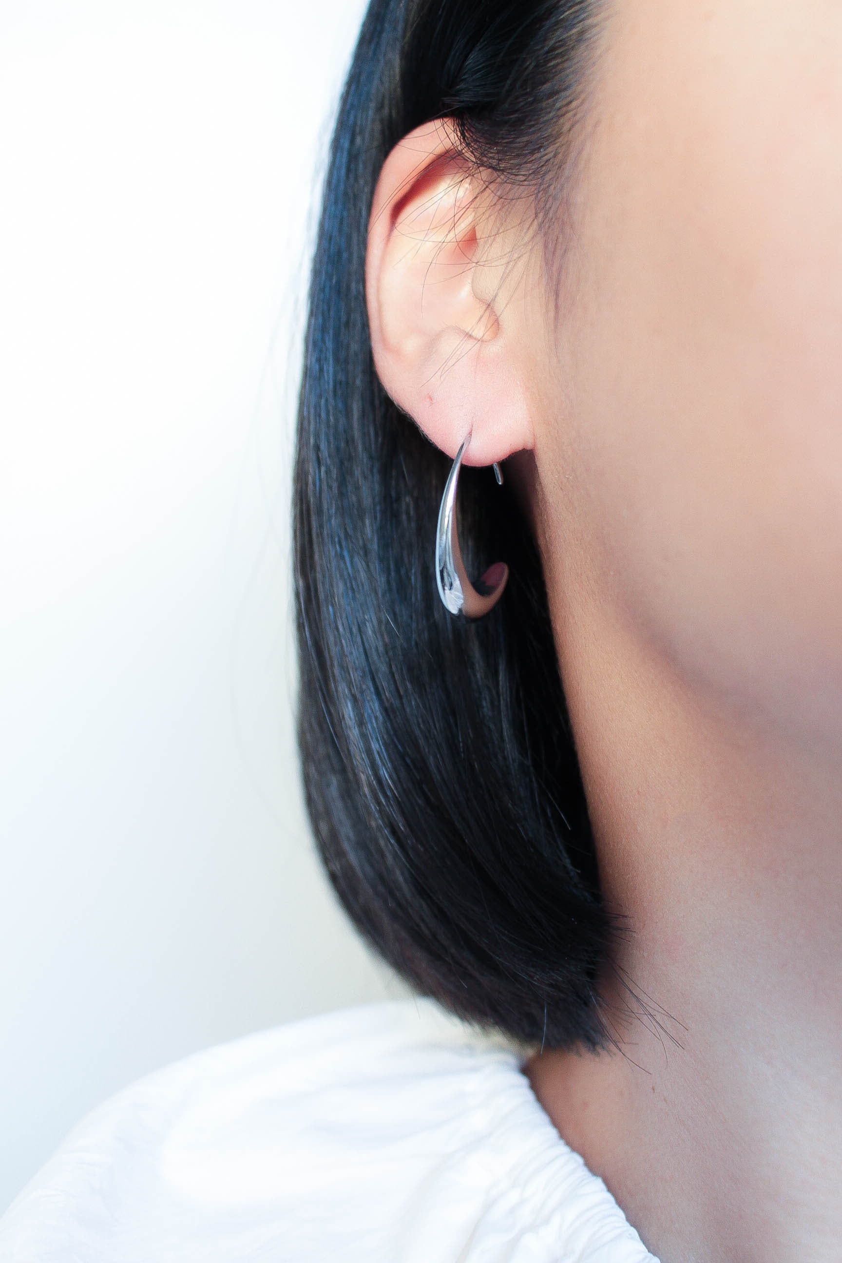 しなやかなラインが耳元に自然な動きを生み、角度によって異なる輝きを楽しめるデザイン。