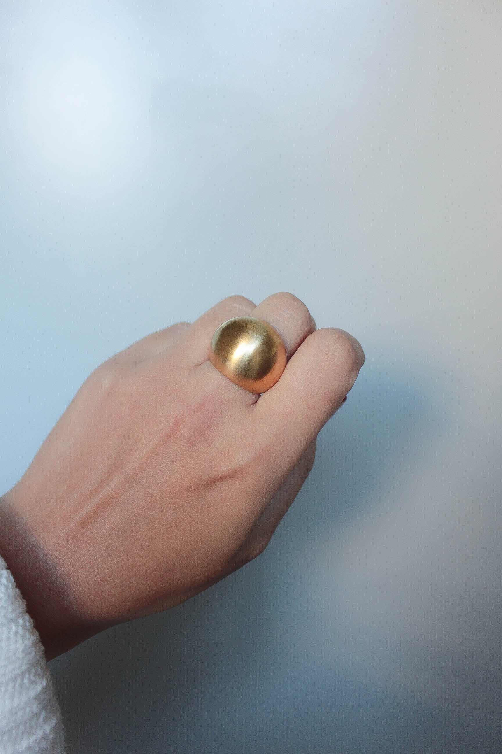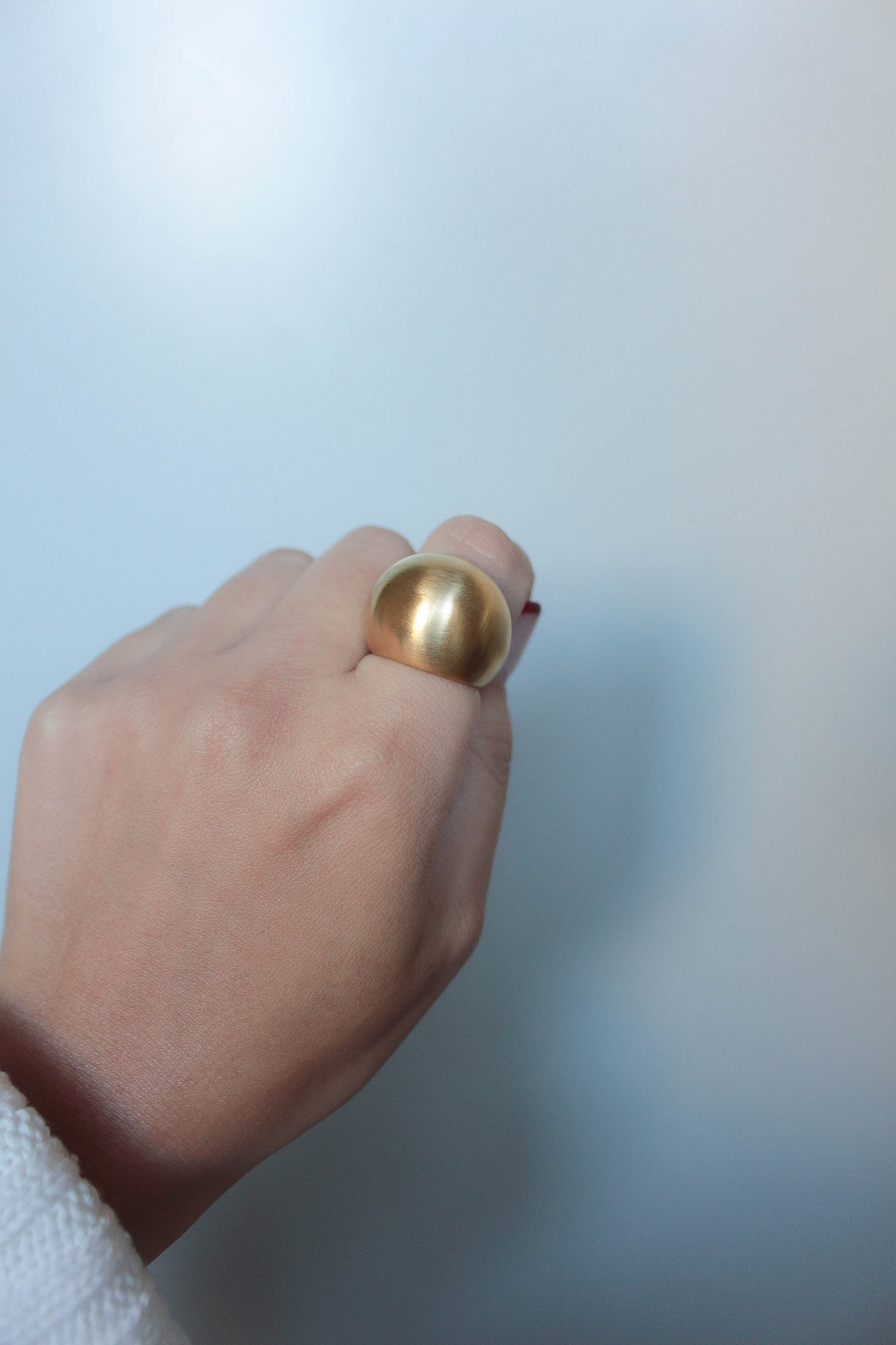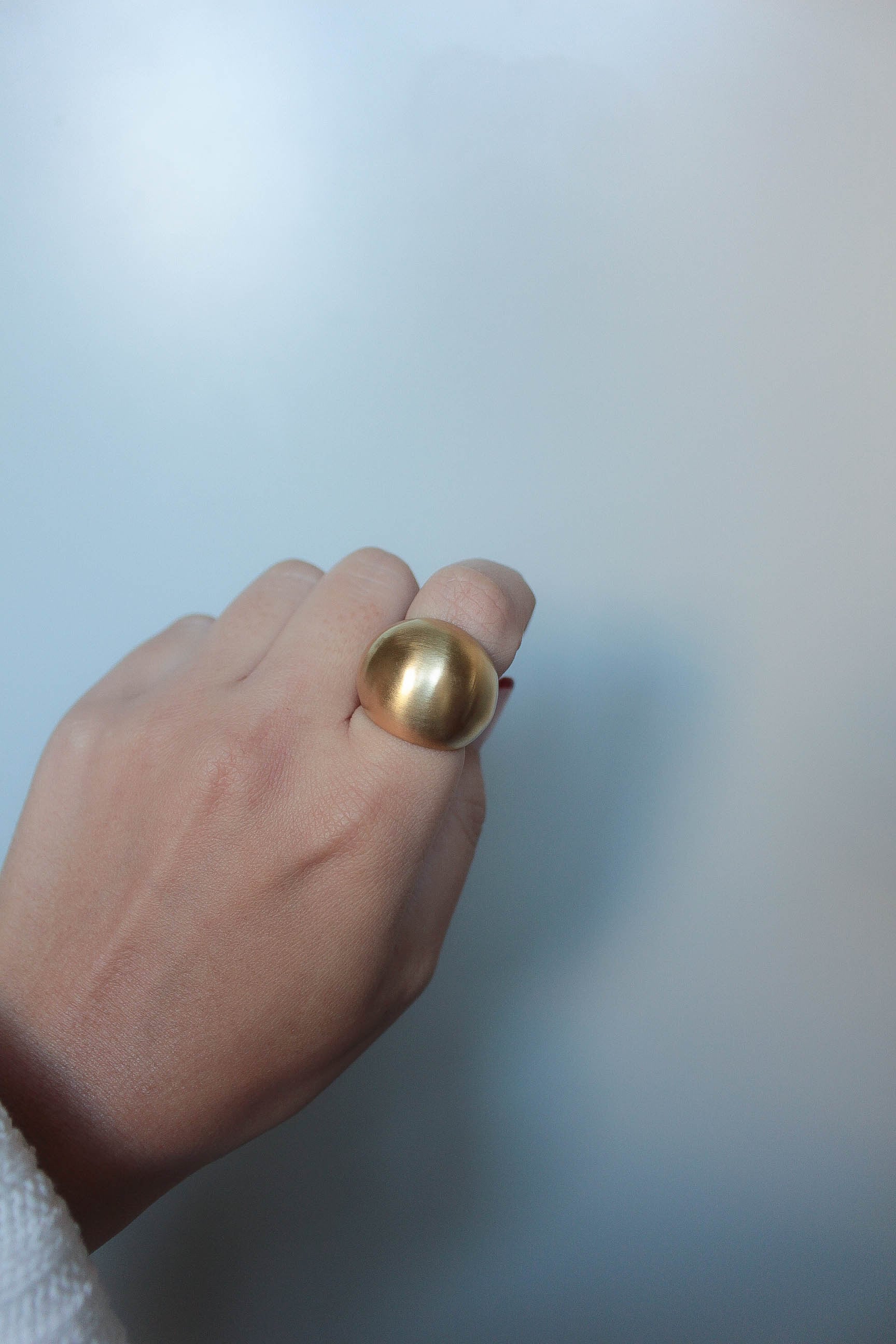 柔らかな光をまとうマットゴールドが魅力のドームリング。