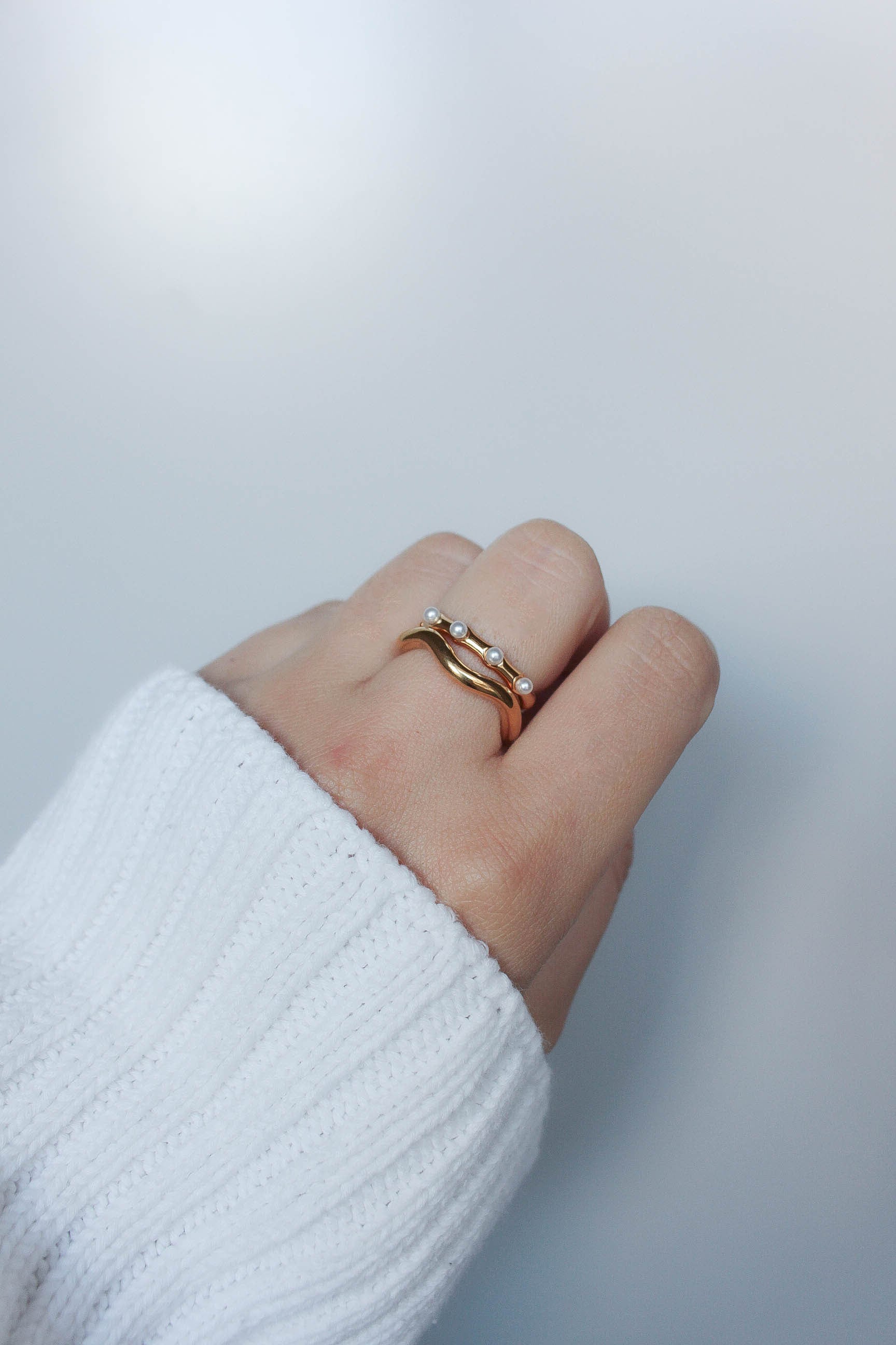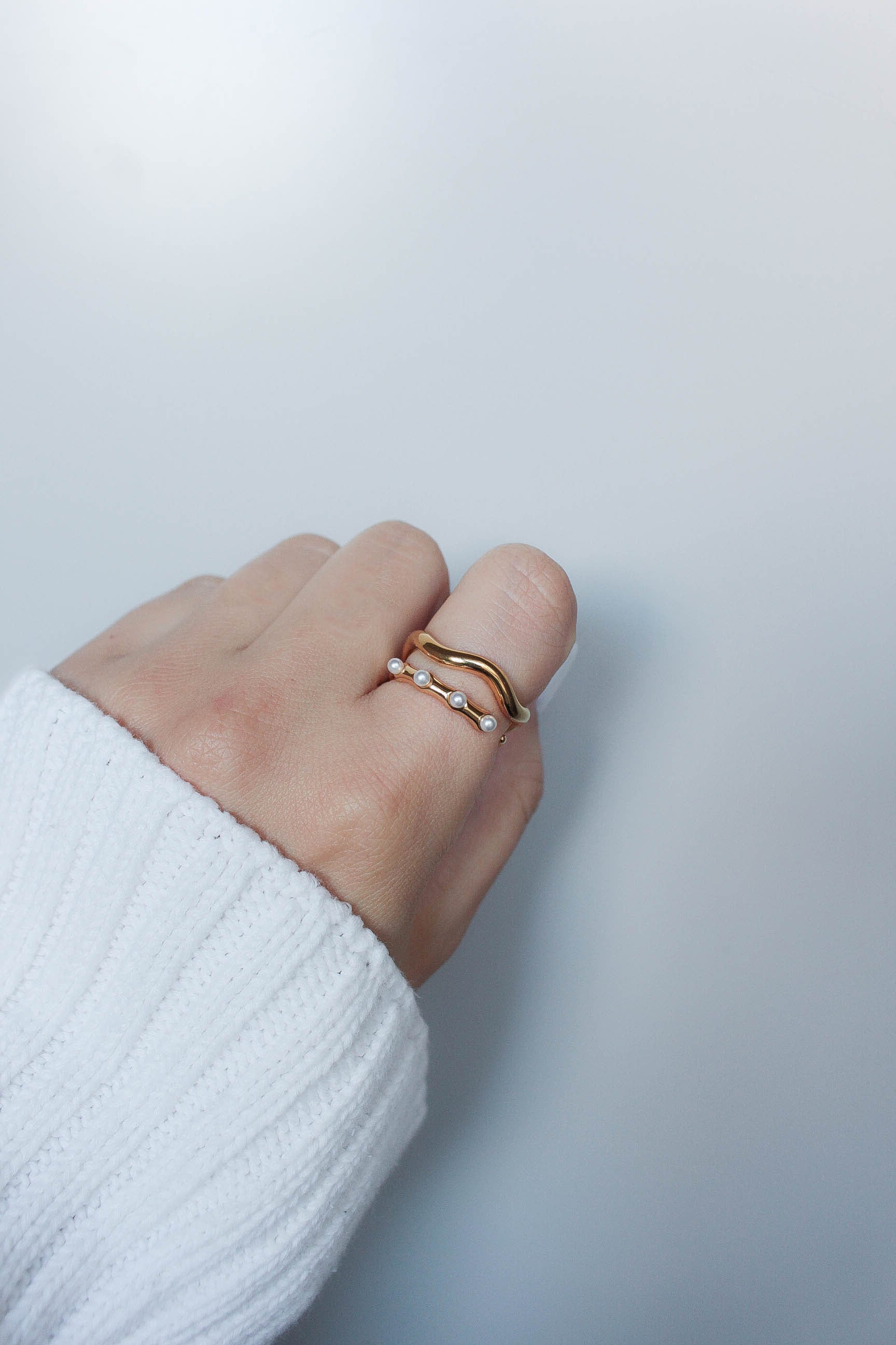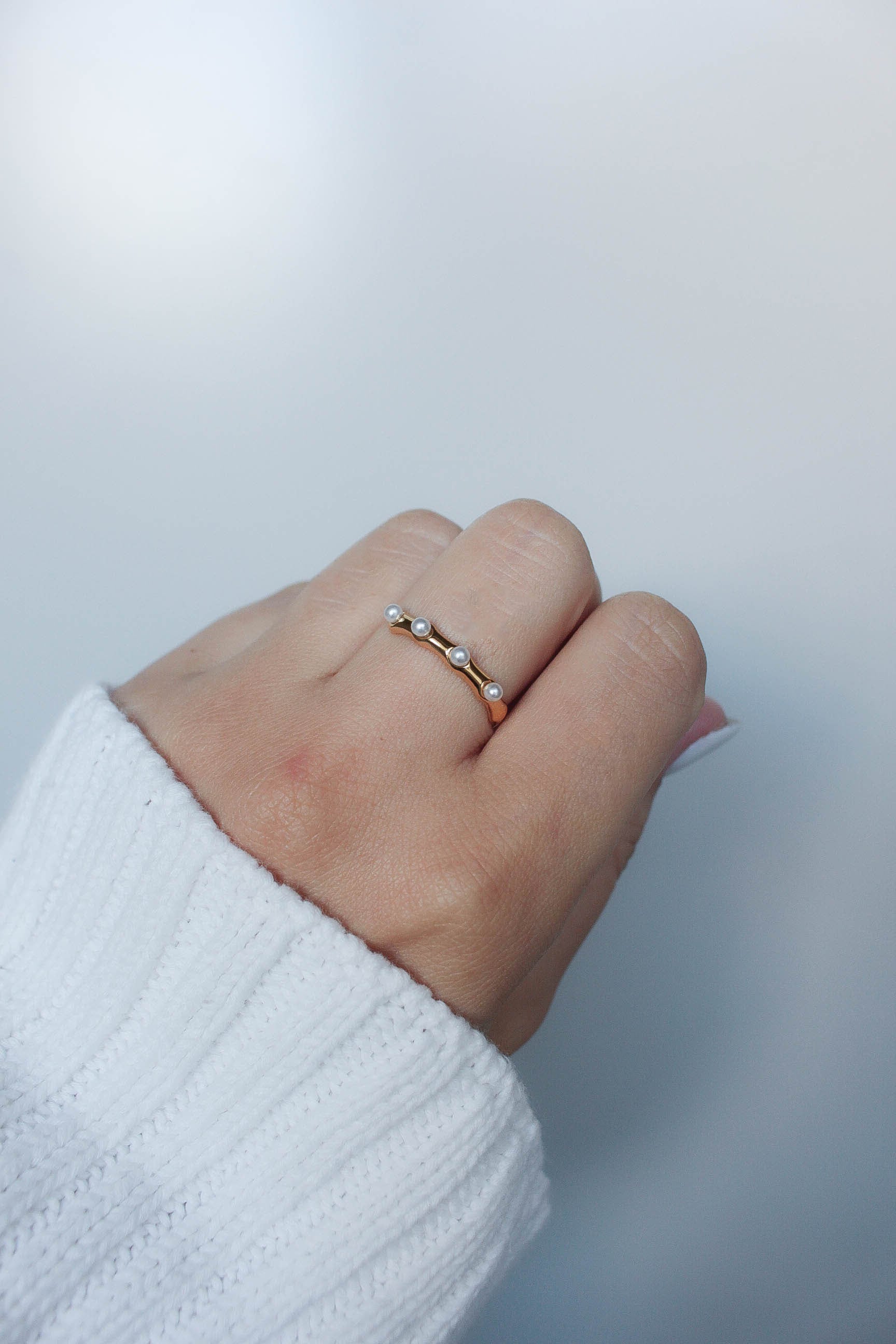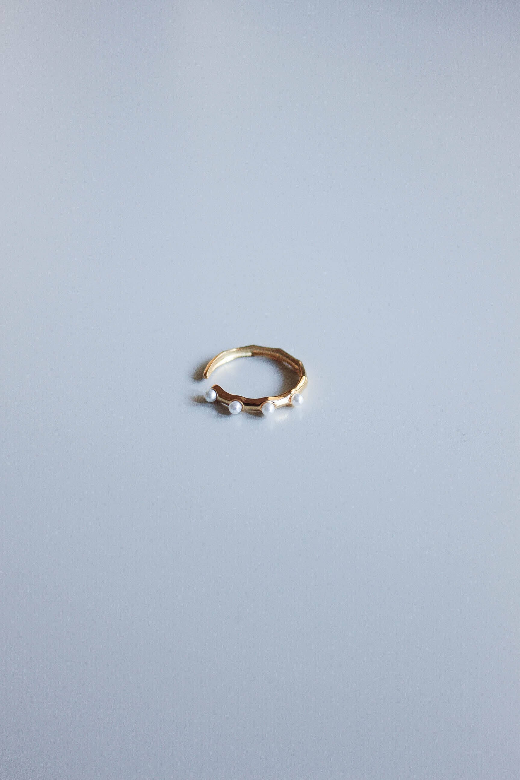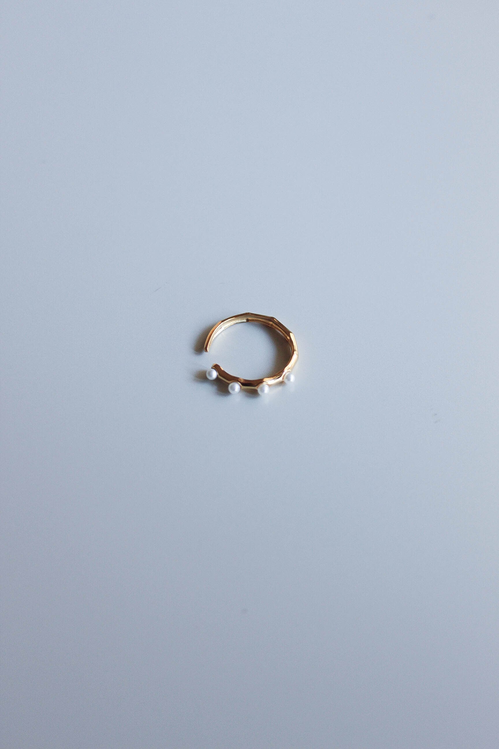 繊細なパールが並ぶ、華奢なオープンリング。