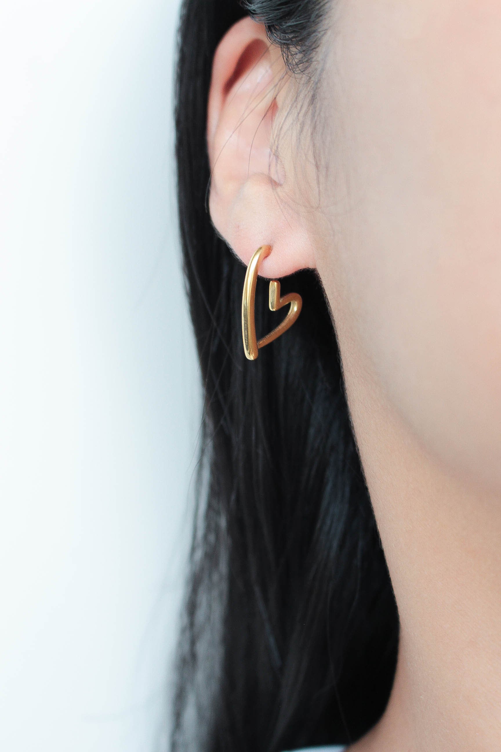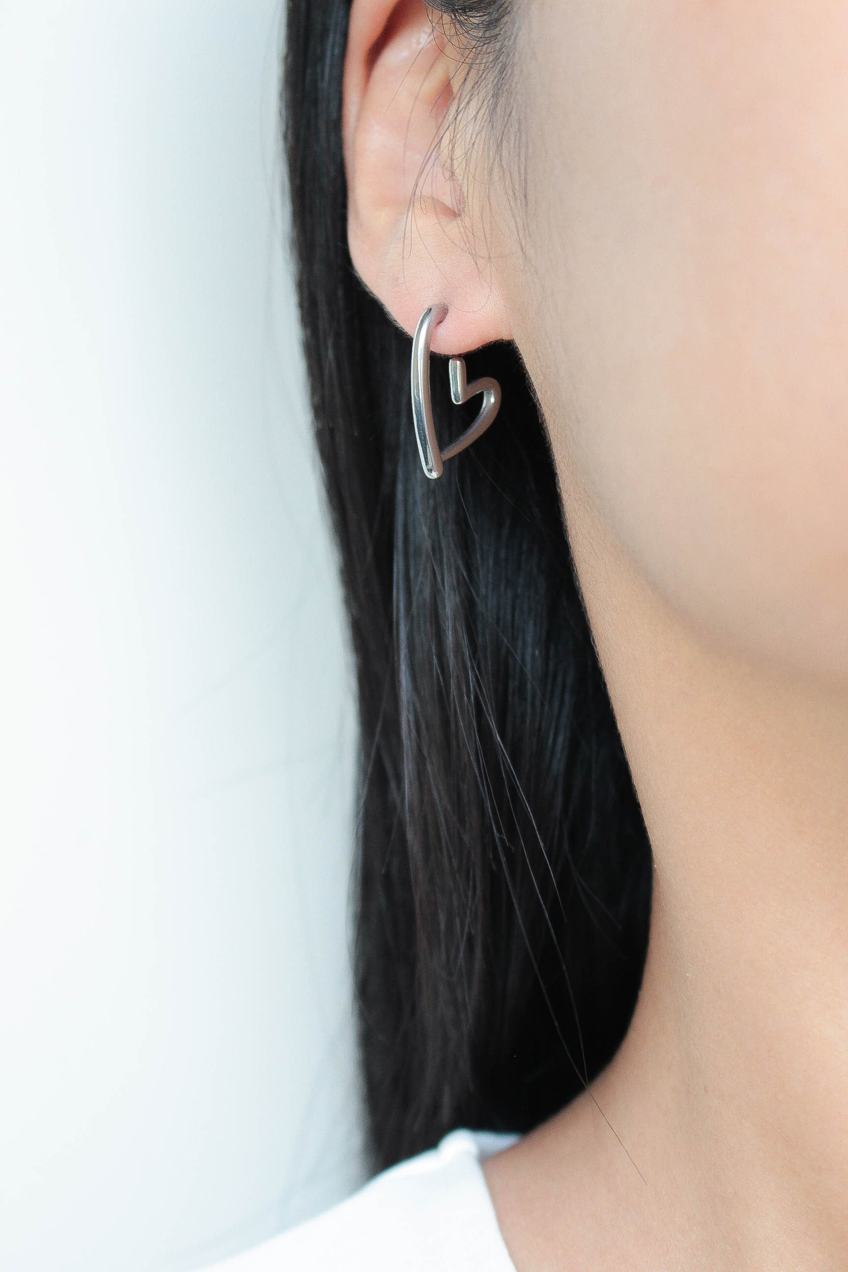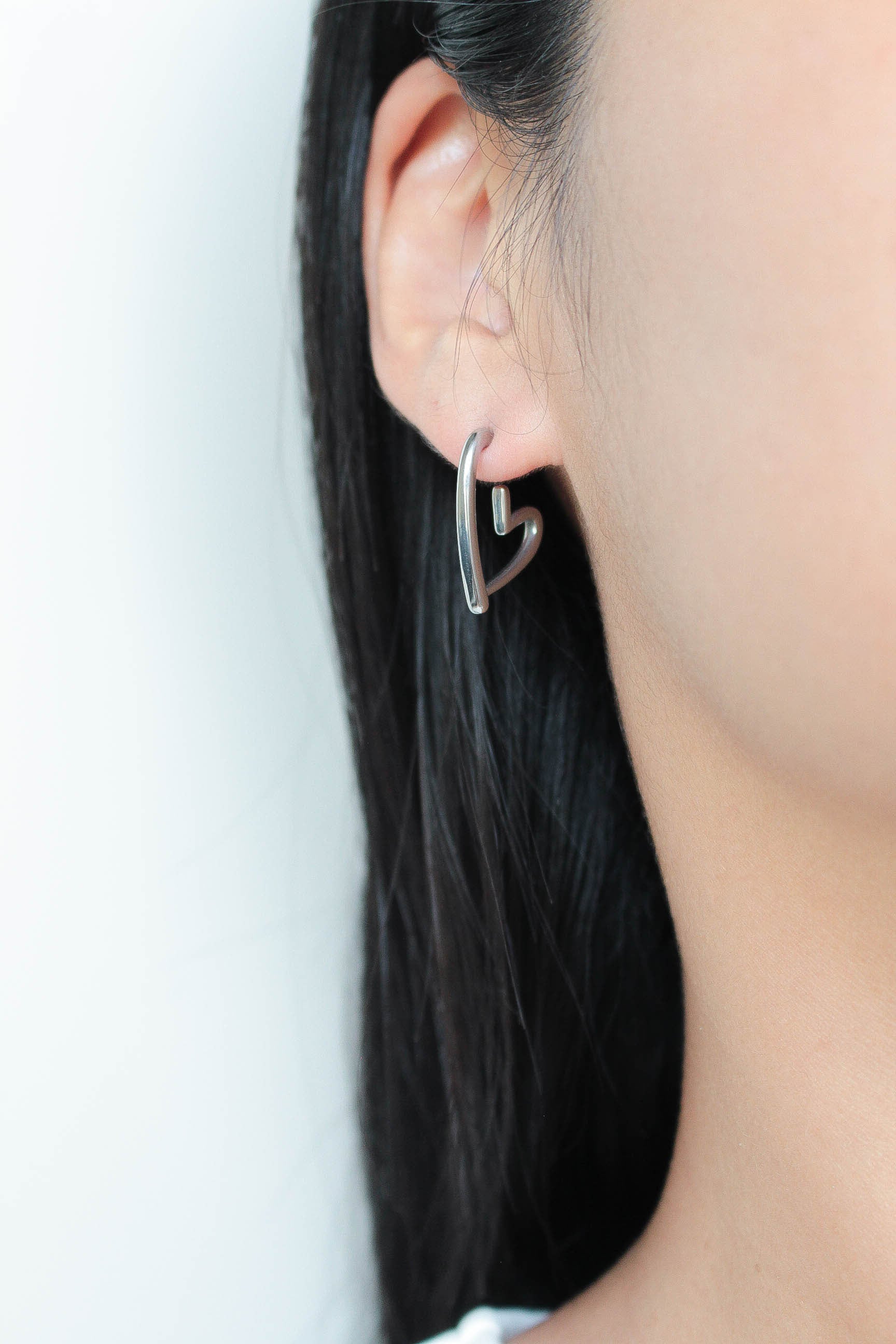 立体的で少しアシンメトリーなハートラインが印象的なピアス。