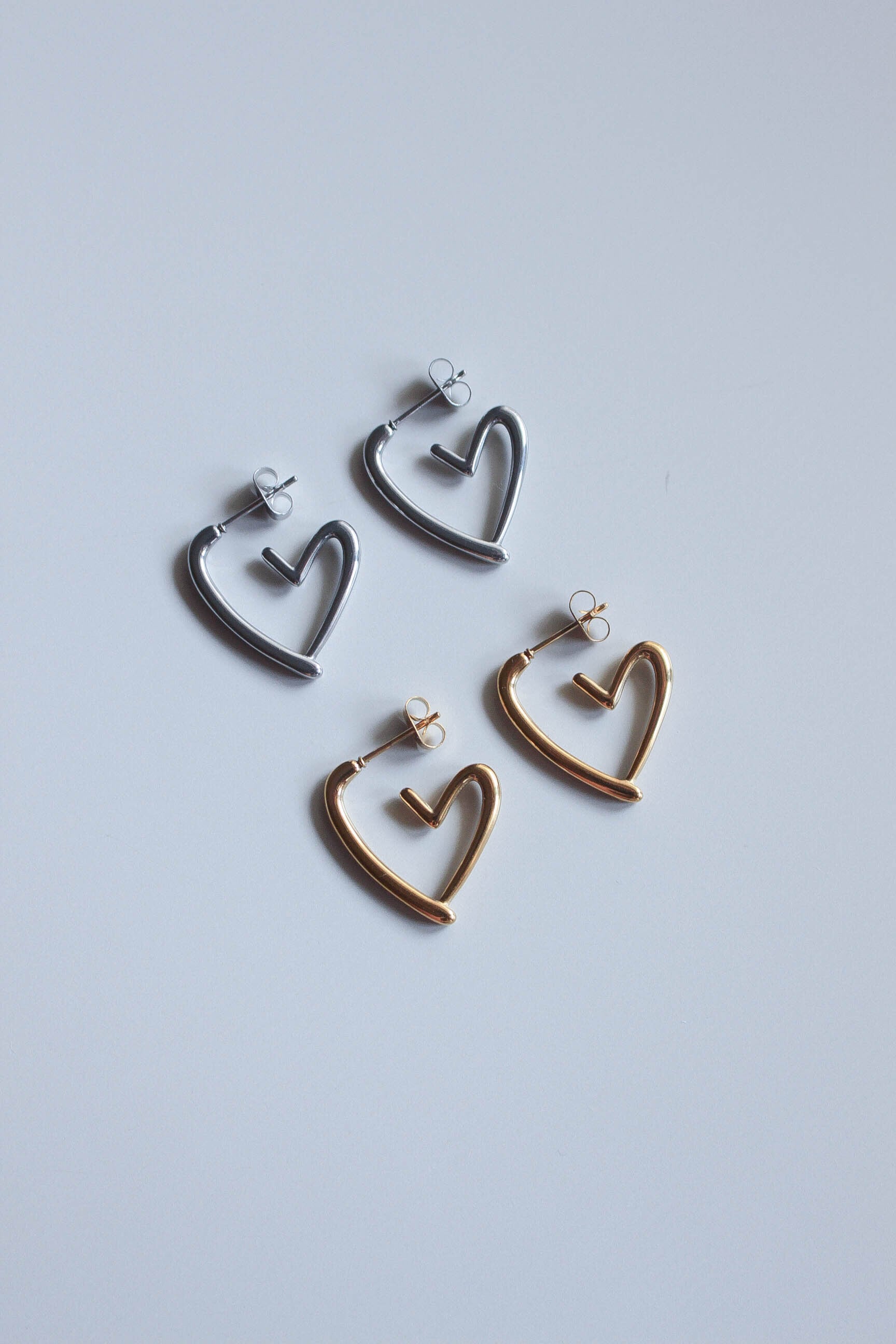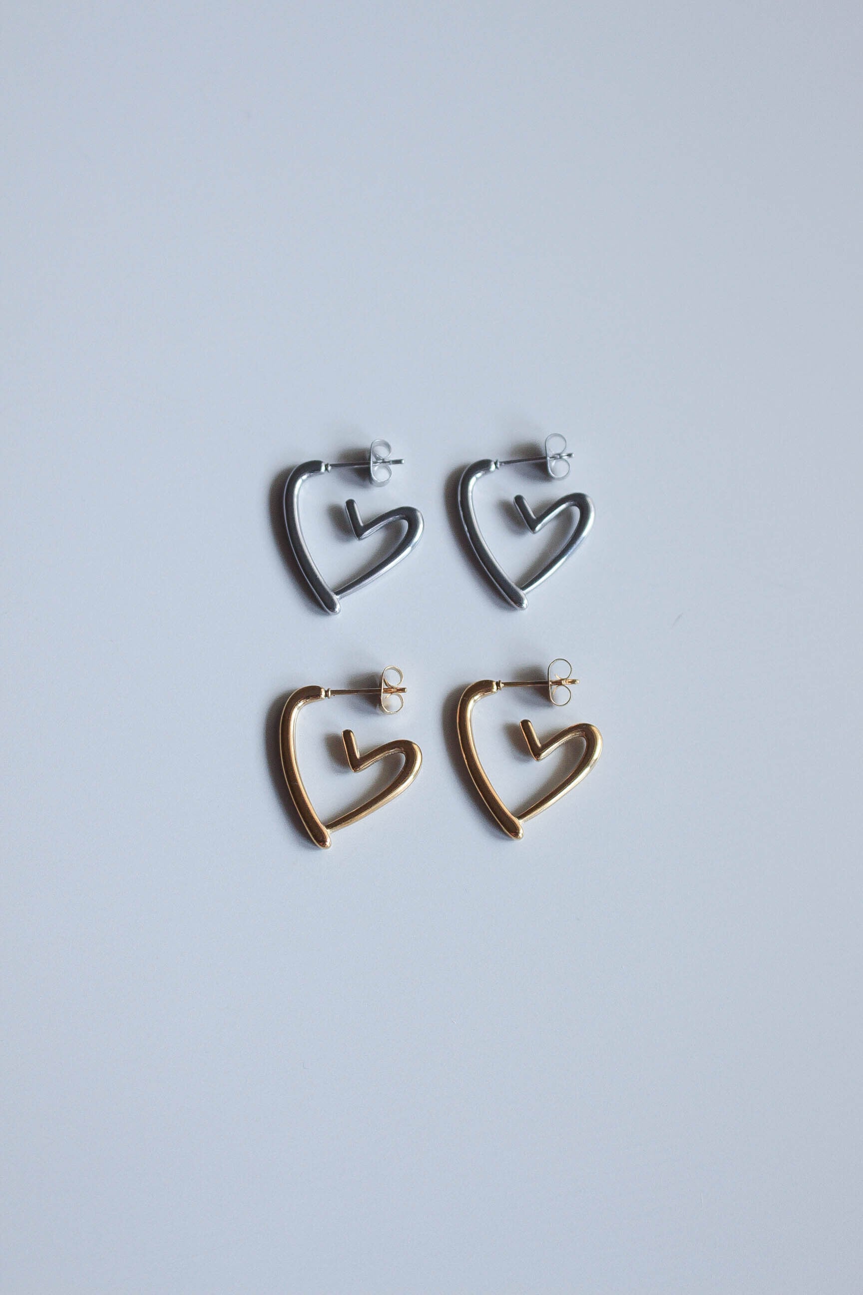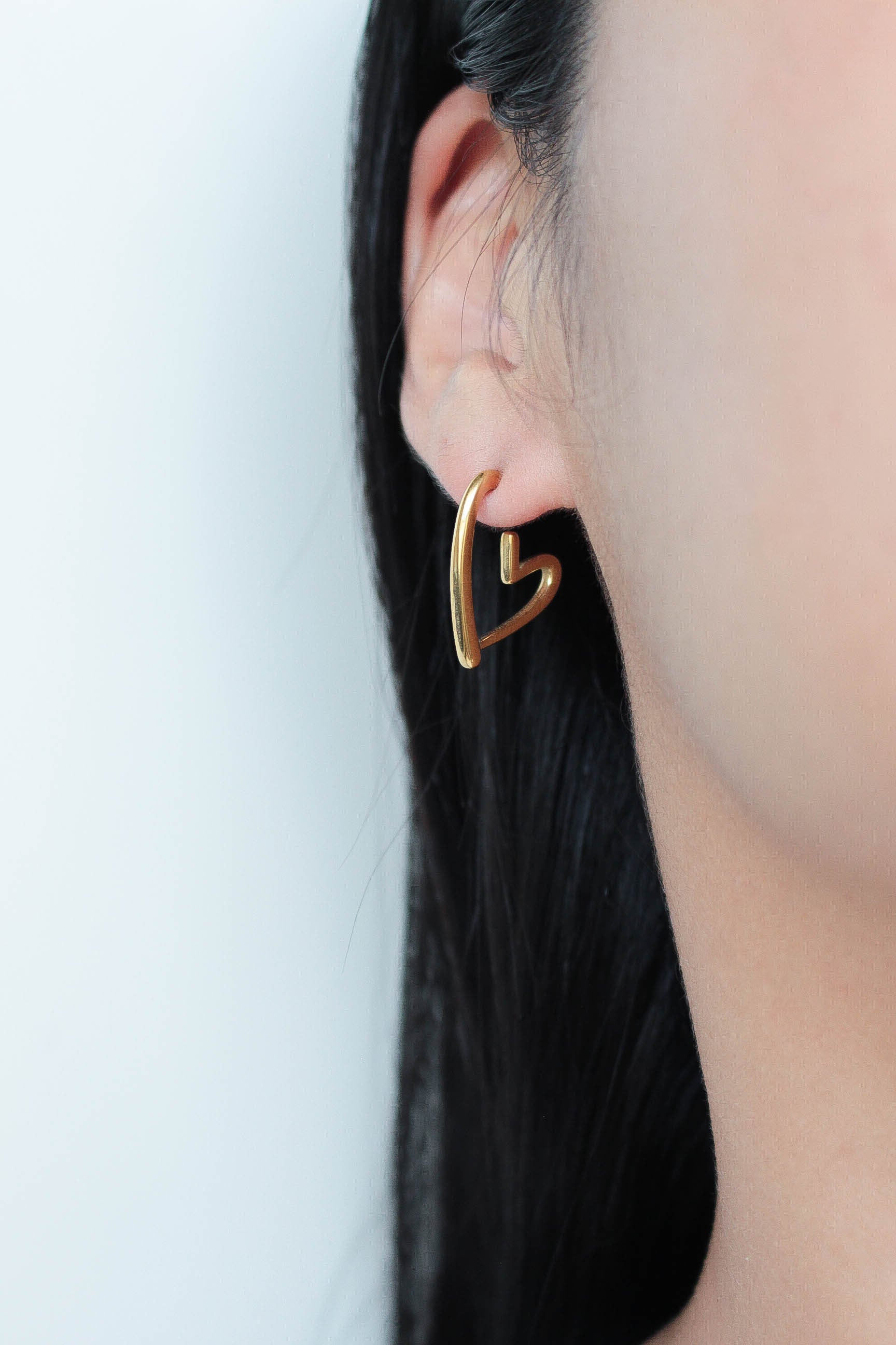 立体的で少しアシンメトリーなハートラインが印象的なピアス。