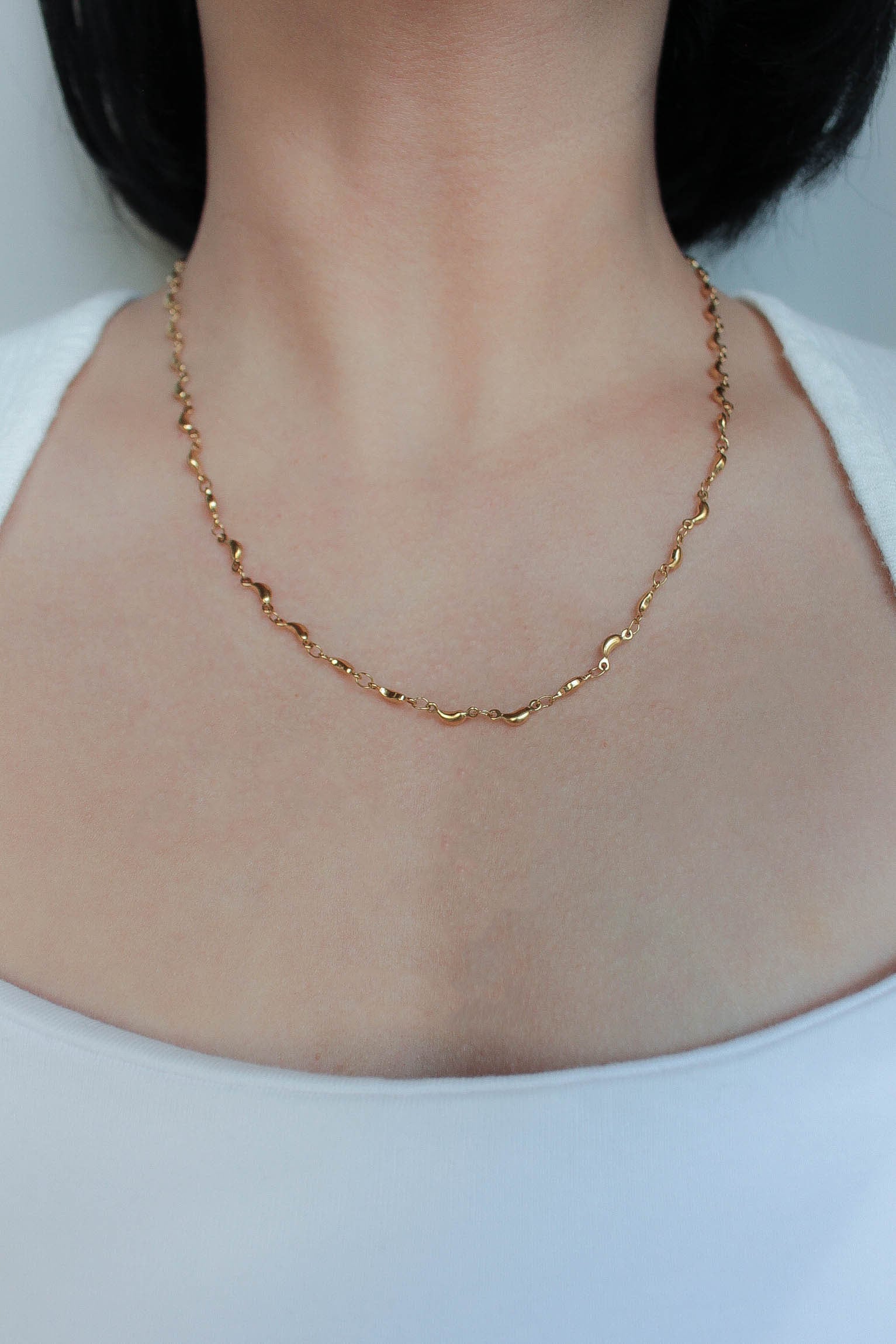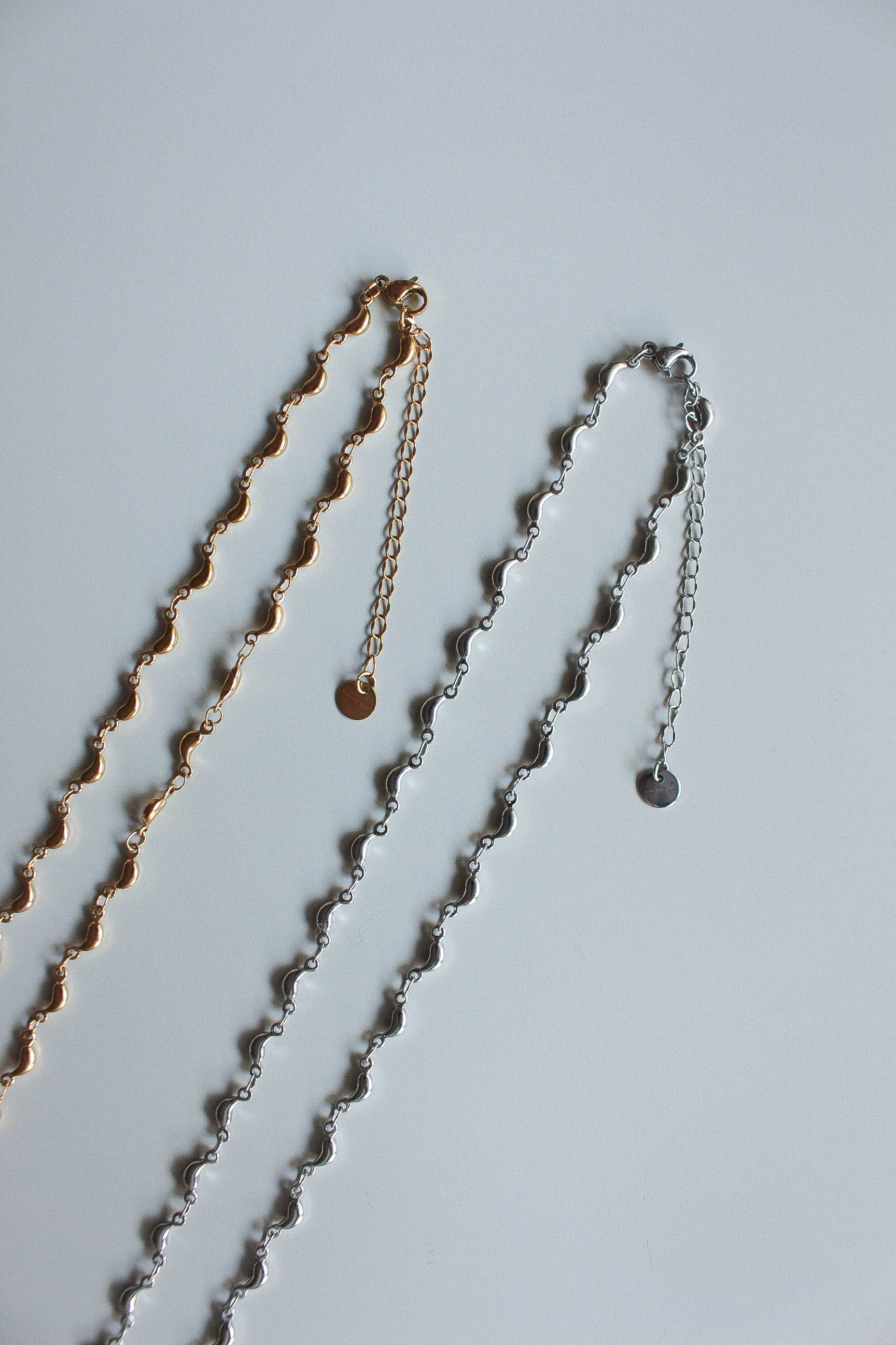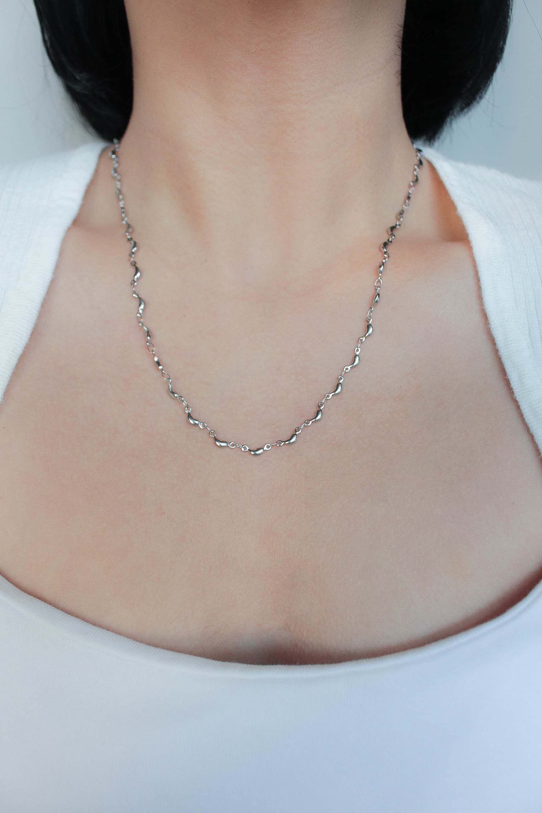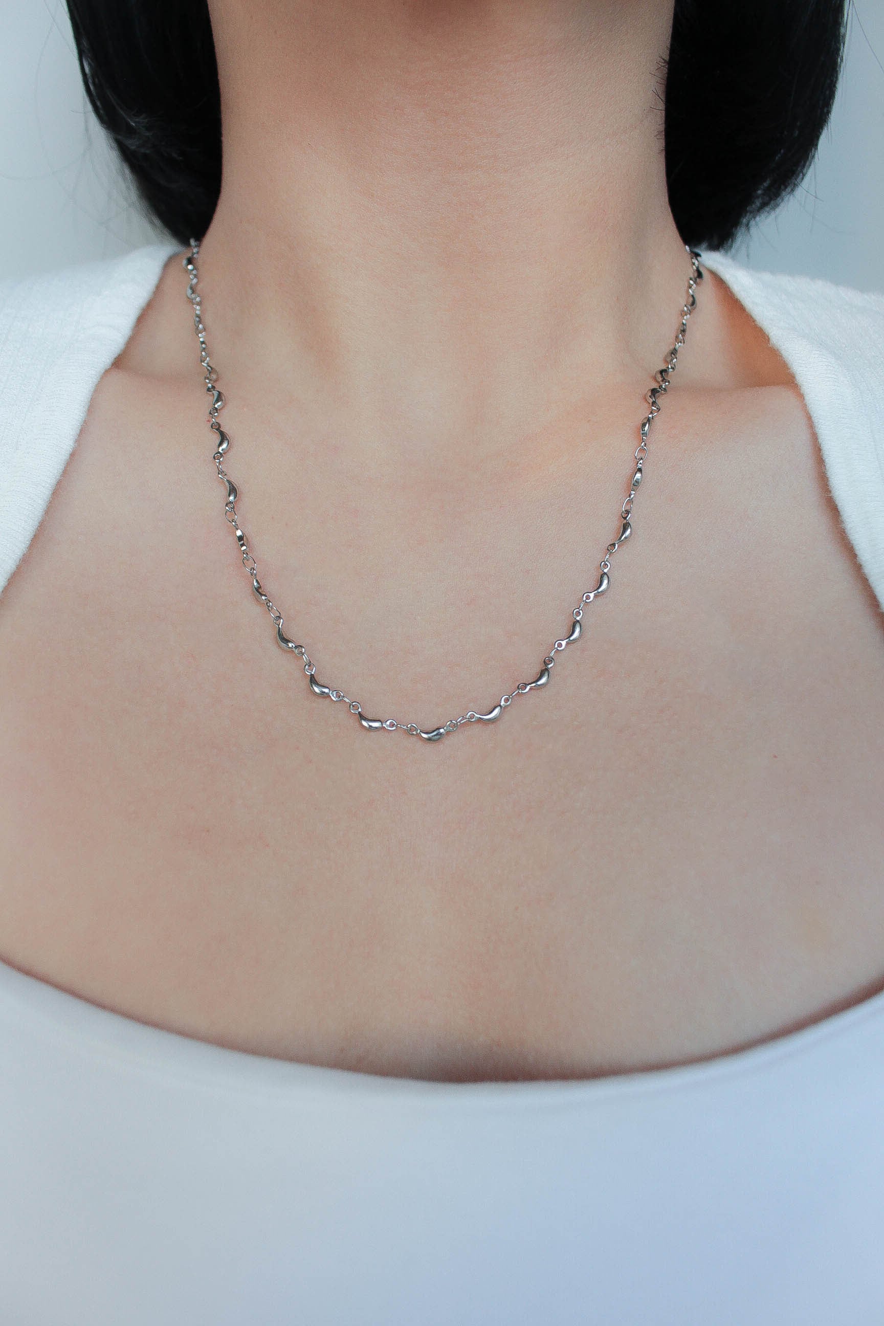 光をやわらかく受けて、首元に洗練された輝きを添えます。