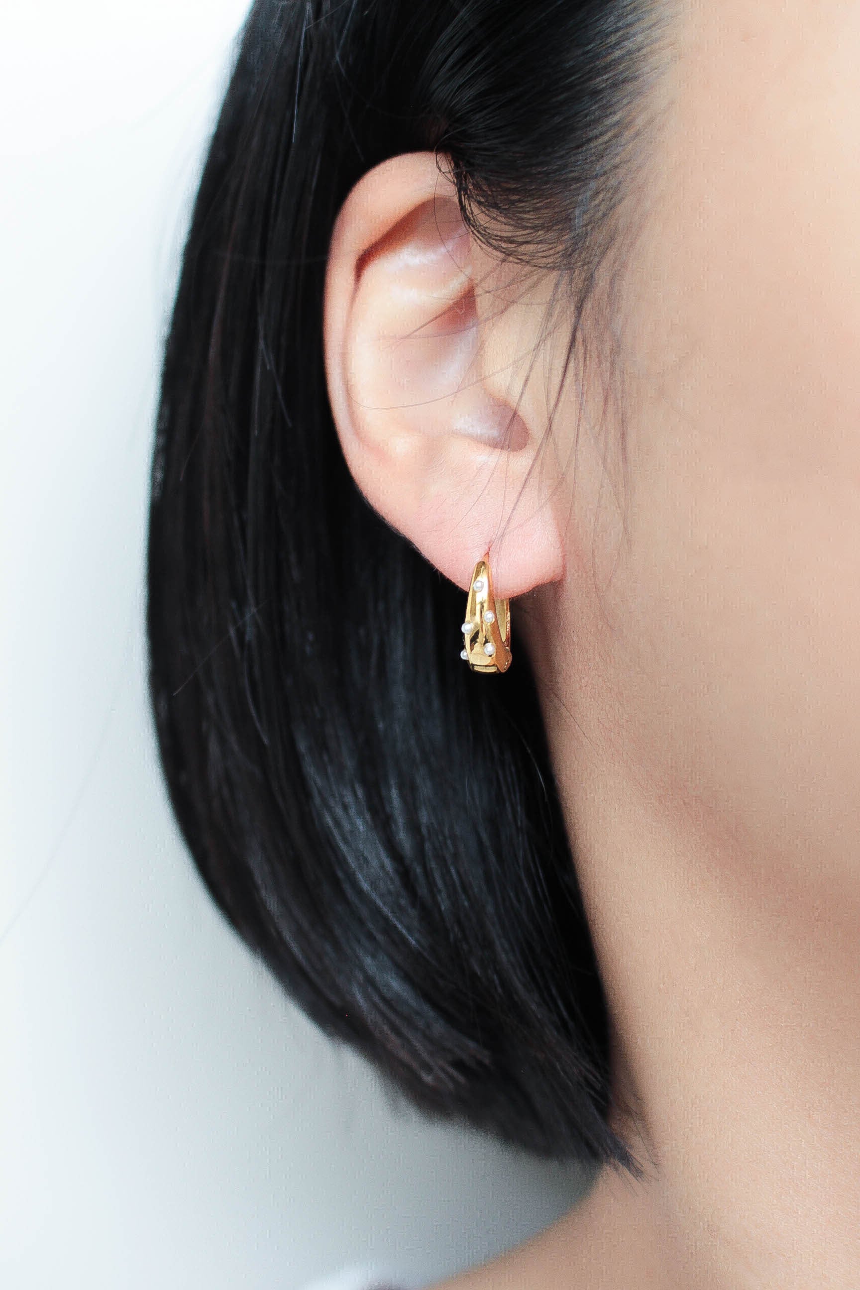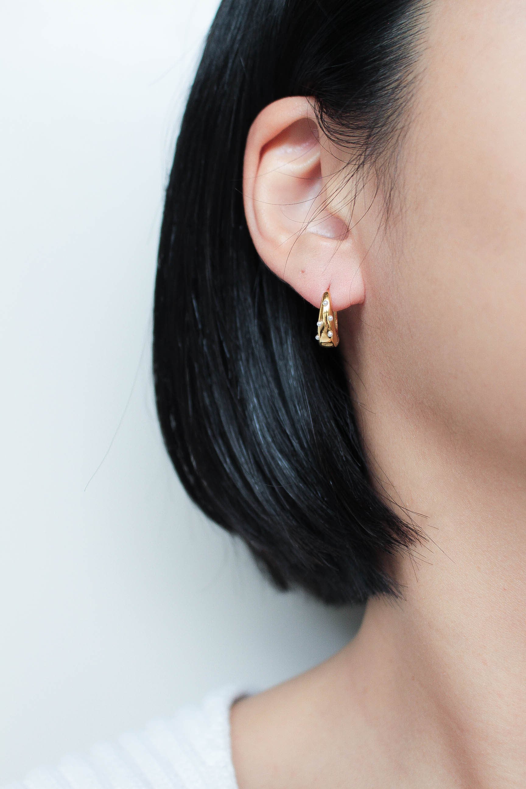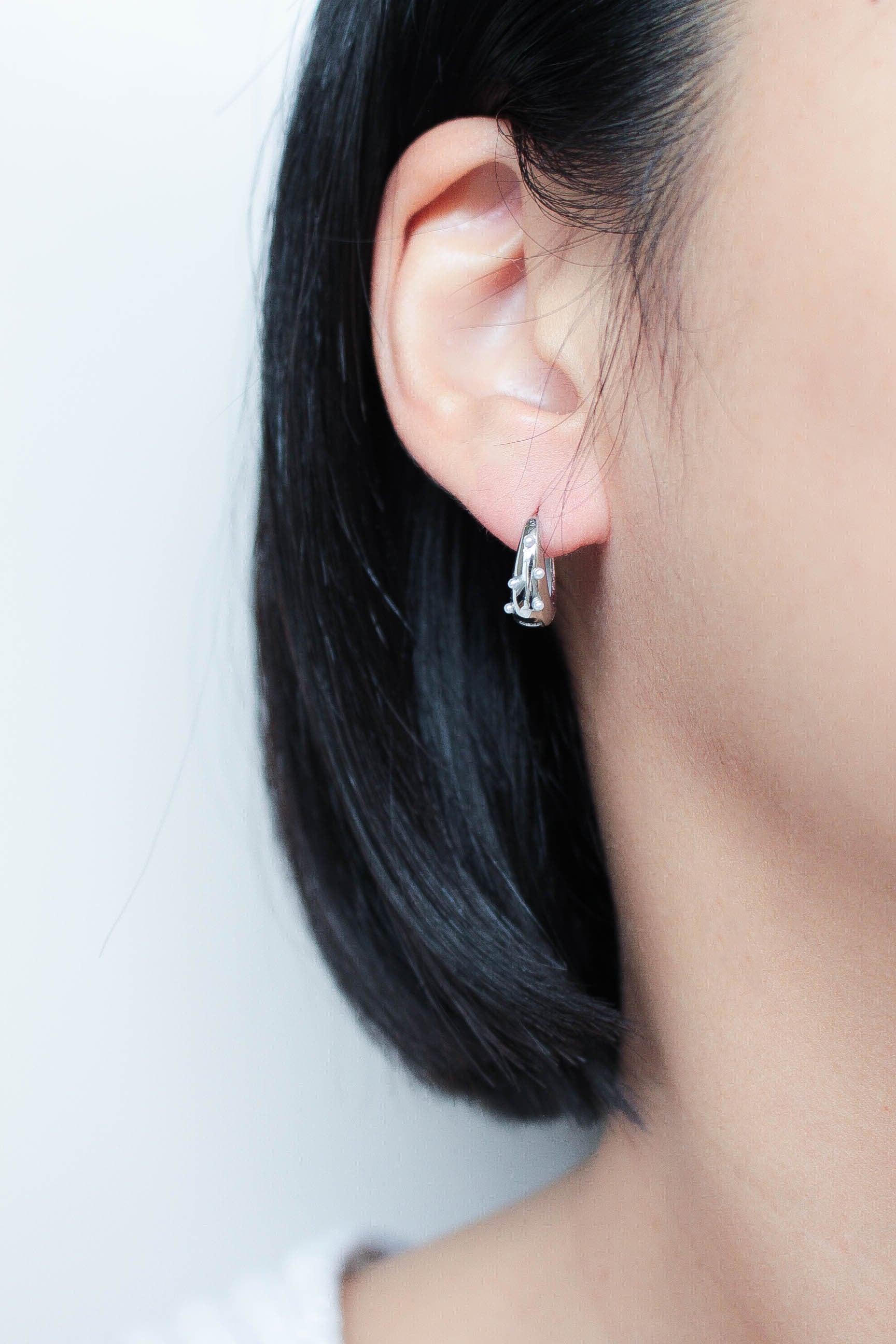 大人気で定番のDrop Hoop Pierceに小粒のパールをあしらい、