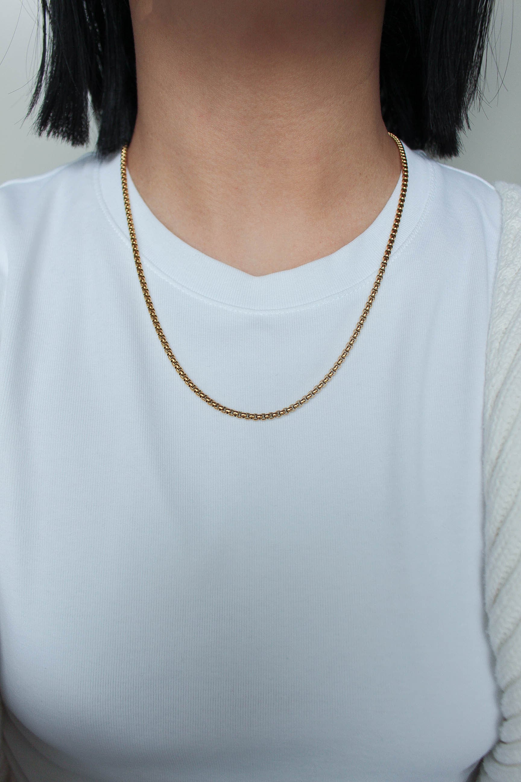 華奢すぎない絶妙なボリュームが、シンプルな装いを一段引き締めます。