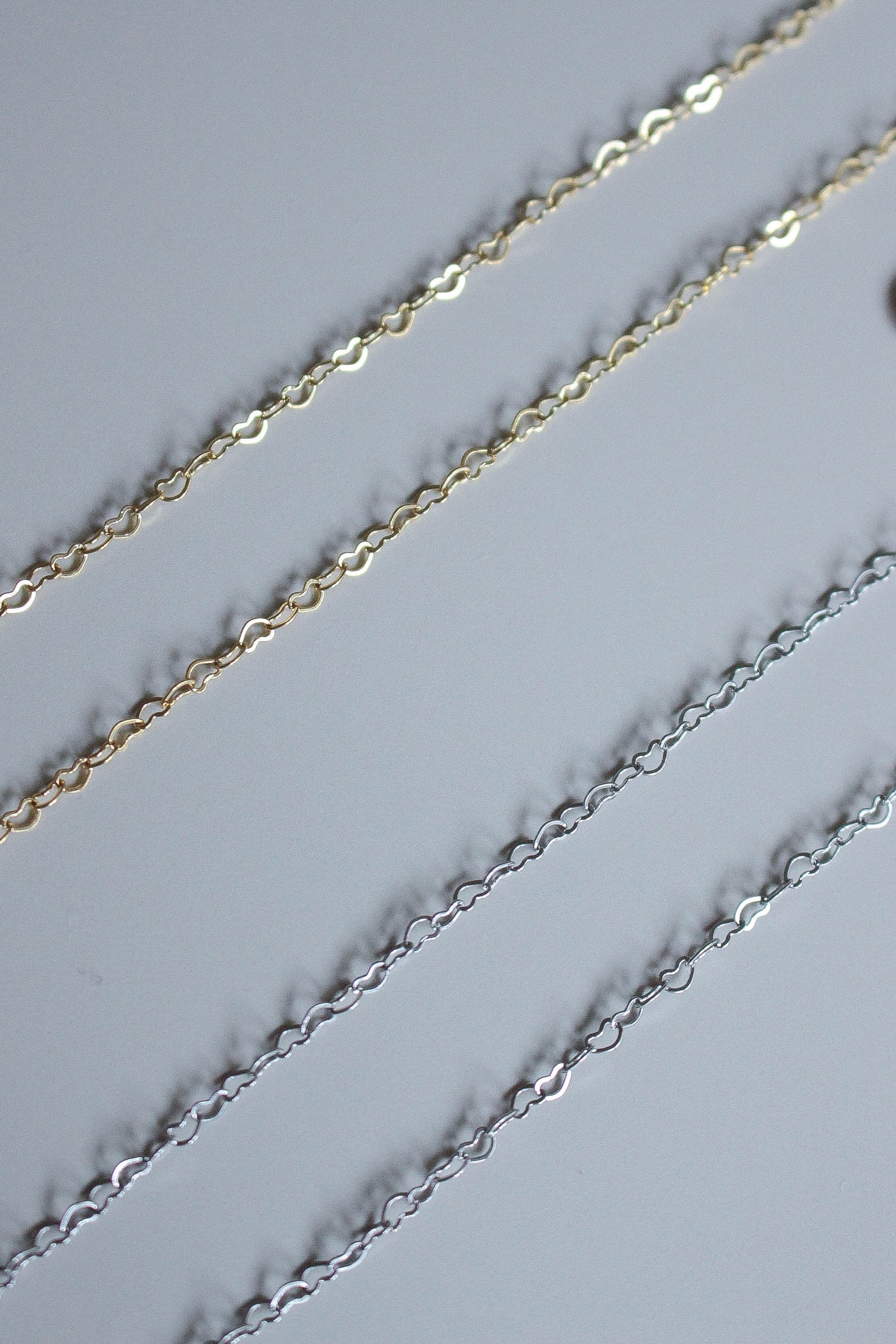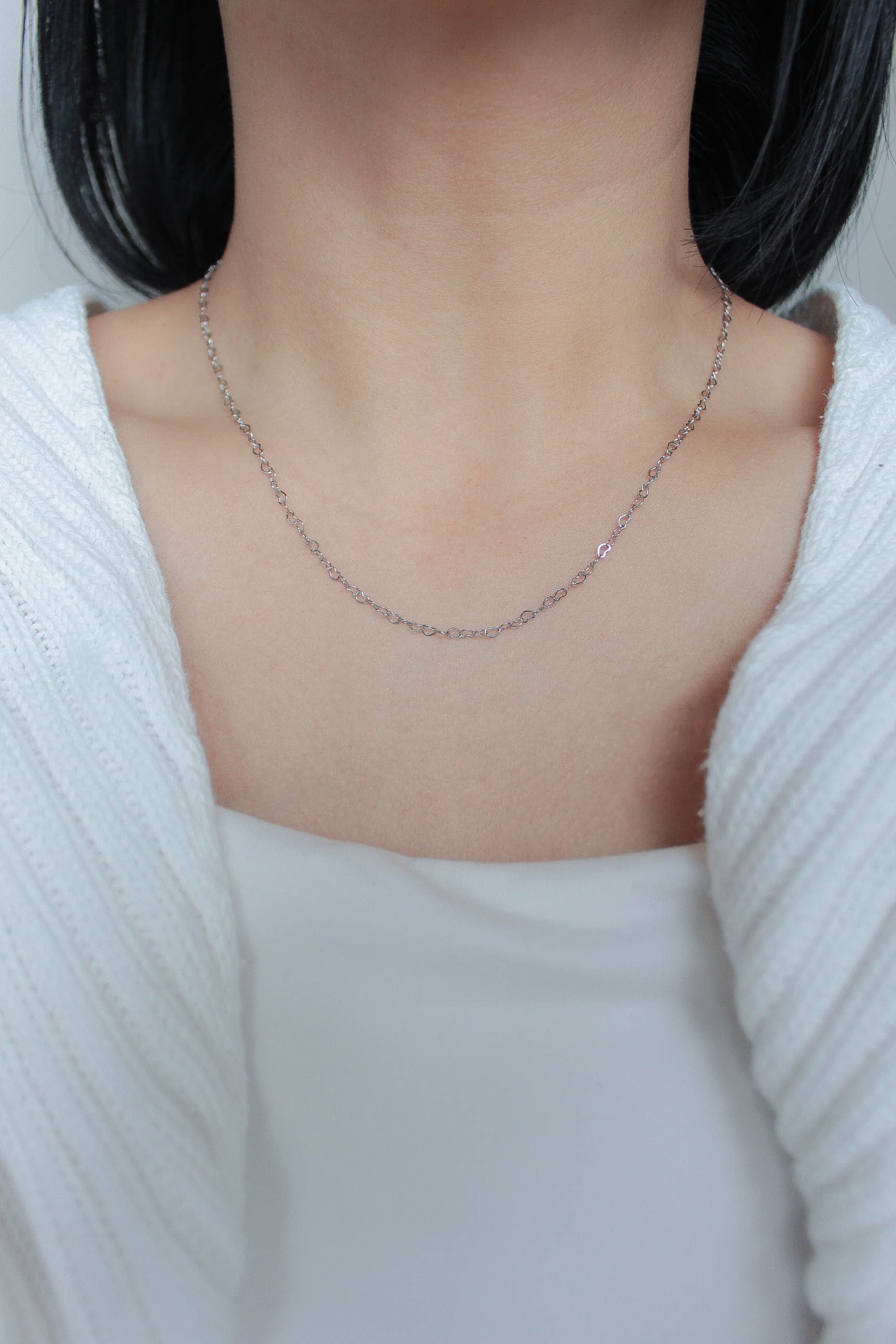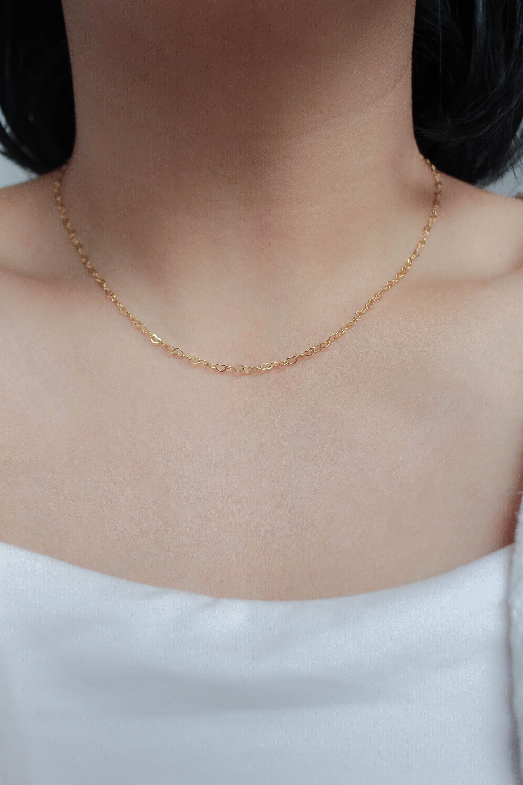 繊細なハートリンクを連ねた、スキンチェーンネックレス。