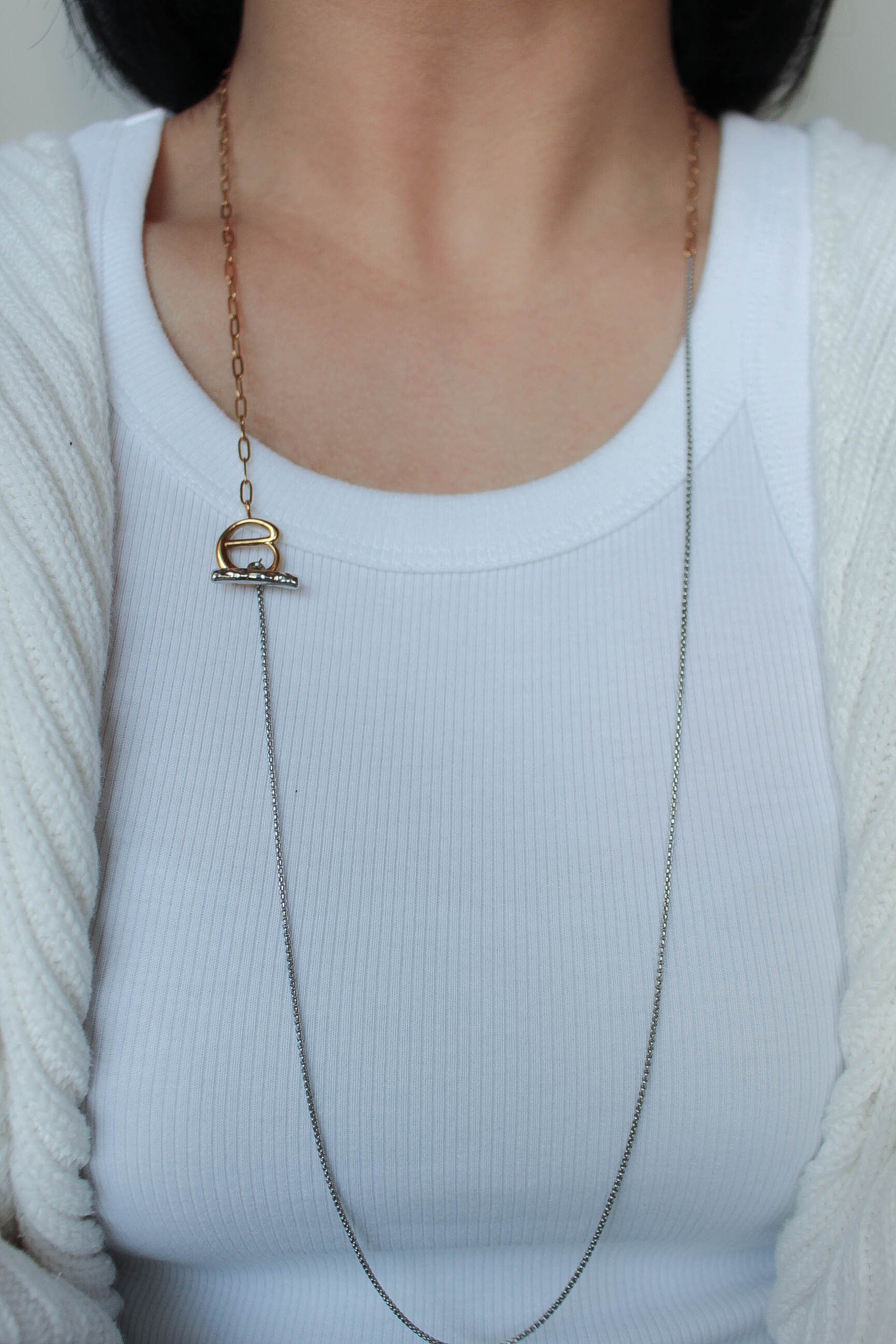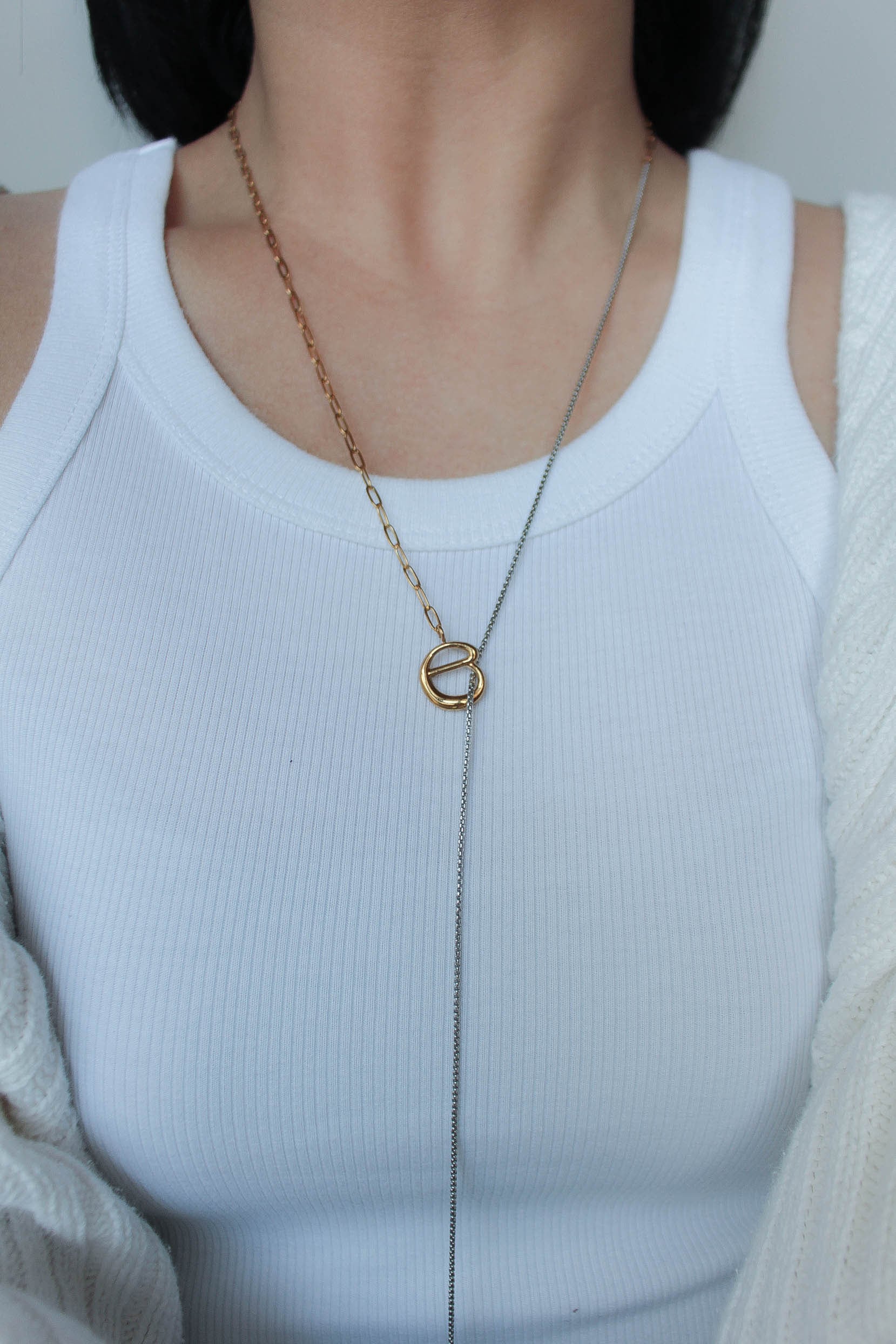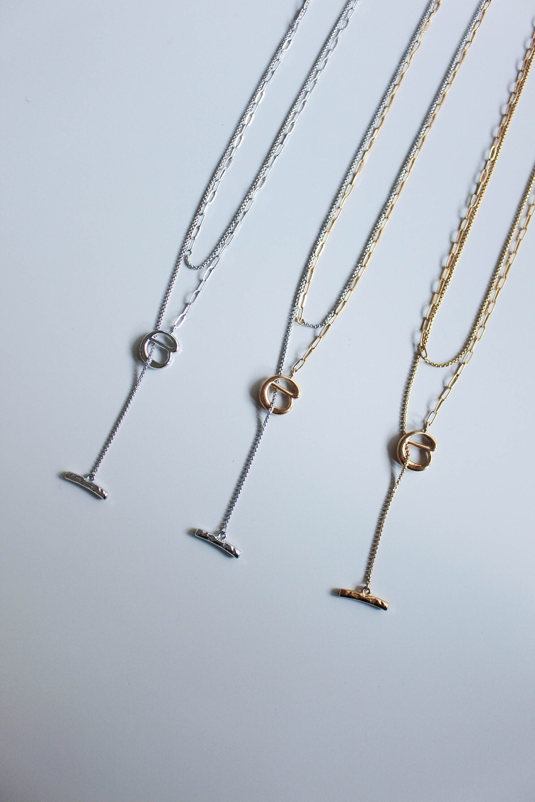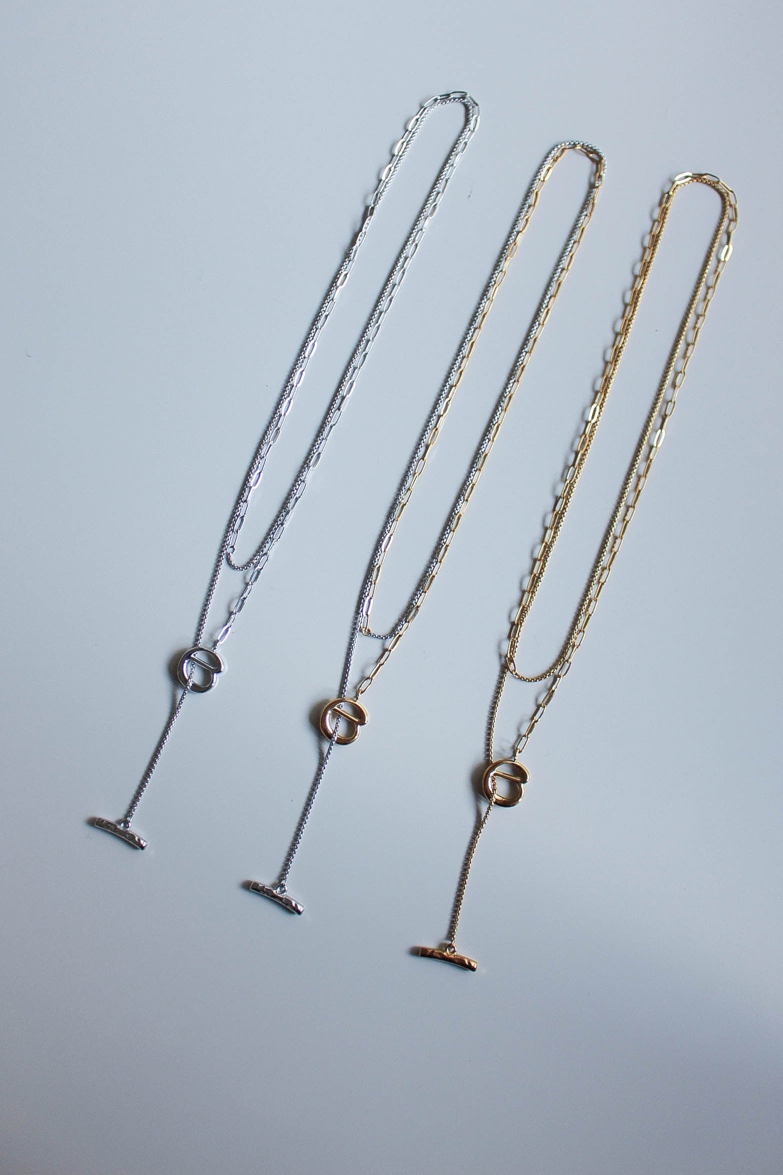 気分に合わせて3wayで使用可能なマルチネックレス。Y字、ロング、2連ネックレスと万能なアイテム。さりげないシグネチャーモチーフやデザイン違いのミックスチェーンがこなれ感を引き立てます。