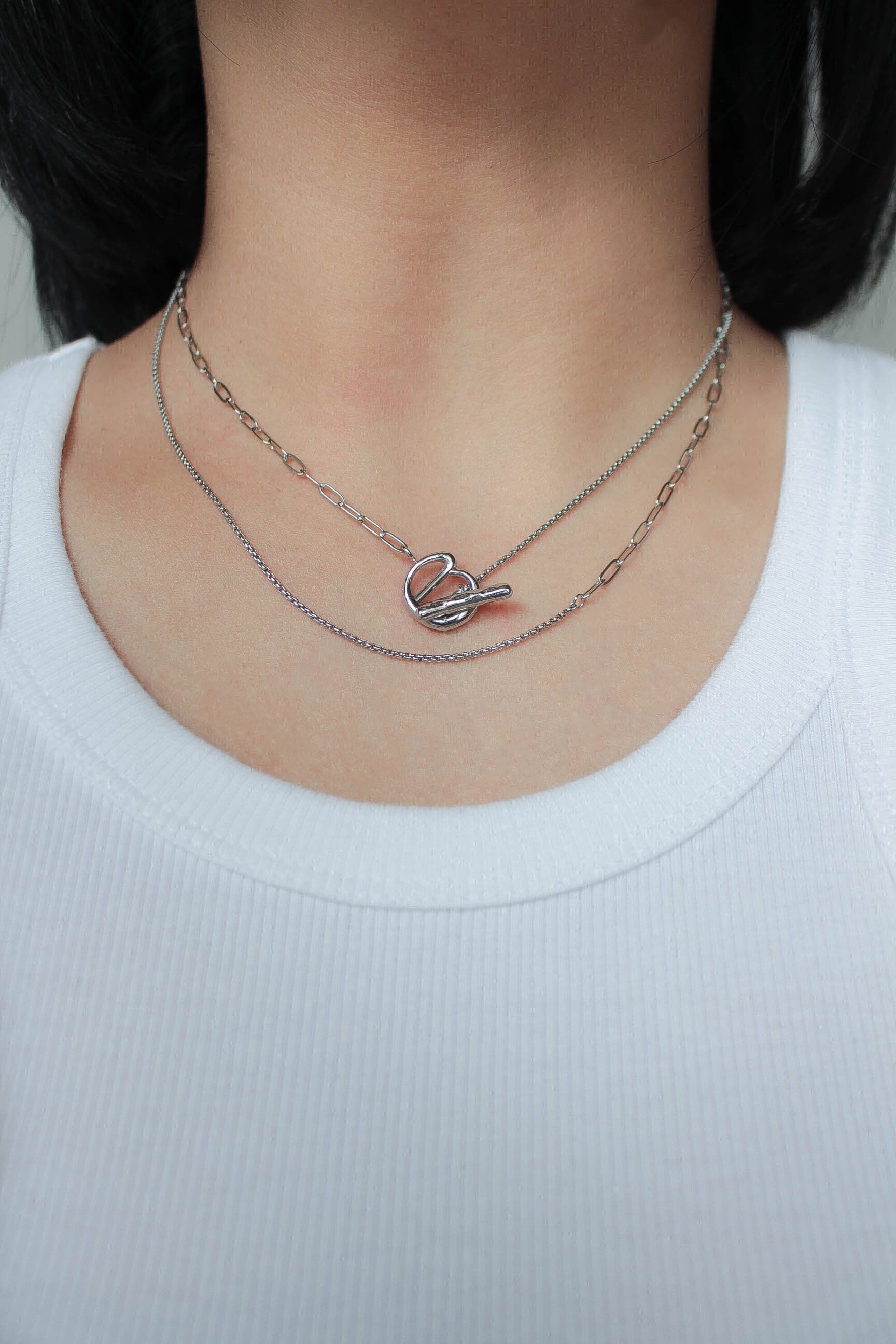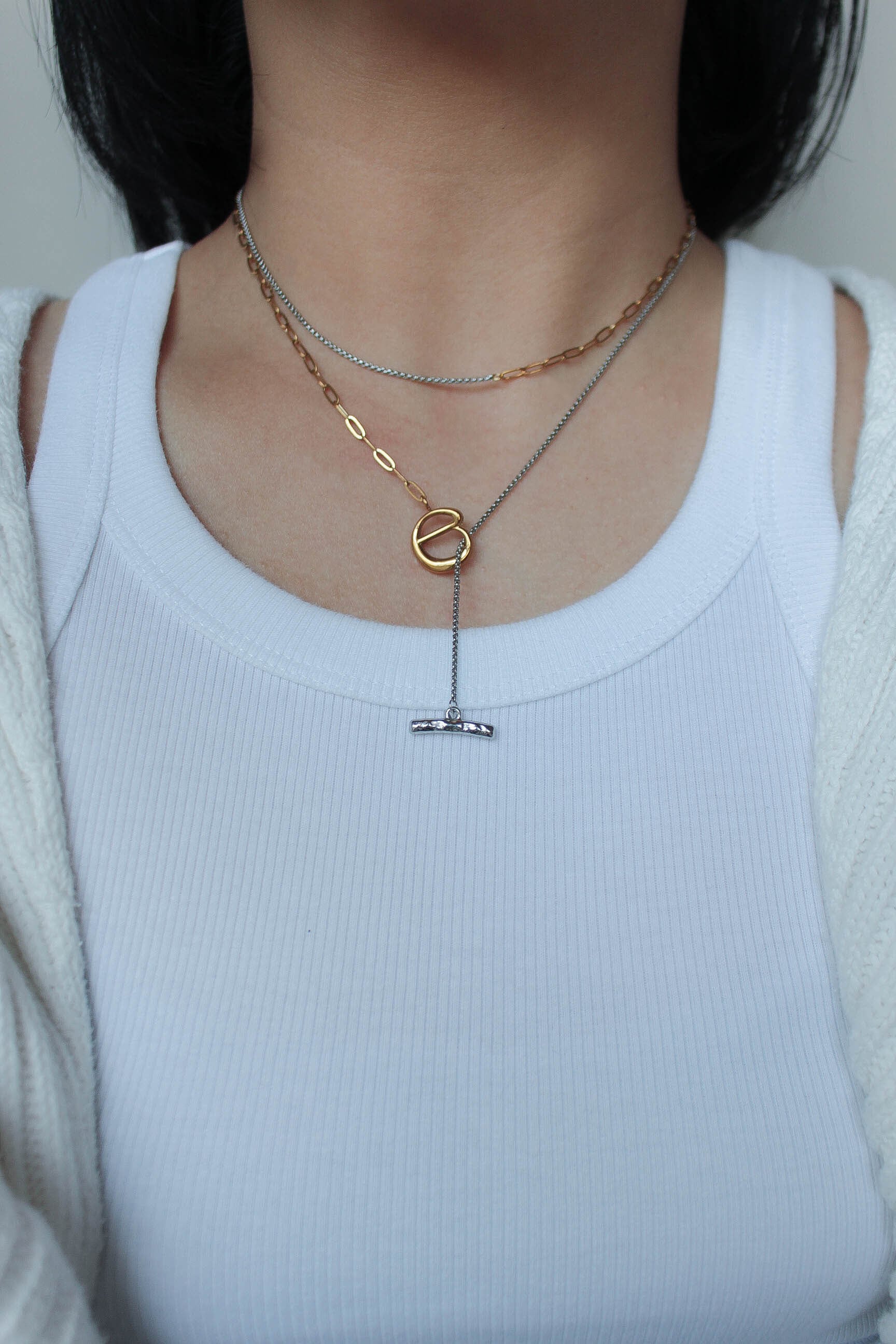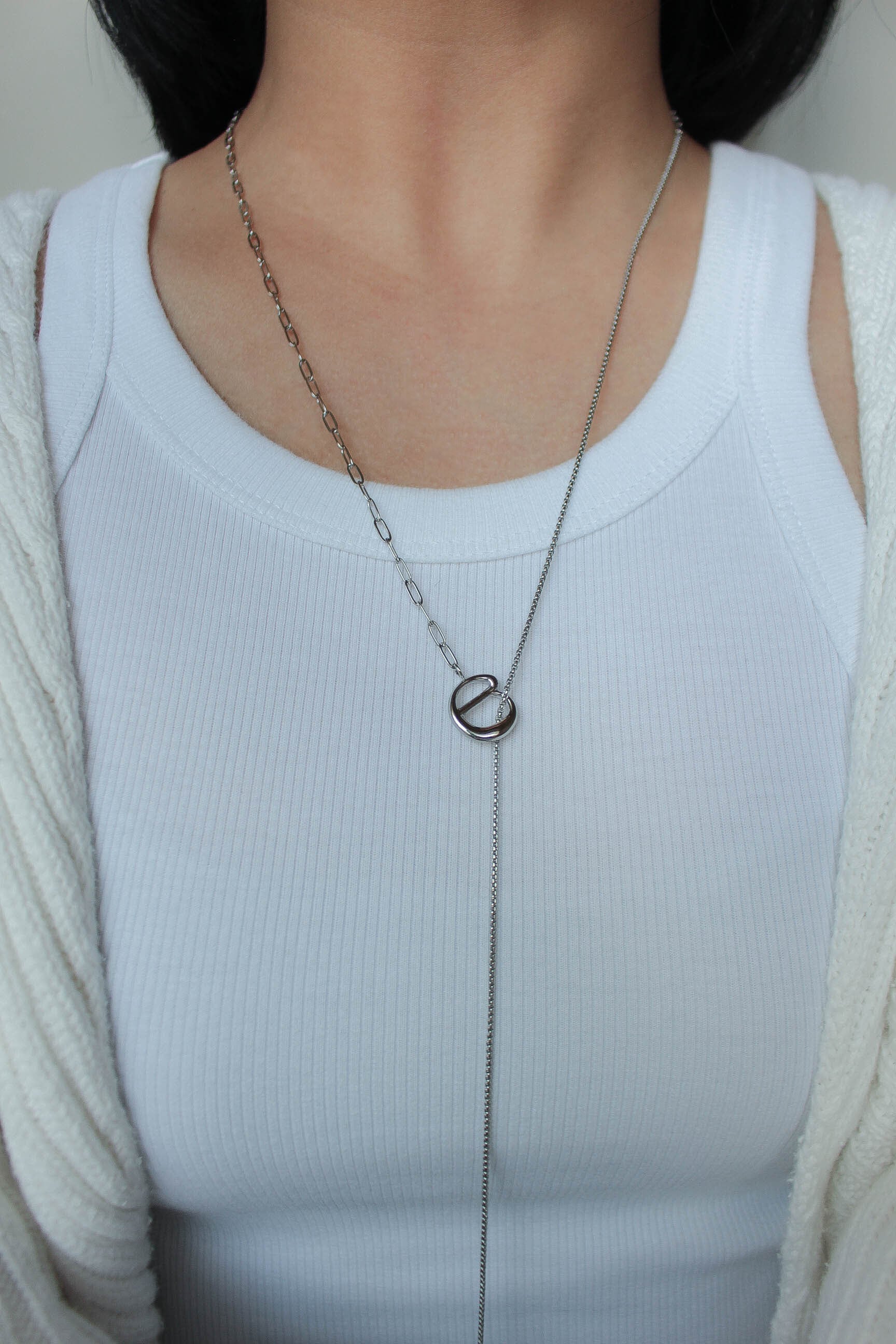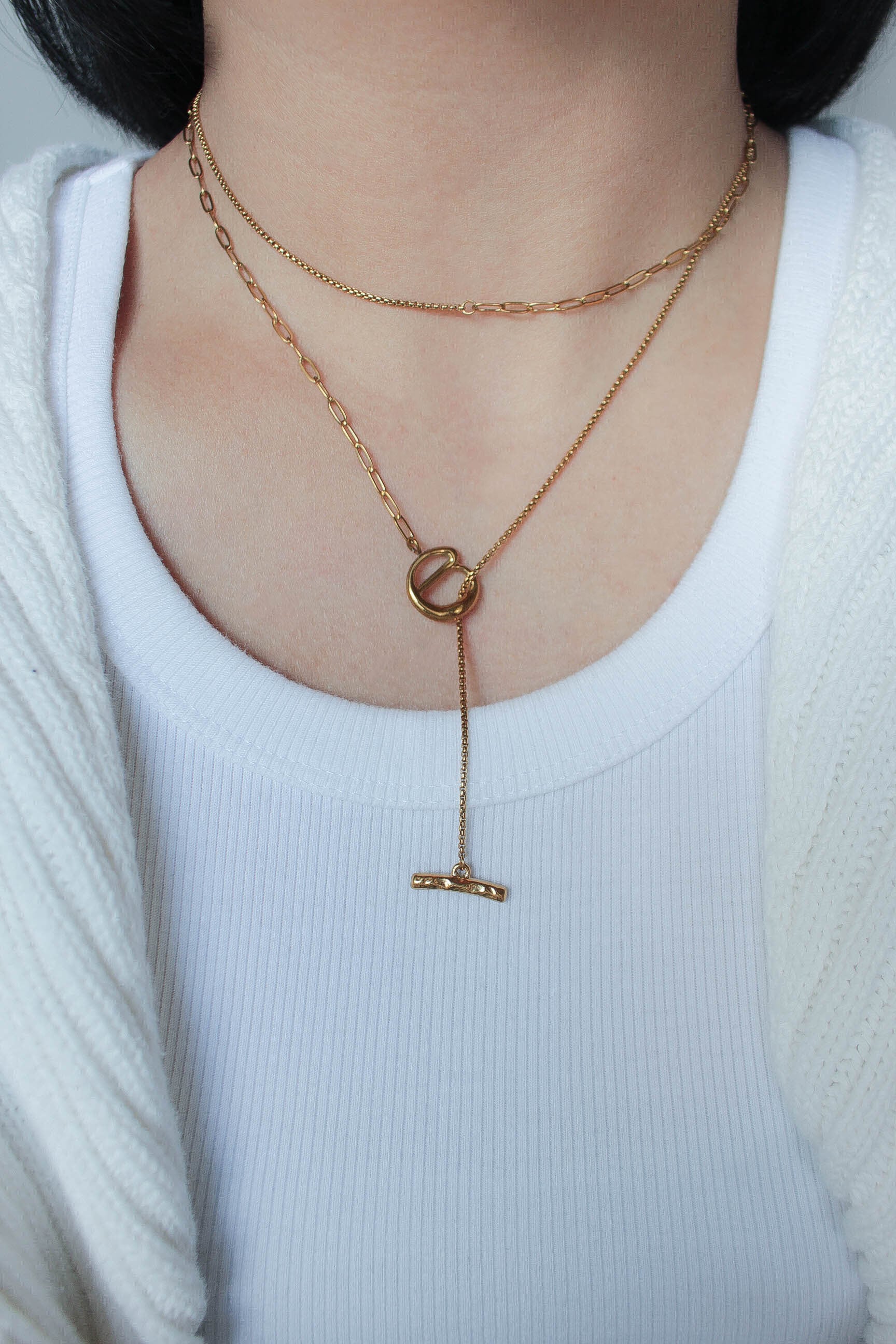 気分に合わせて3wayで使用可能なマルチネックレス。Y字、ロング、2連ネックレスと万能なアイテム。さりげないシグネチャーモチーフやデザイン違いのミックスチェーンがこなれ感を引き立てます。