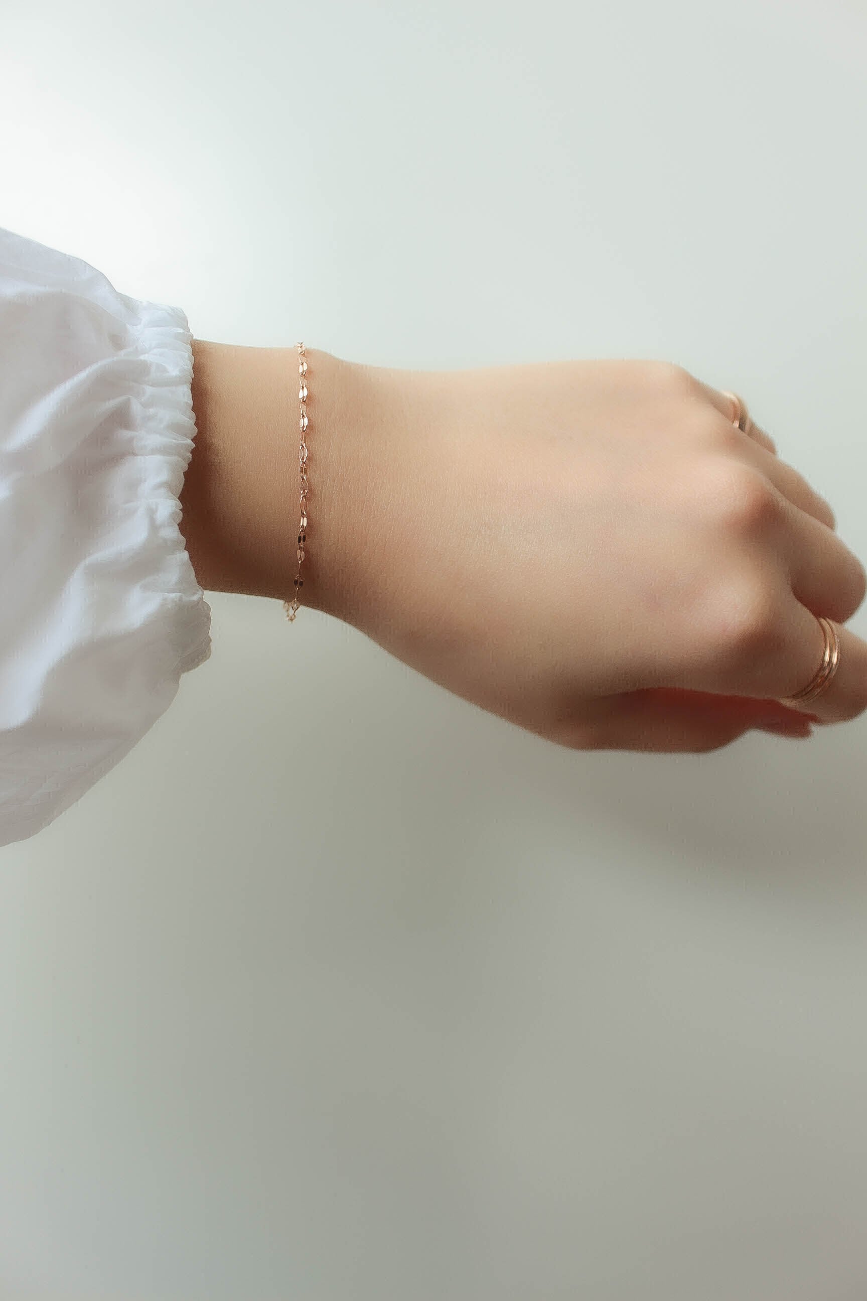 Sparkle Necklaceと同じデザインのブレスレットです。 螺旋状に繋ぎ合わさったチェーンがキラキラと光り、華奢なブレスレットが女性らしい印象にしてくれます。
