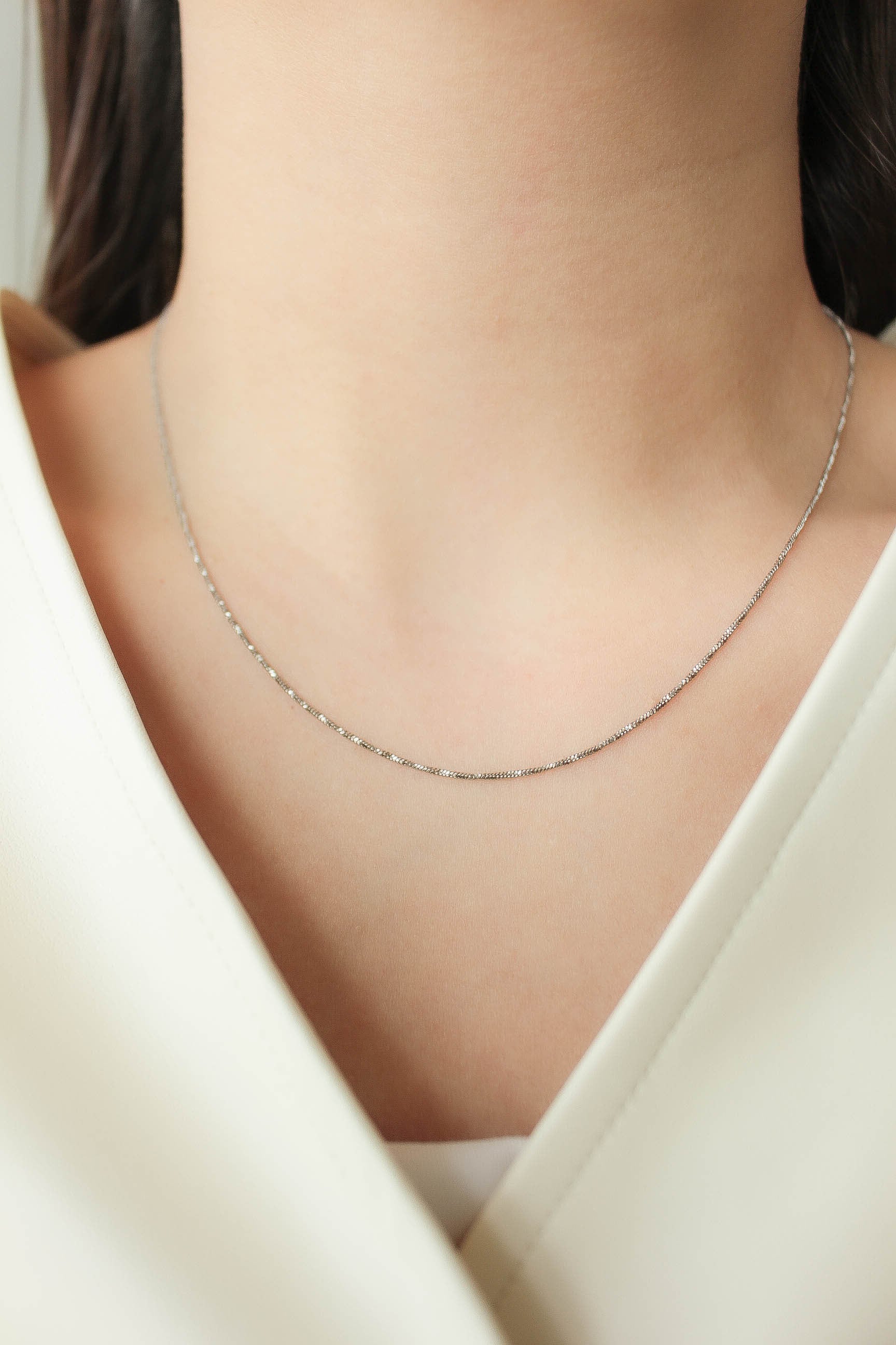 0.9mmの繊細なチェーンに、さりげなくきらめくグリッター加工を施した一本。