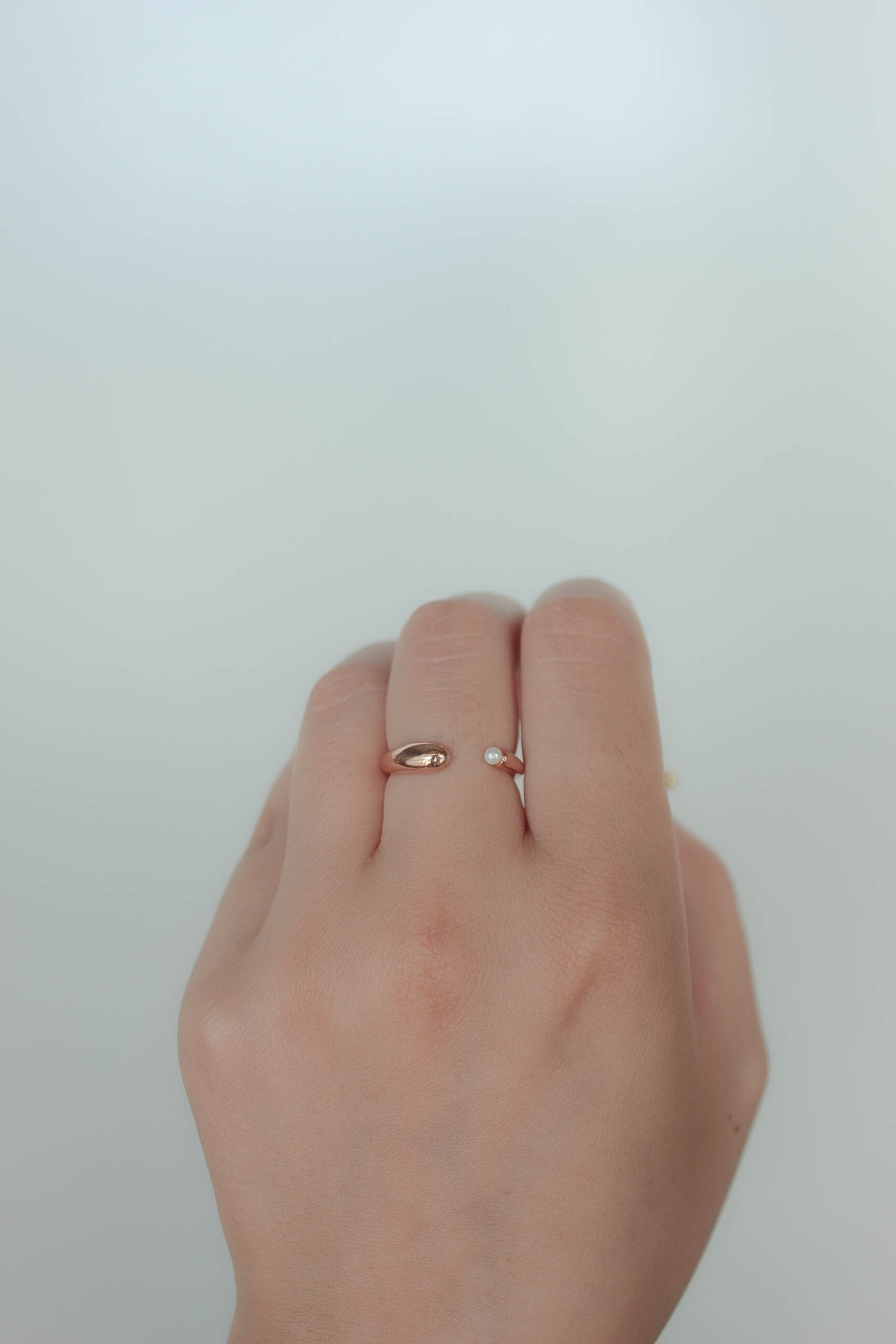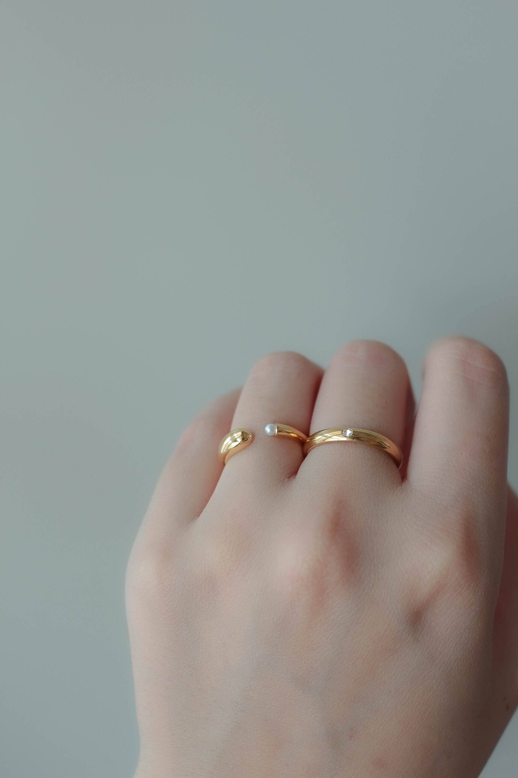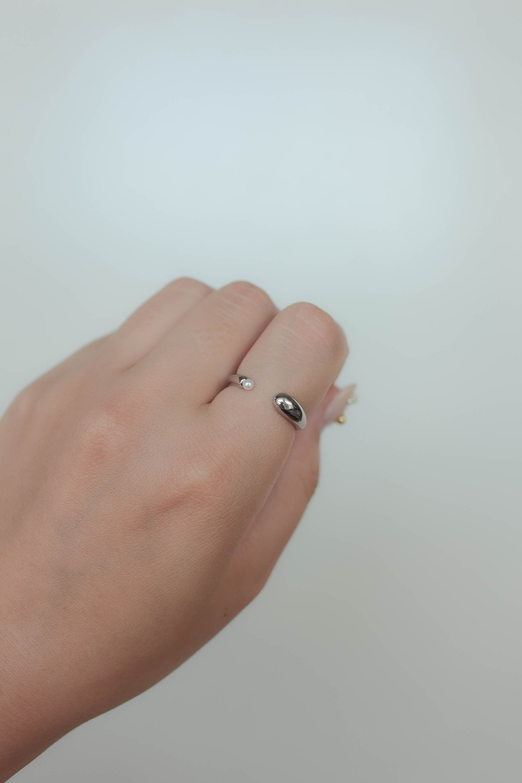リングのサイドにさりげなくパールを1粒つけたデザインです。