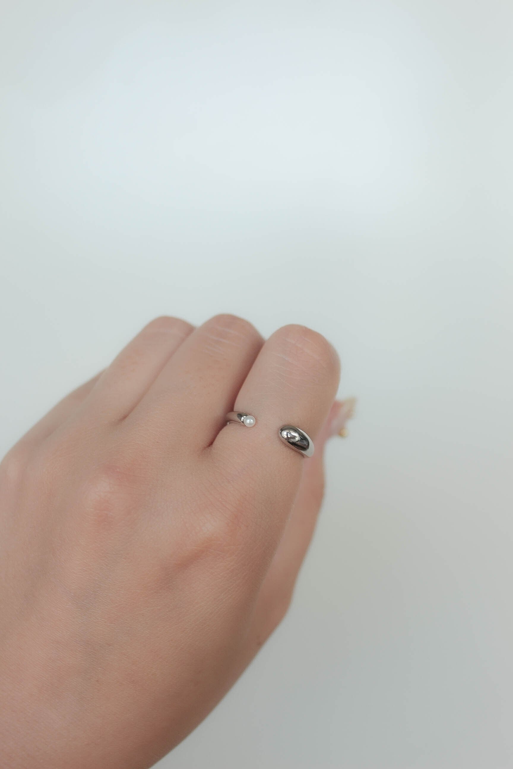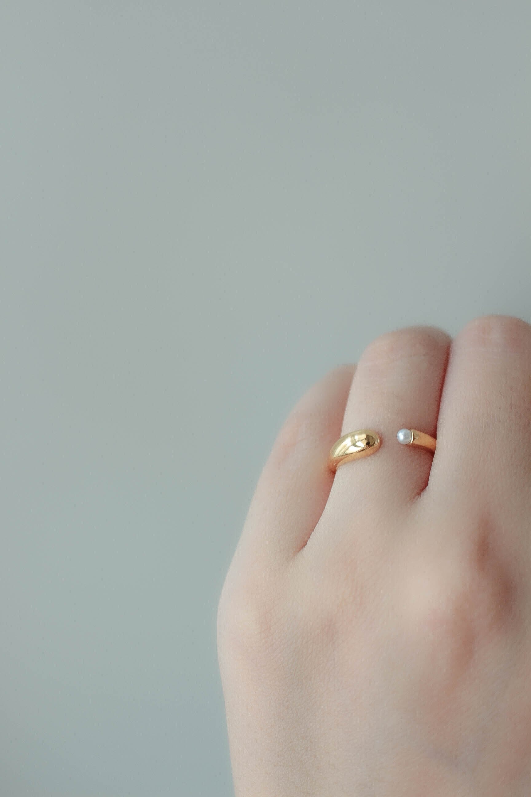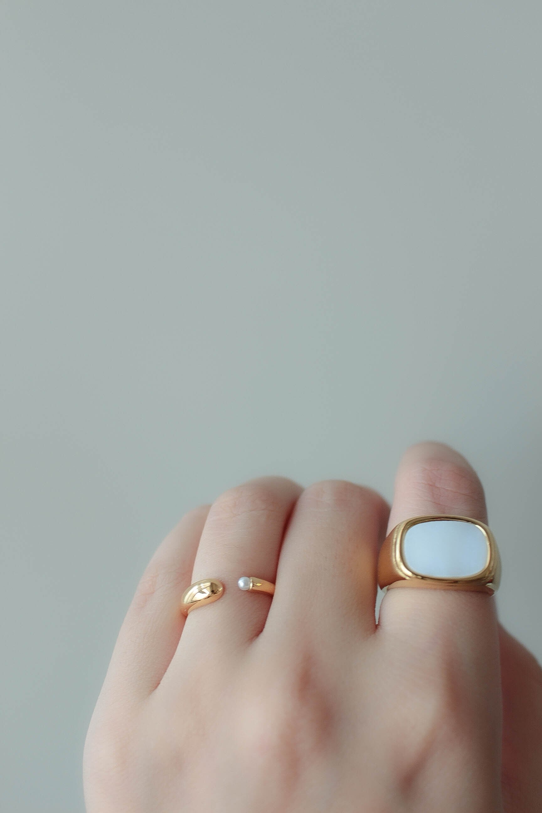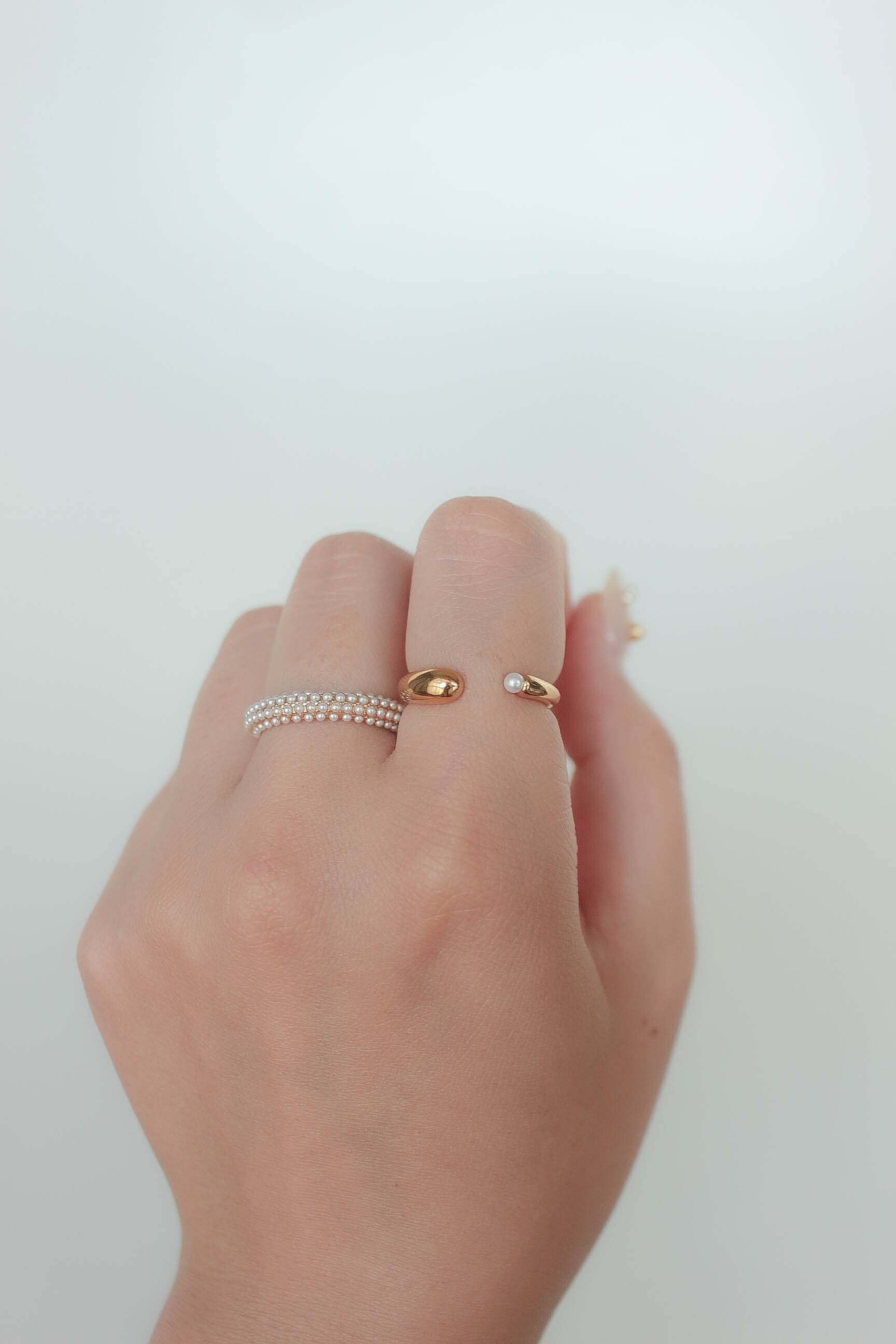 リングのサイドにさりげなくパールを1粒つけたデザインです。