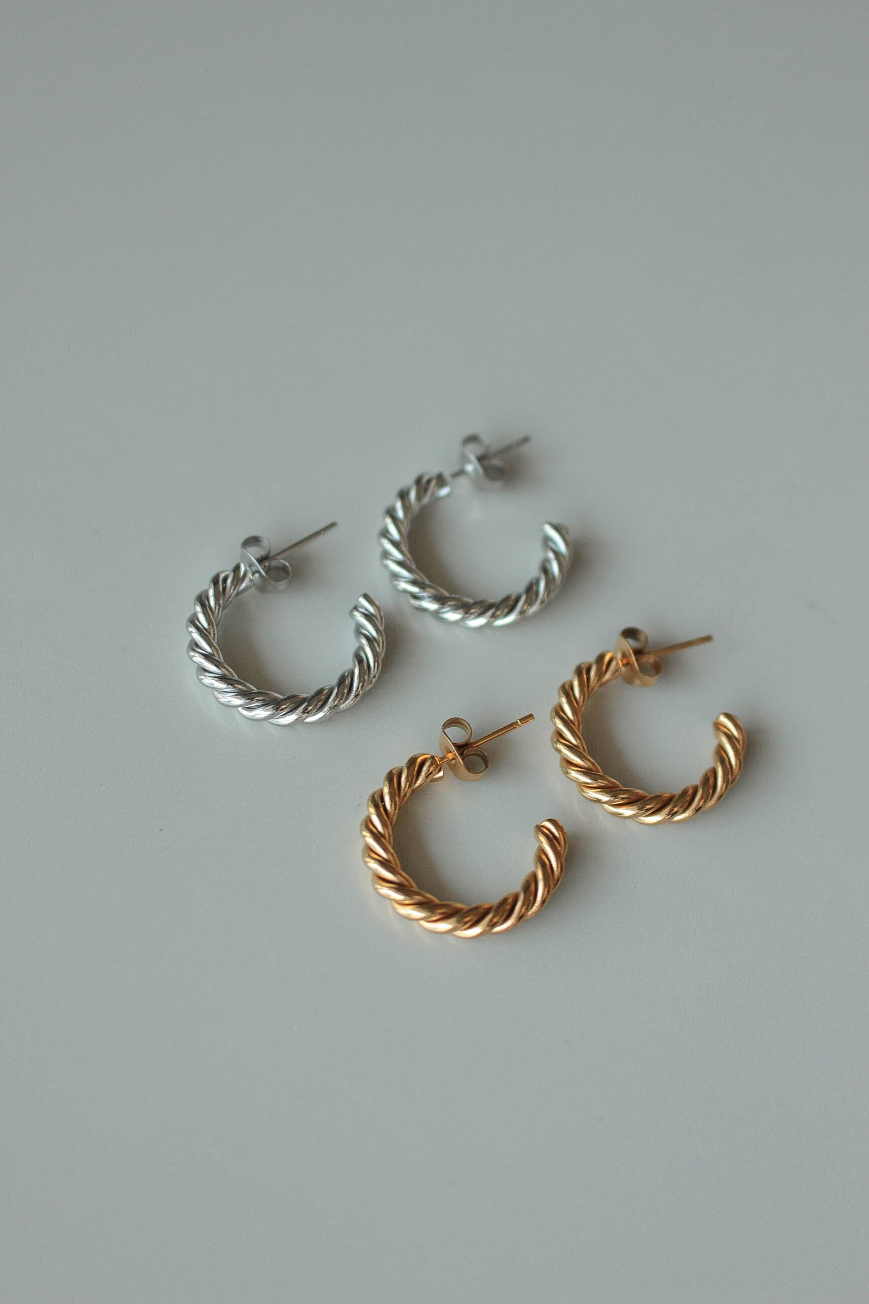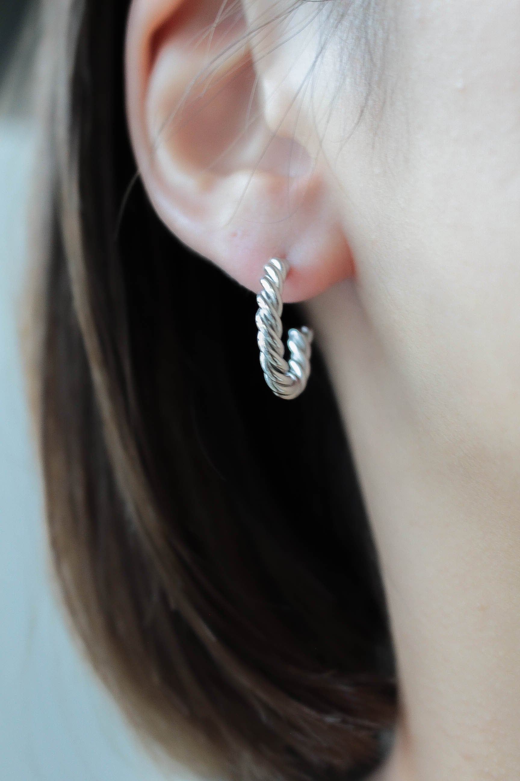 C字に型どったツイストロープピアスです。