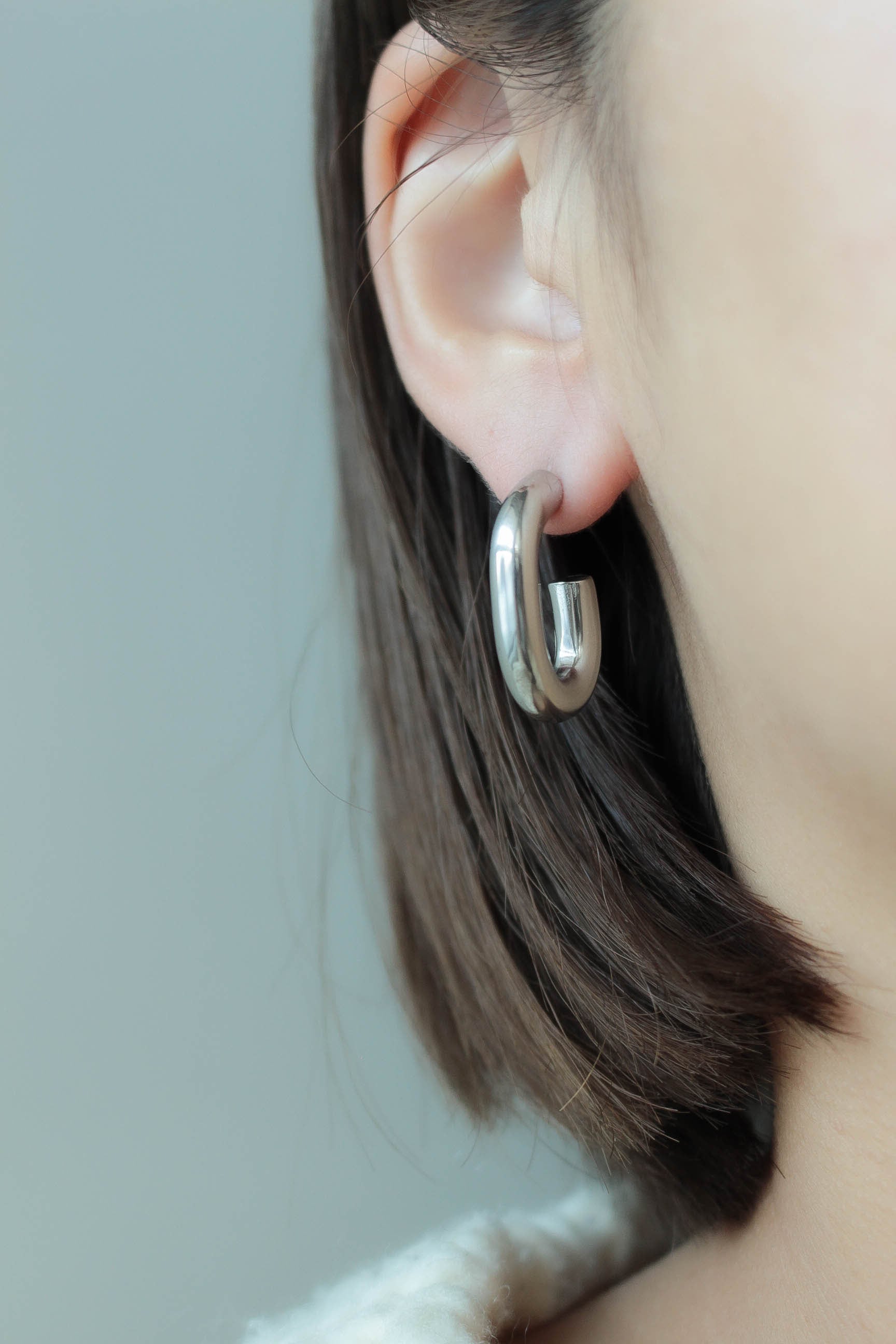 綺麗な曲線を描くぽちゃっとしたC字オープンピアス。デイリーユースにご使用いただけるちょうどいいサイズ感とデザインです。
