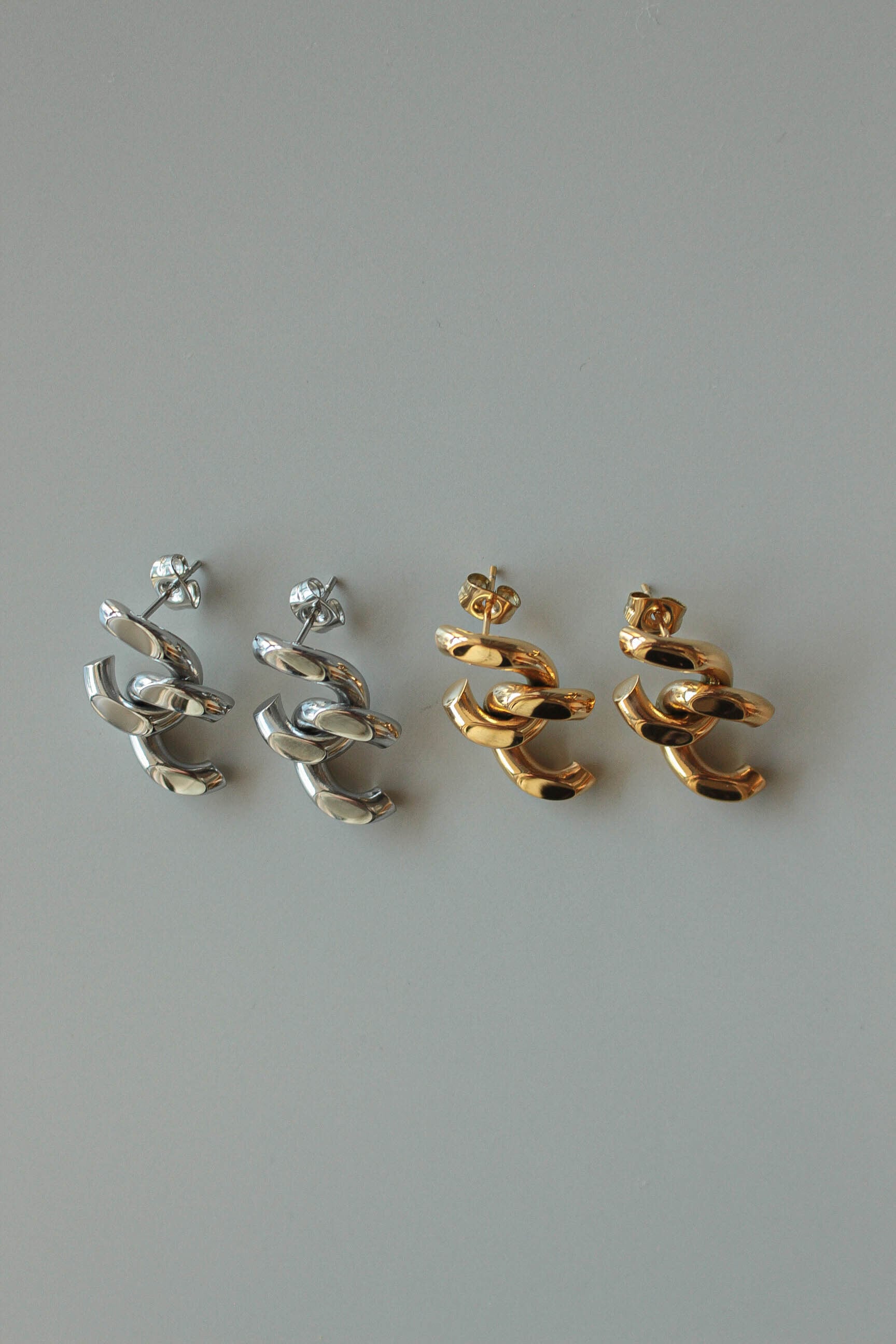 チェーンネックレスのデザインをピアスに落とし込んだアイテム。カッコ可愛い印象を与えてくれるデザインです。