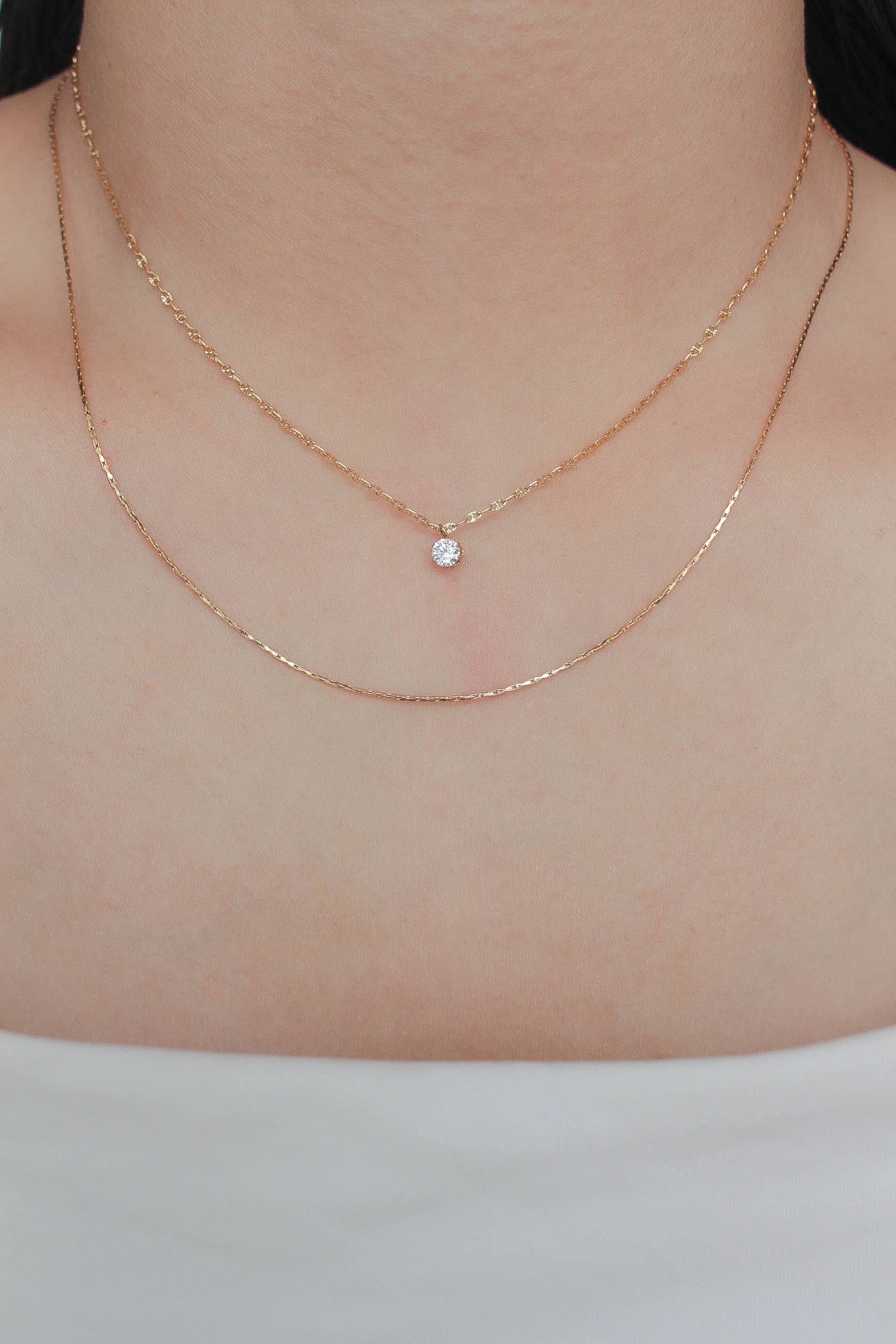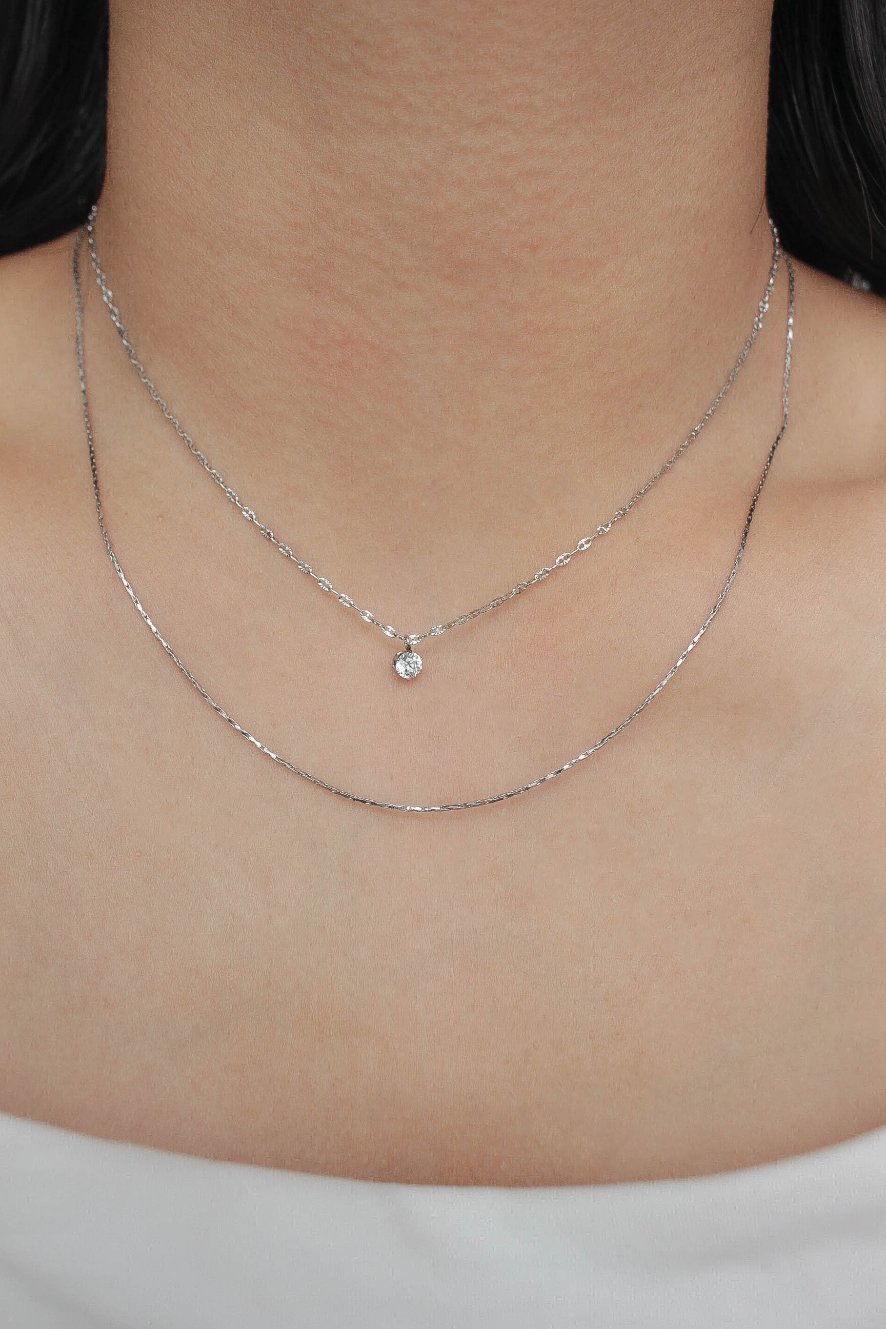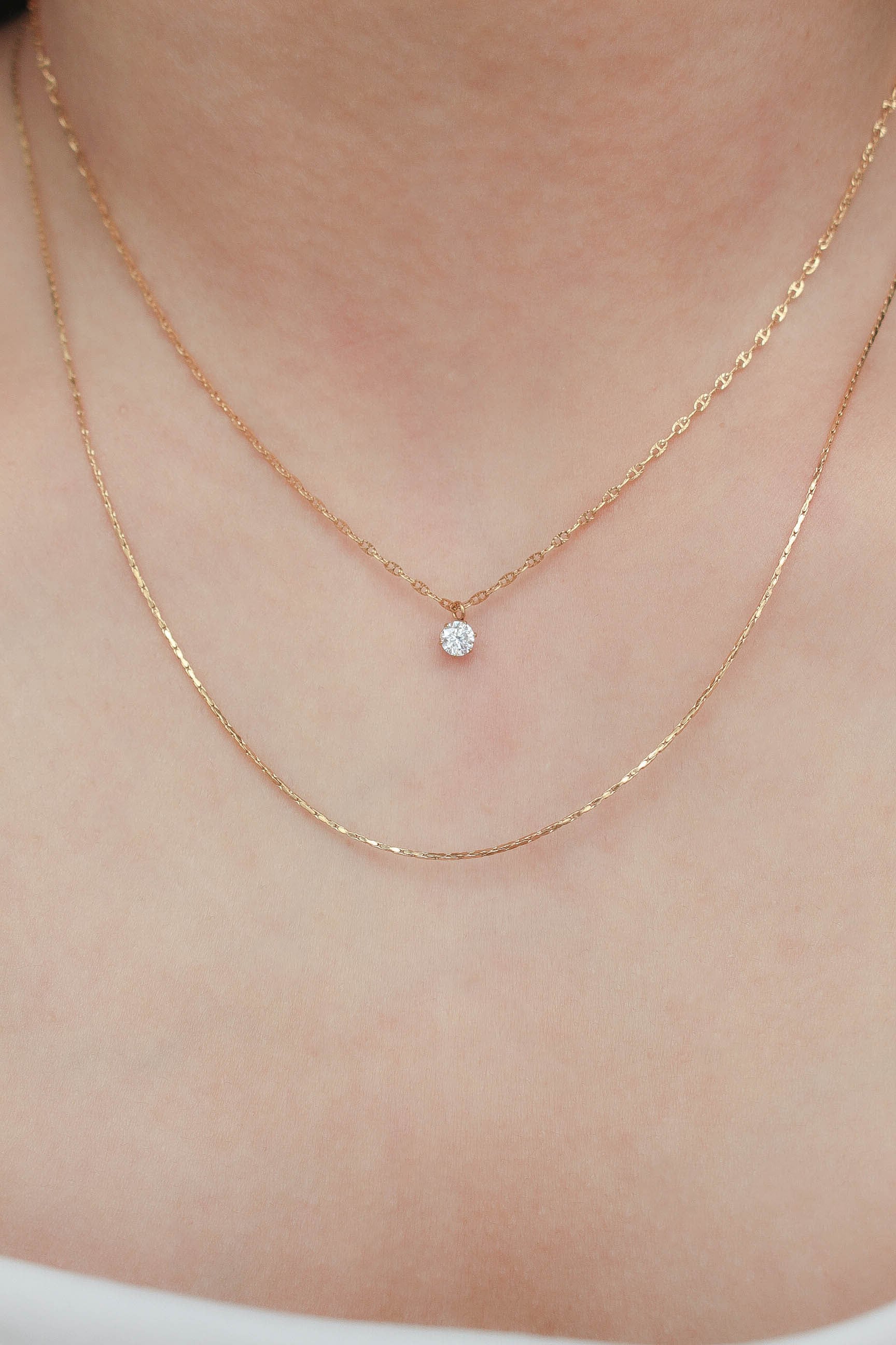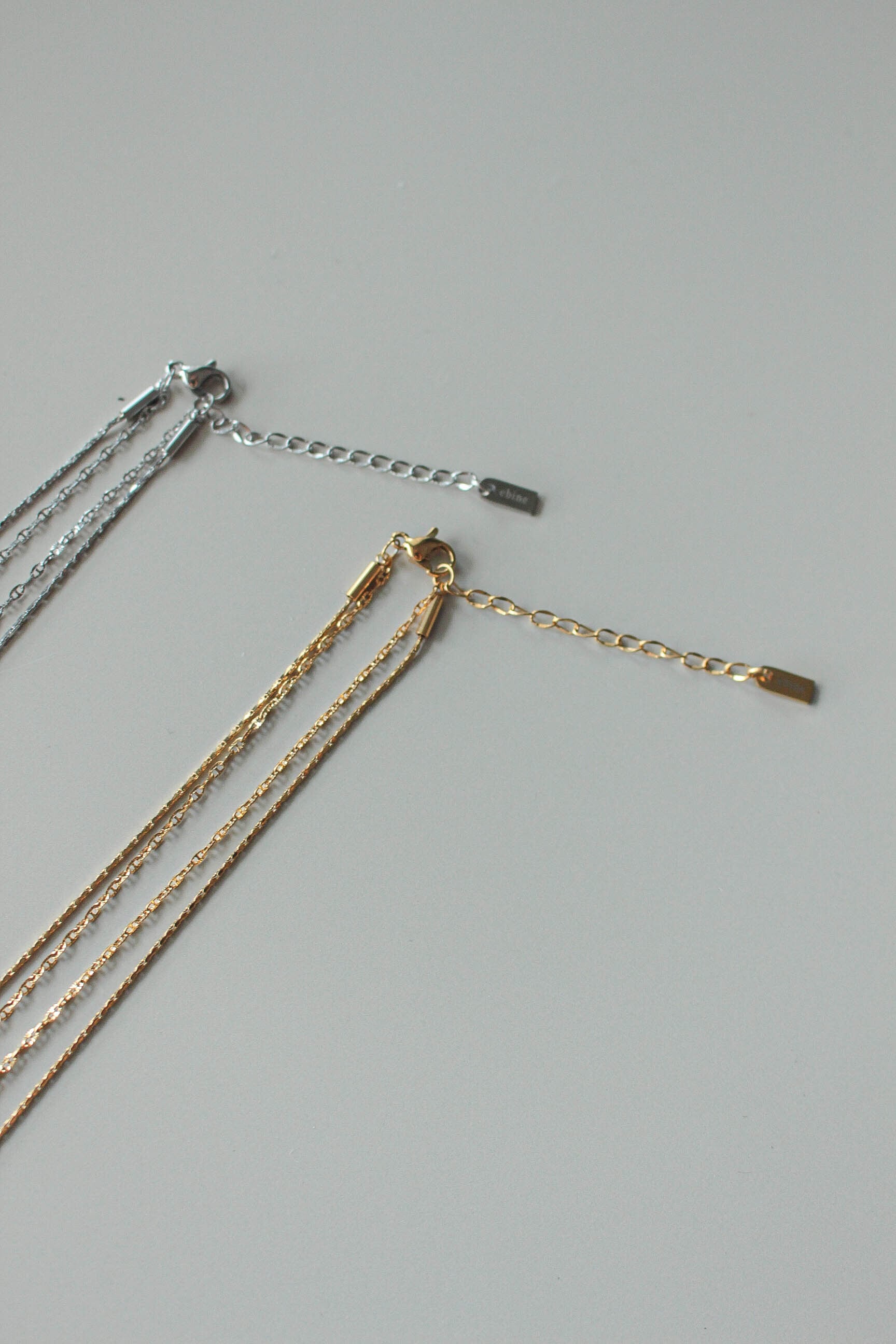 ミニペタルチェーンと0.6mm スキンネックレスを組み合わせ2連にデザインしたネックレス。
