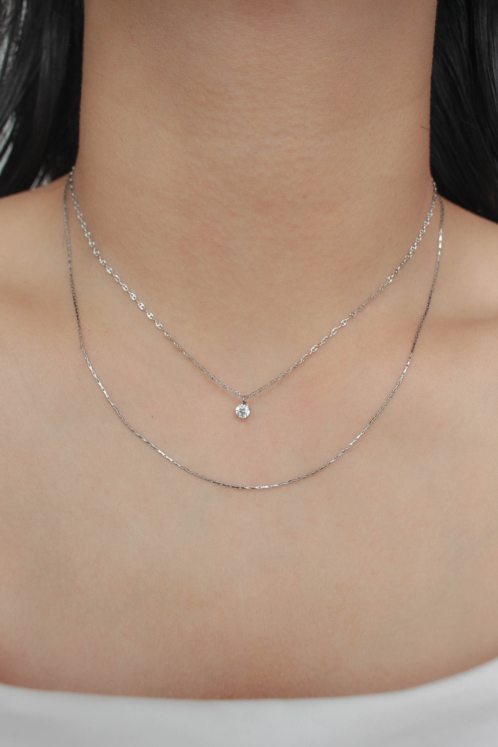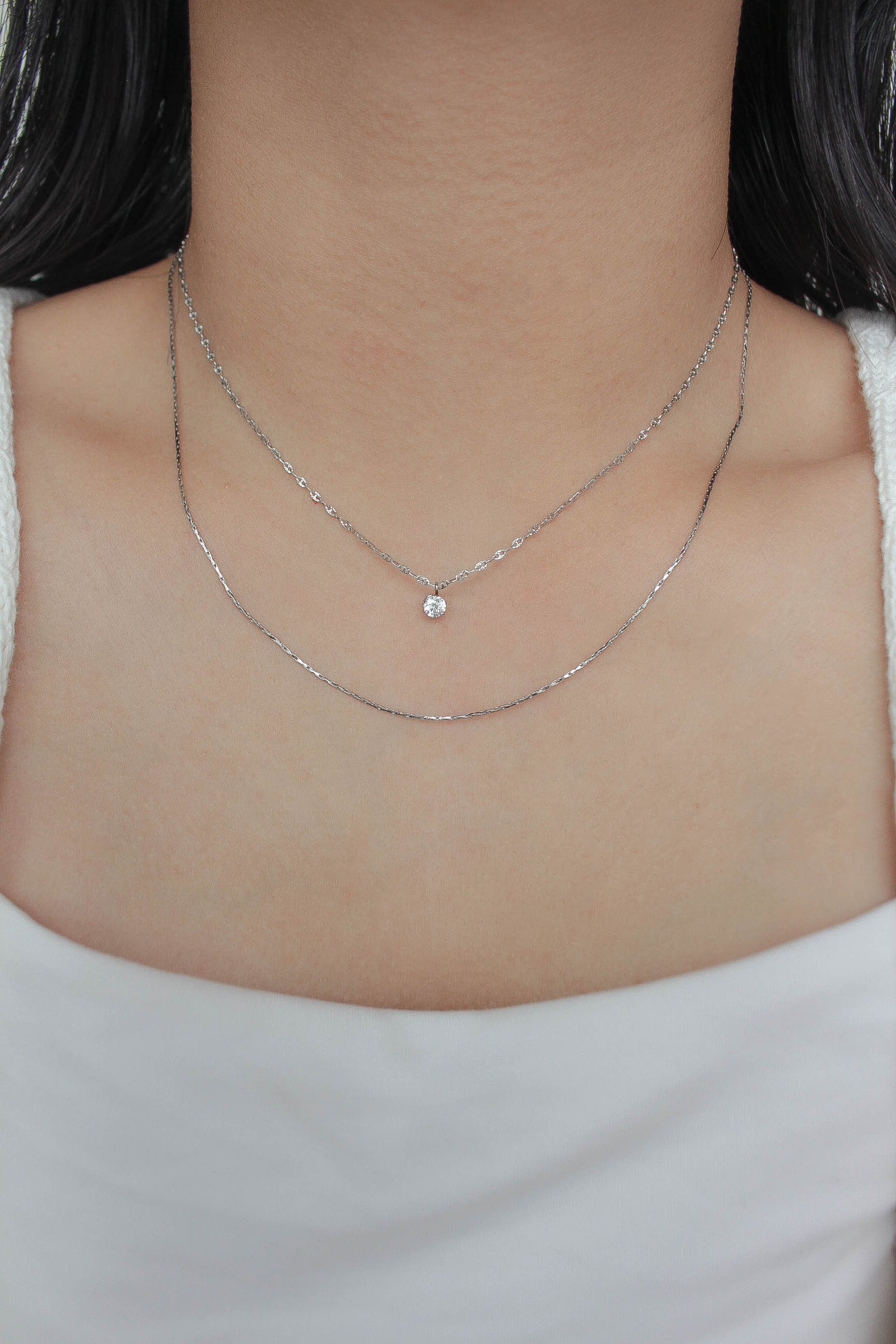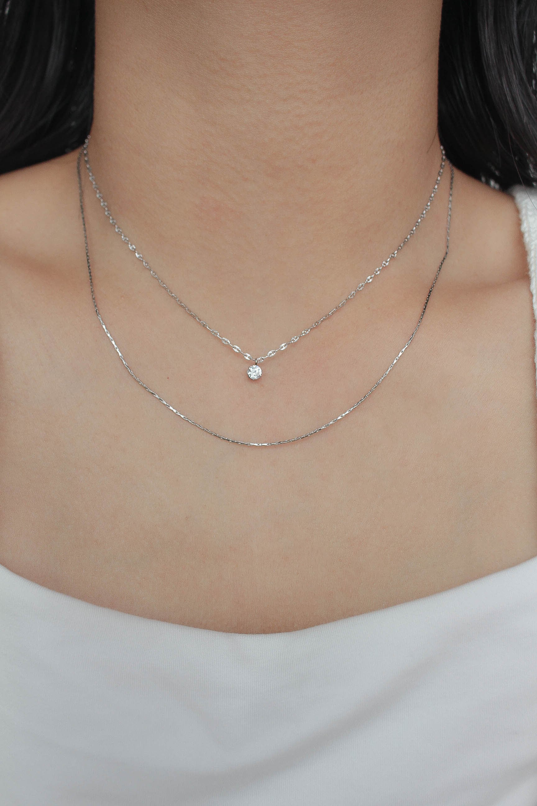 ミニペタルチェーンと0.6mm スキンネックレスを組み合わせ2連にデザインしたネックレス。