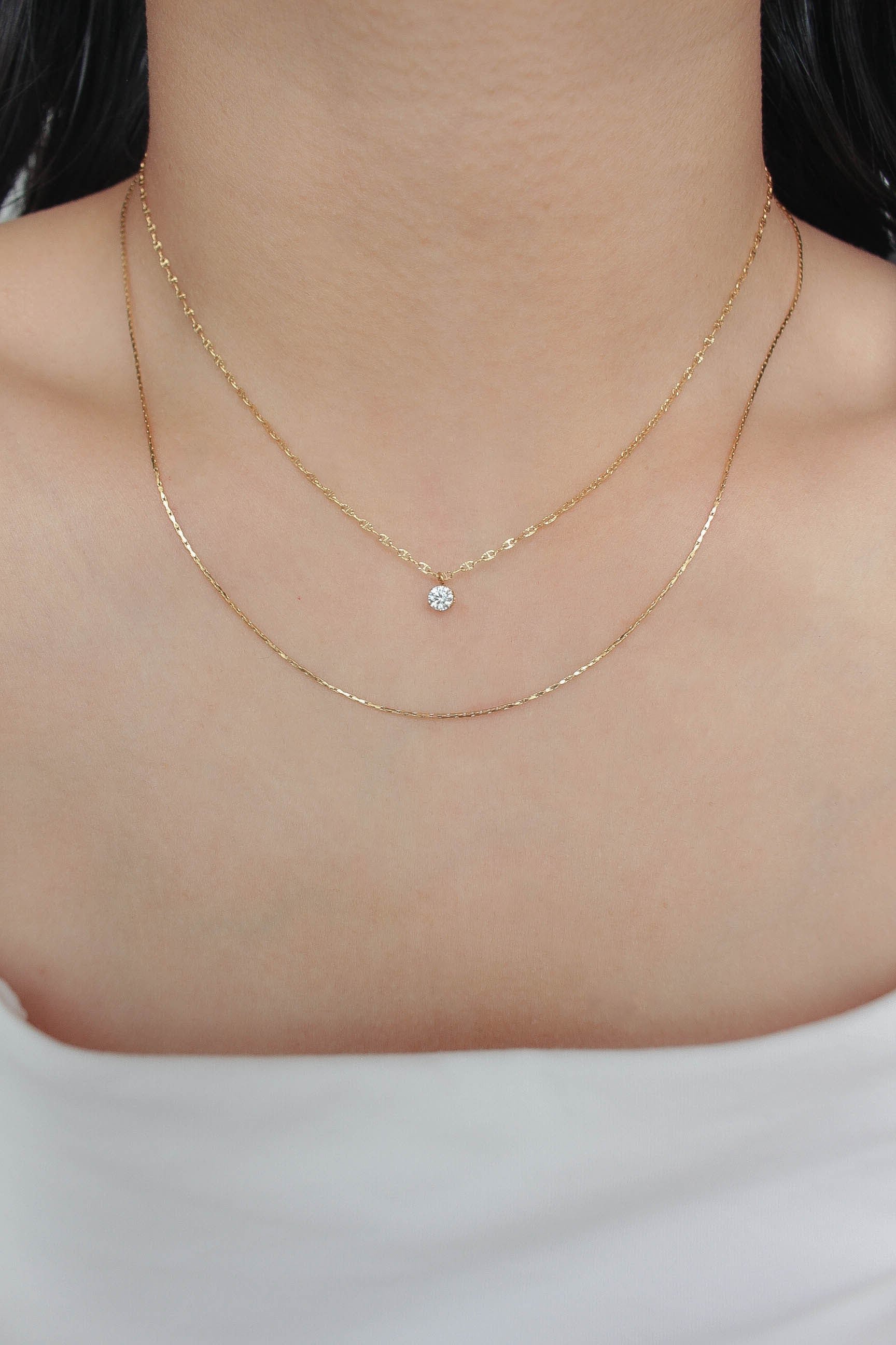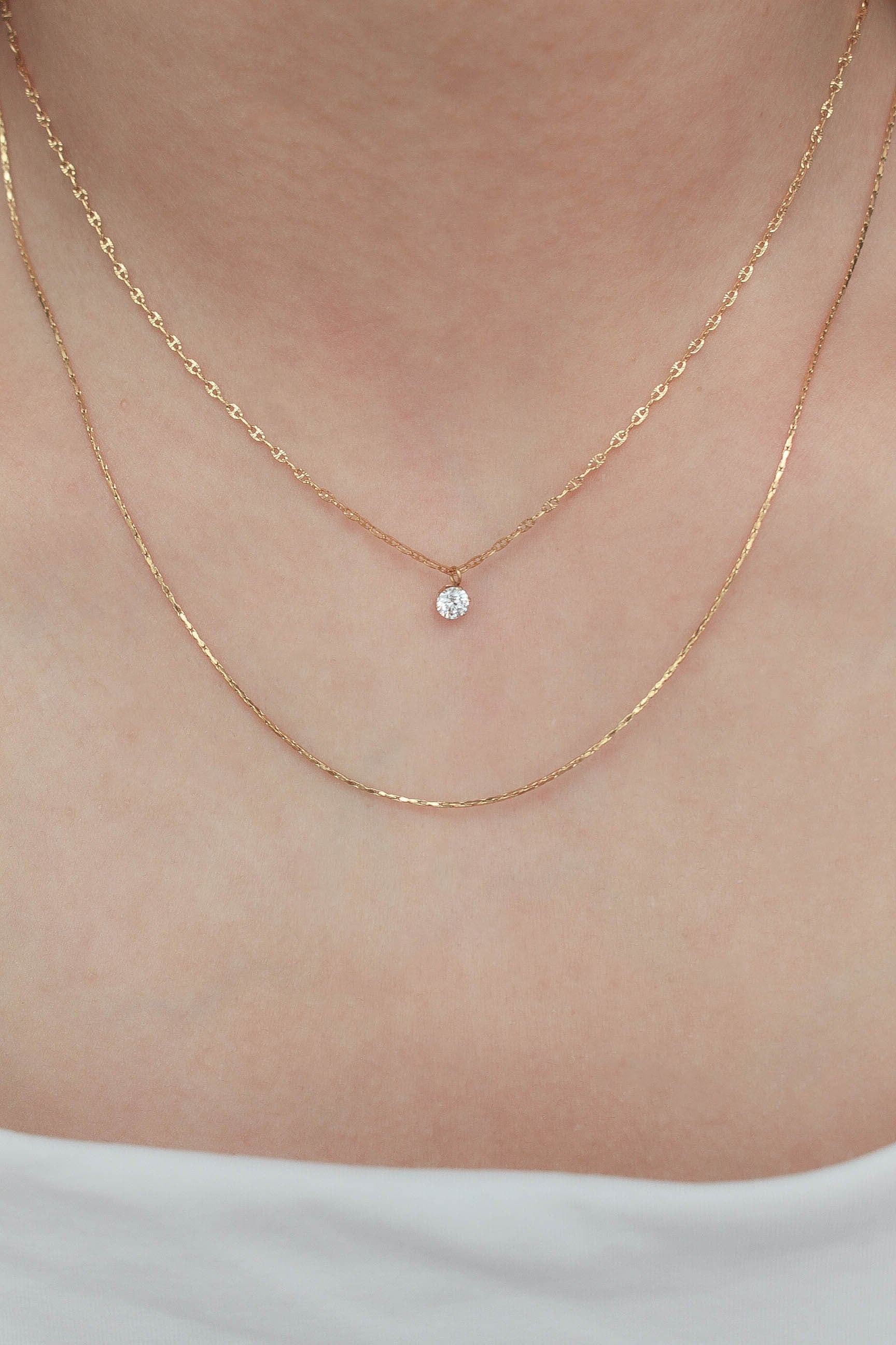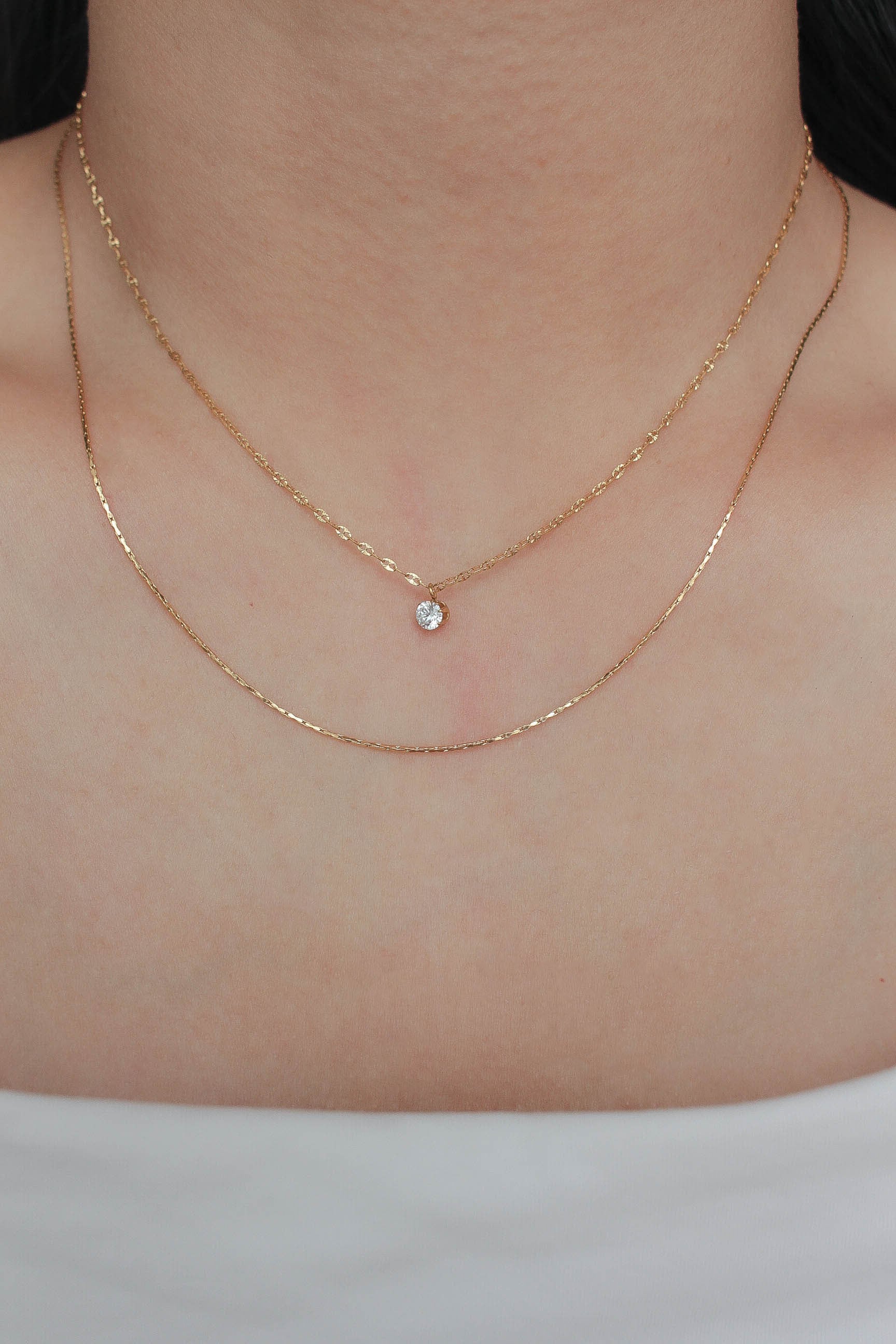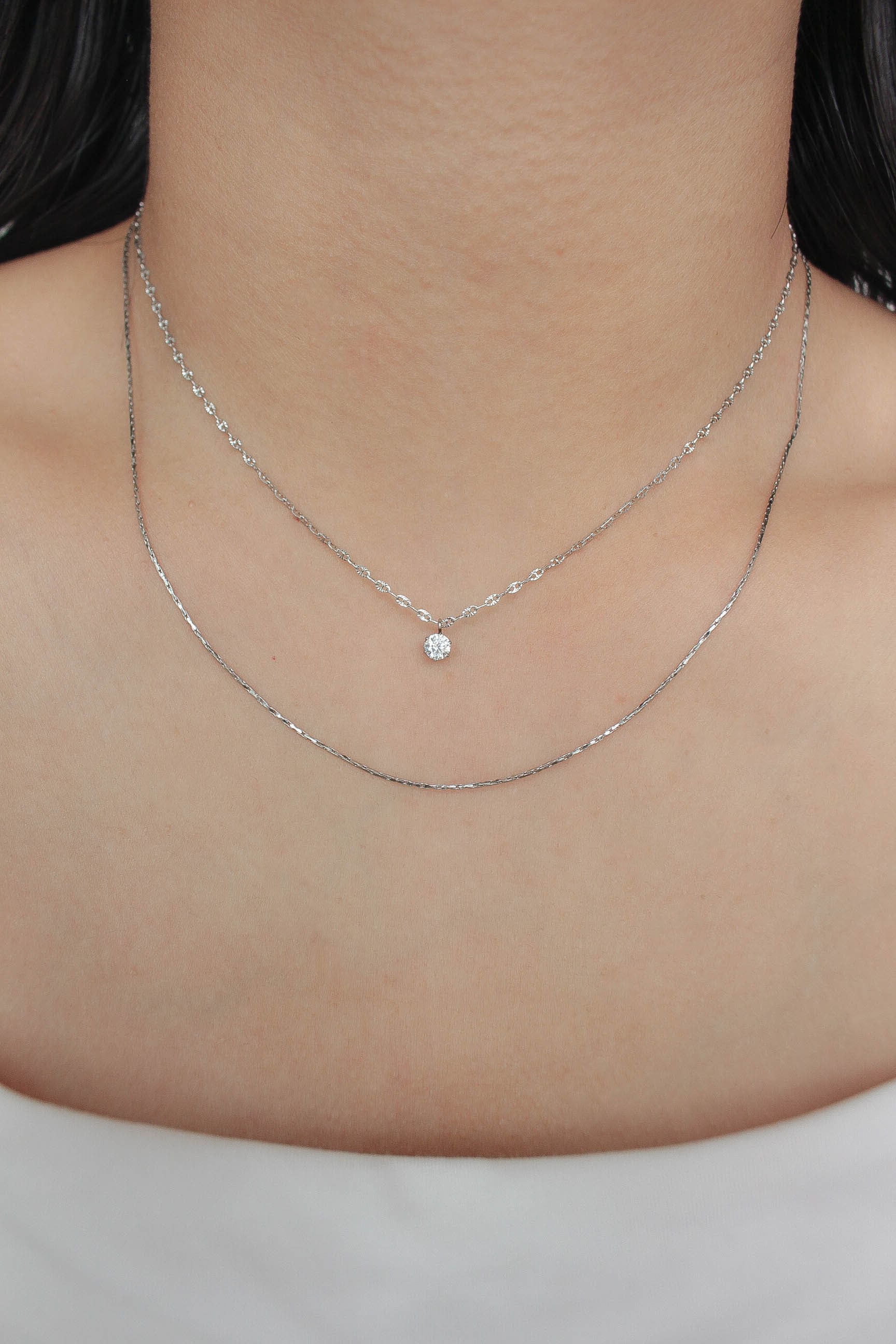 ミニペタルチェーンと0.6mm スキンネックレスを組み合わせ2連にデザインしたネックレス。