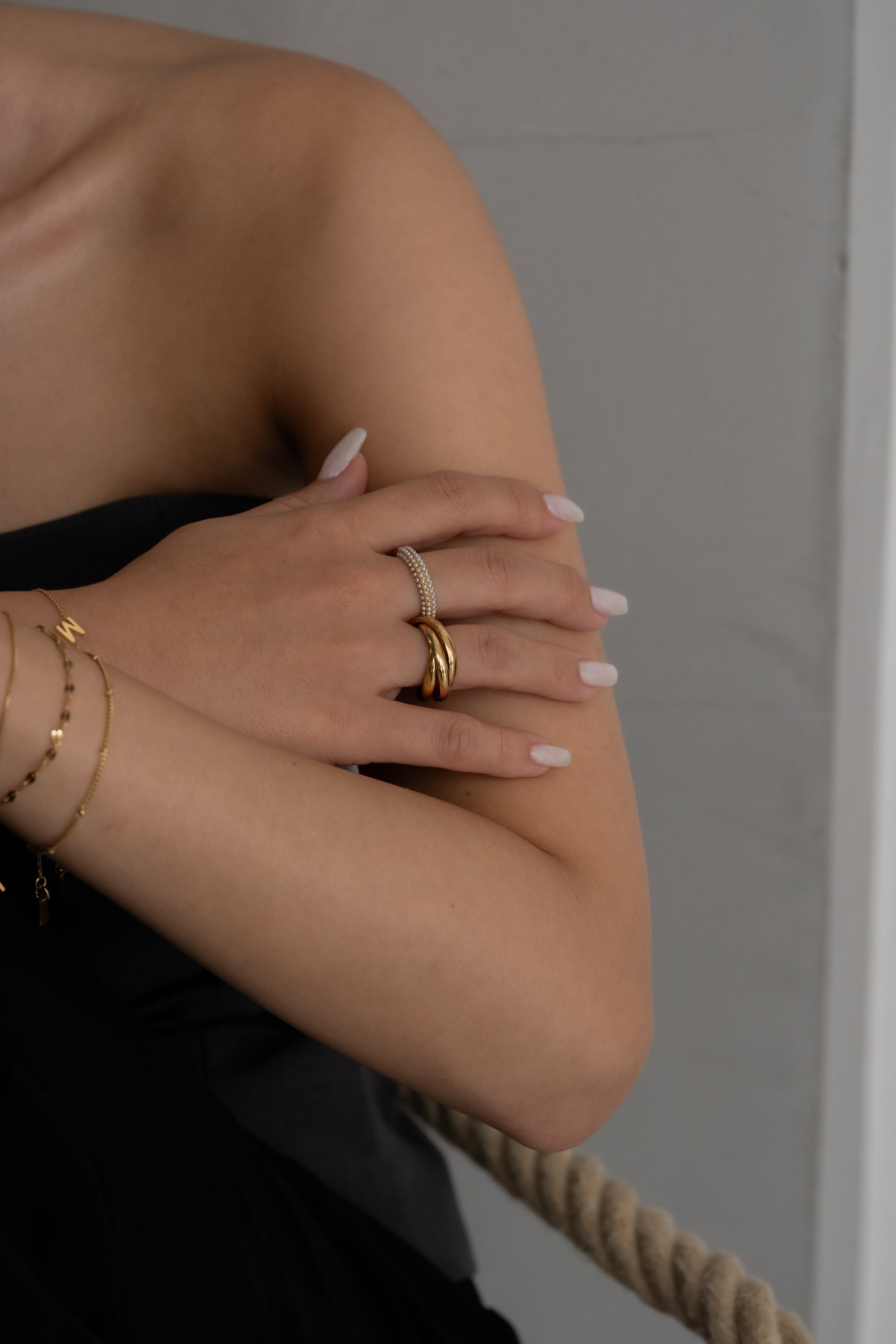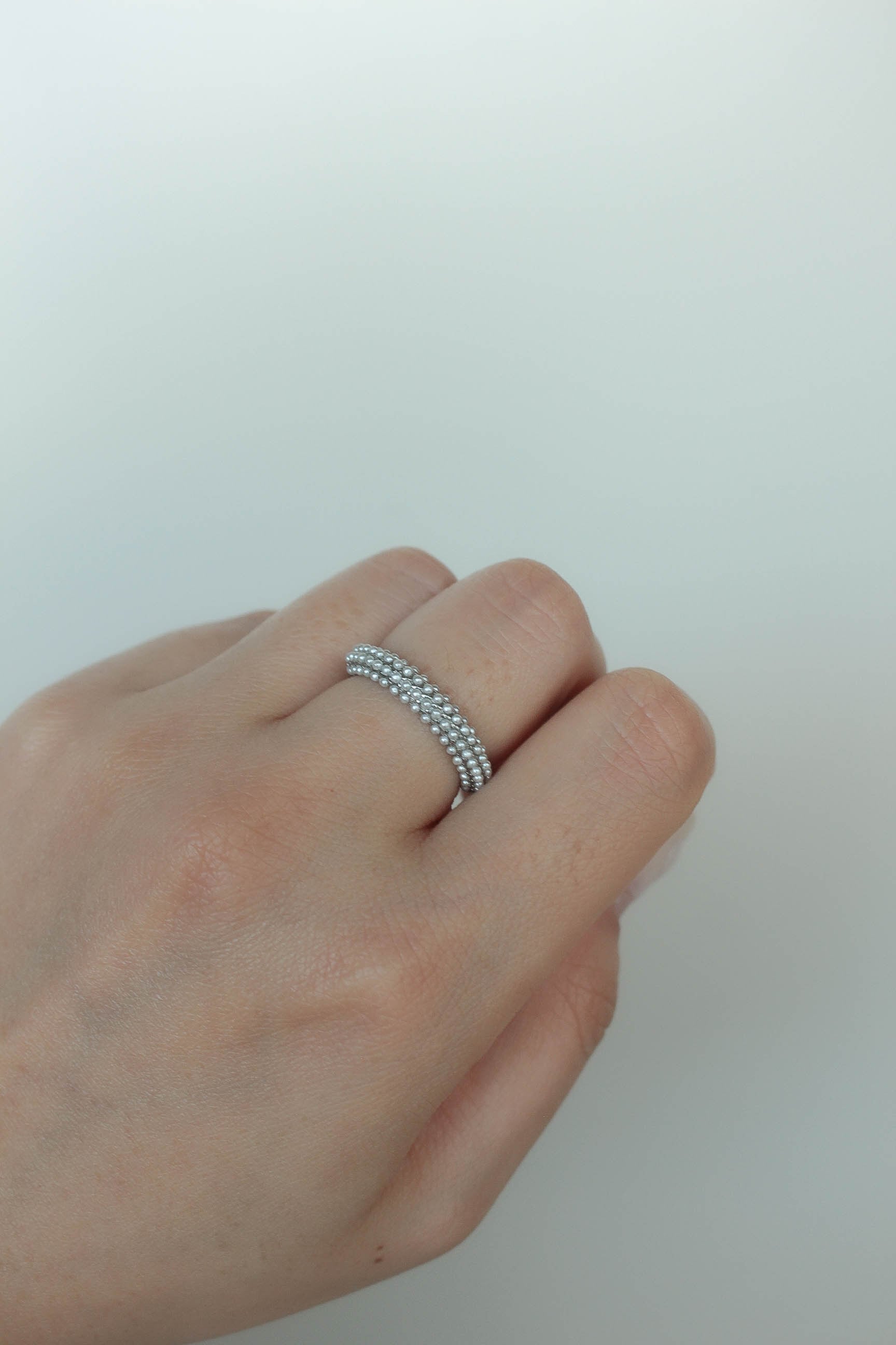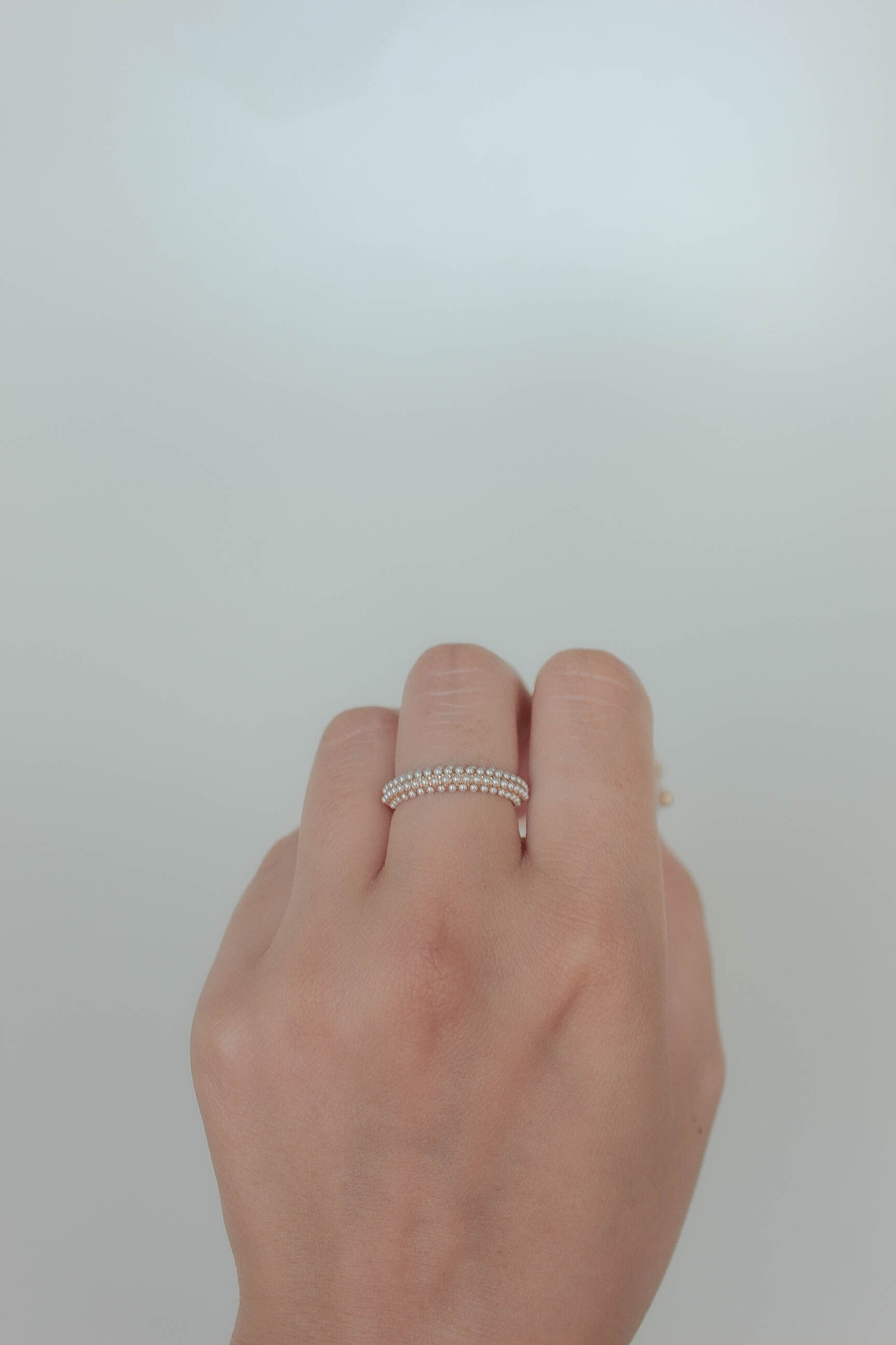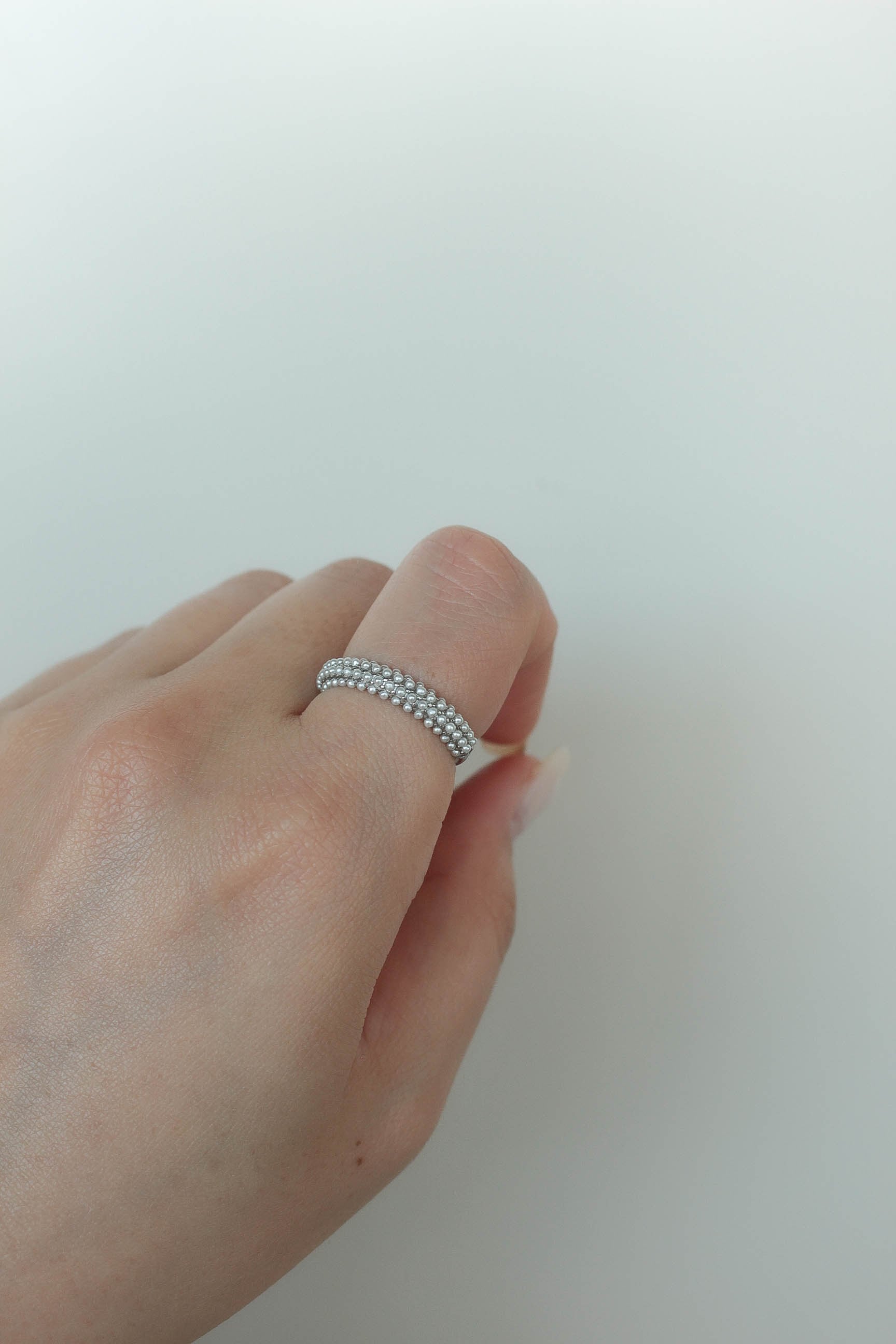 ふっくらデザインしたリングの先端に満遍なくパールを施した気品のあるリング。