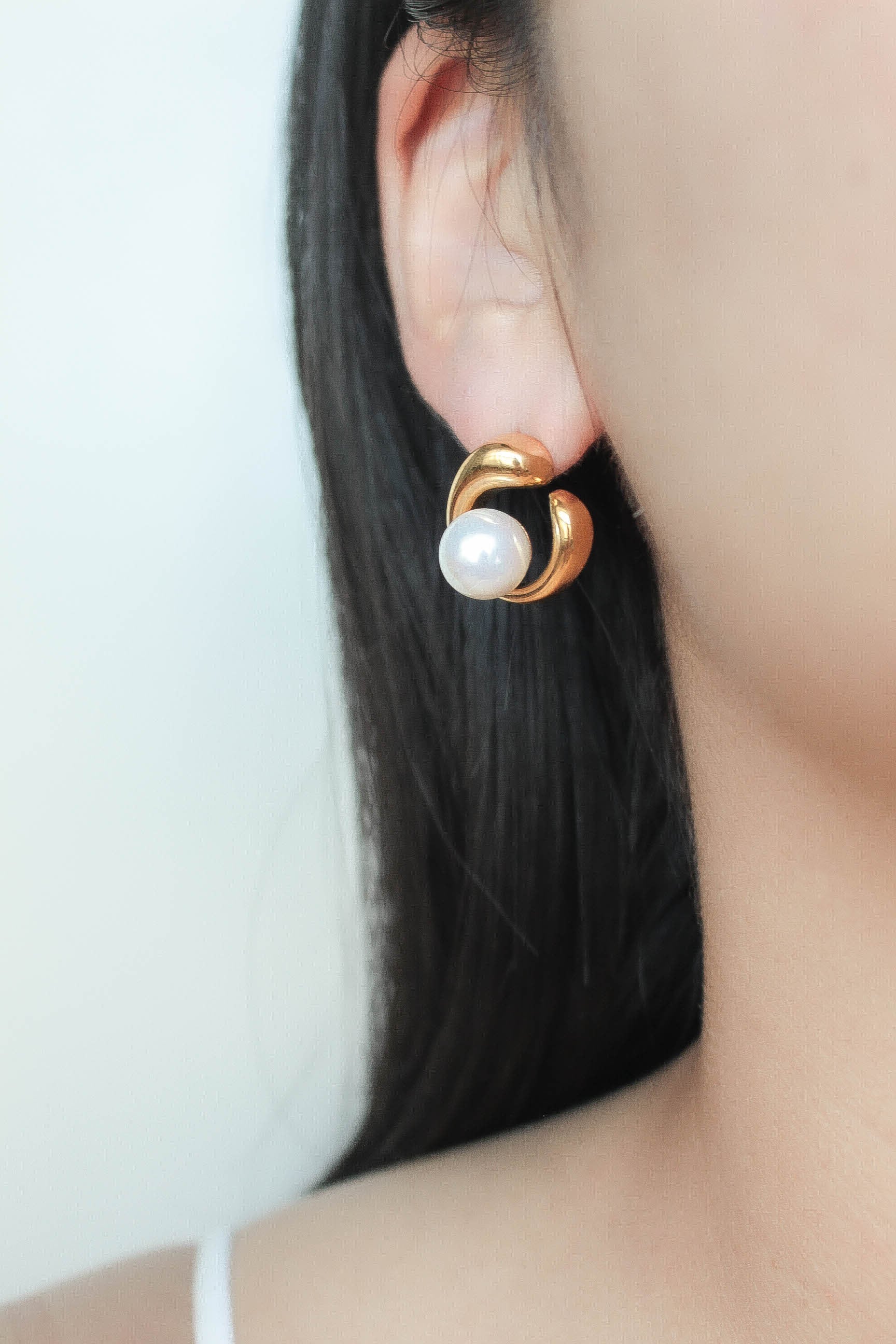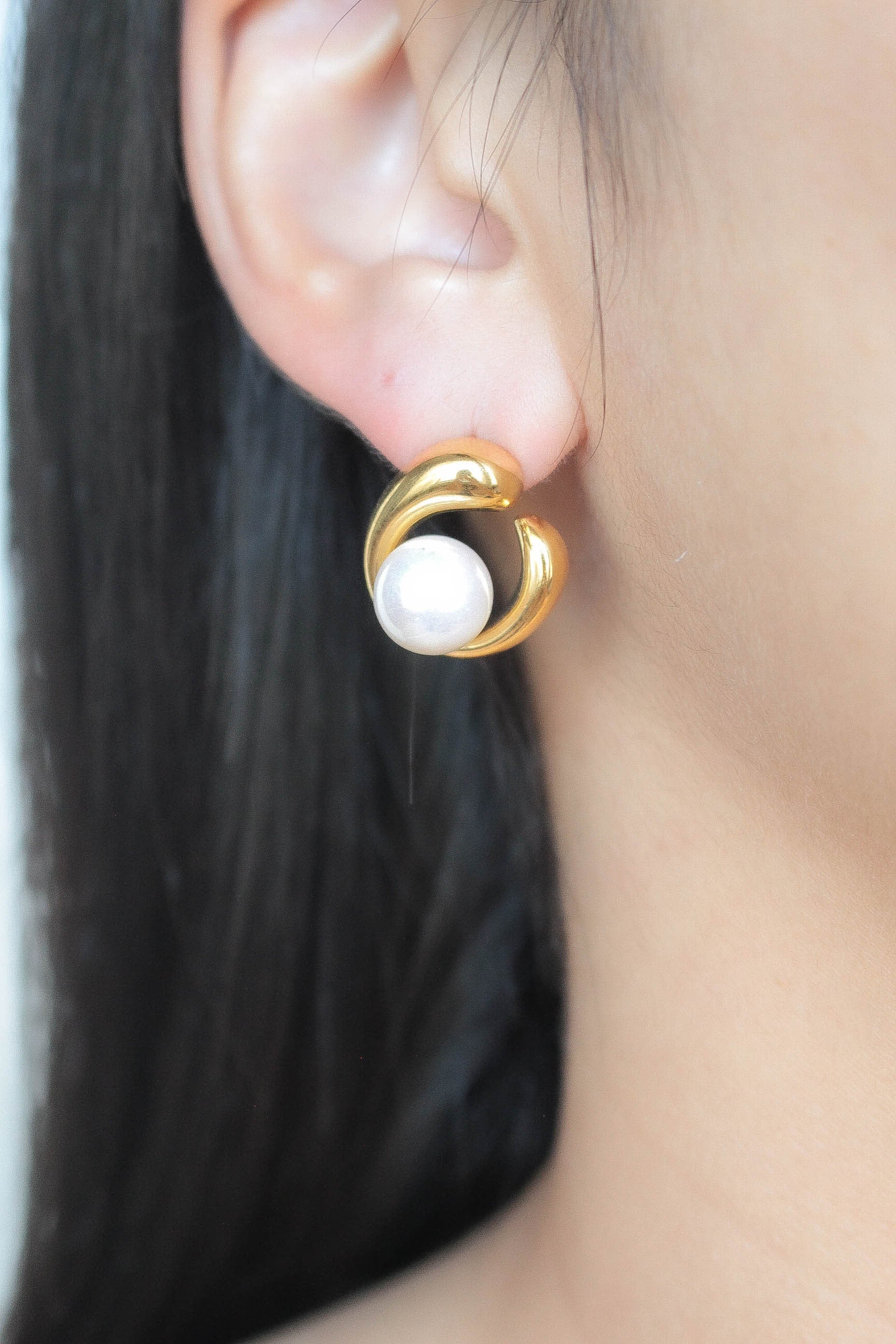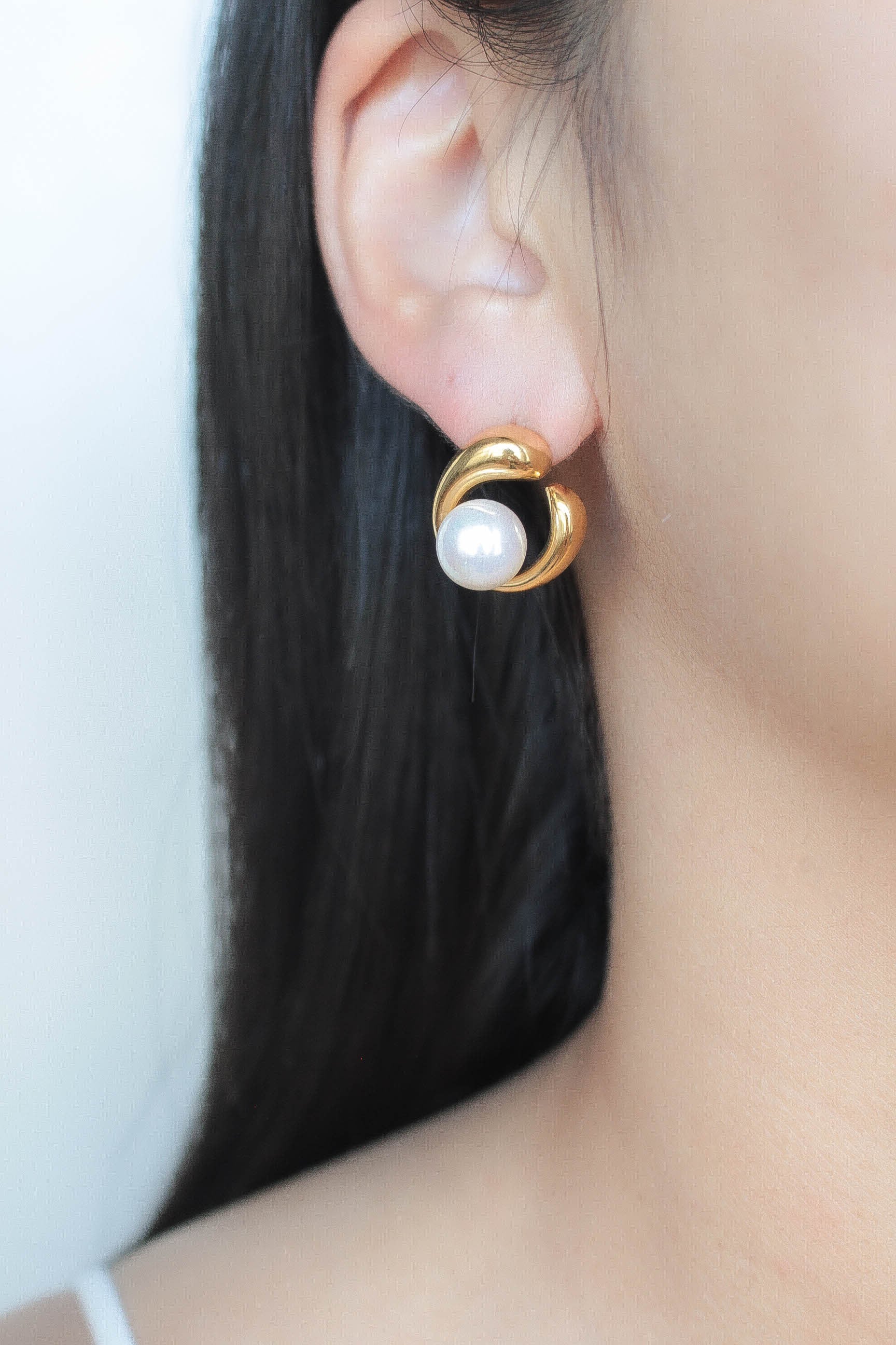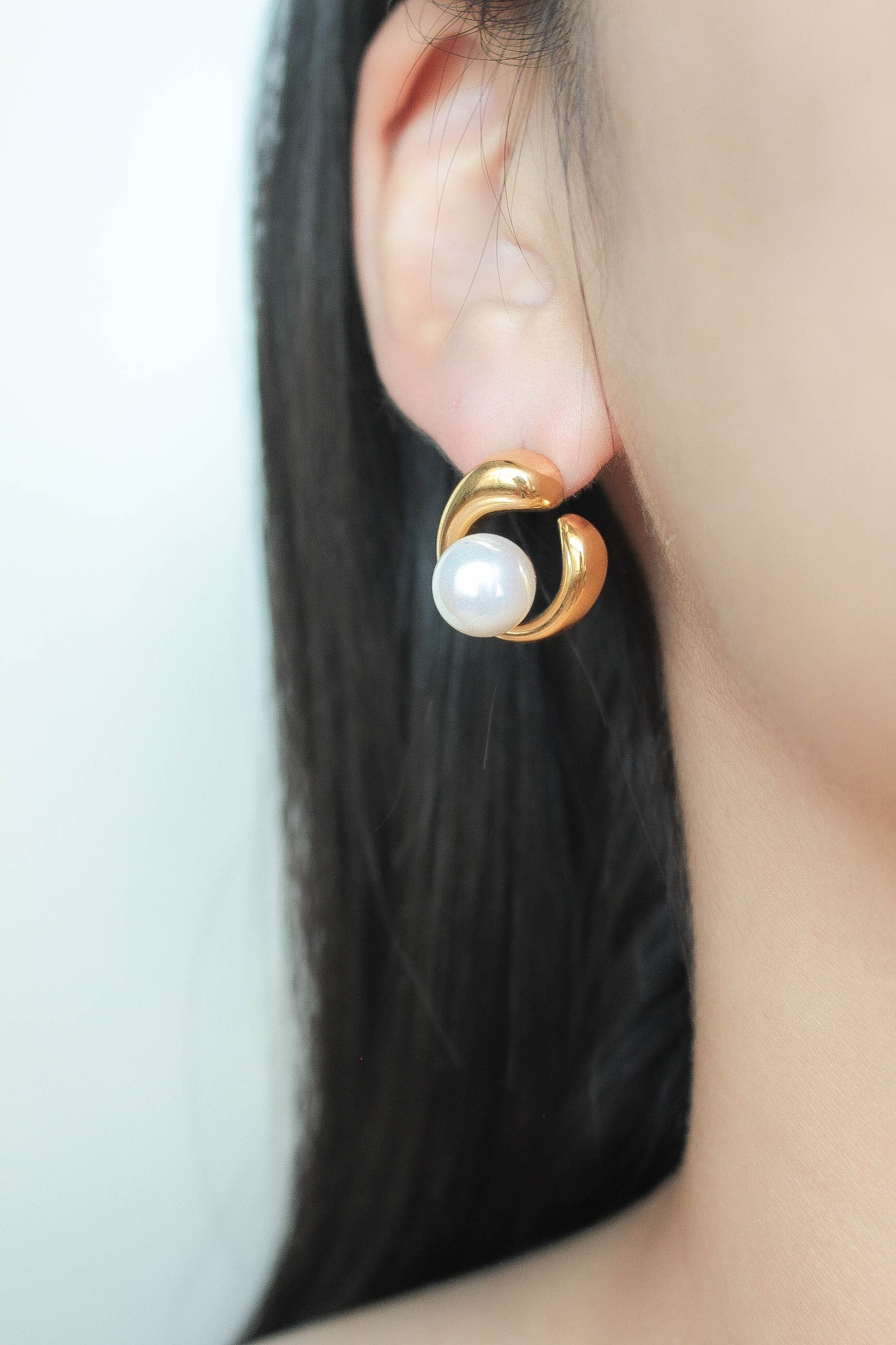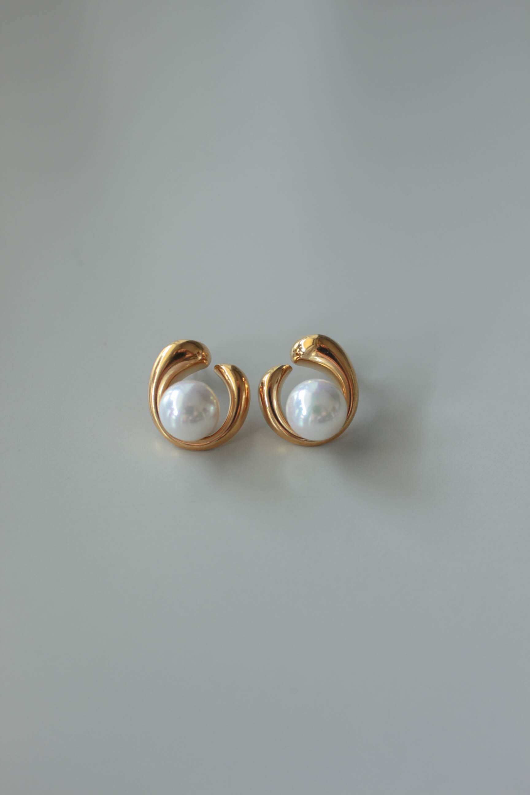 ゴールドパーツの真ん中に大粒のパールがついたデザインで