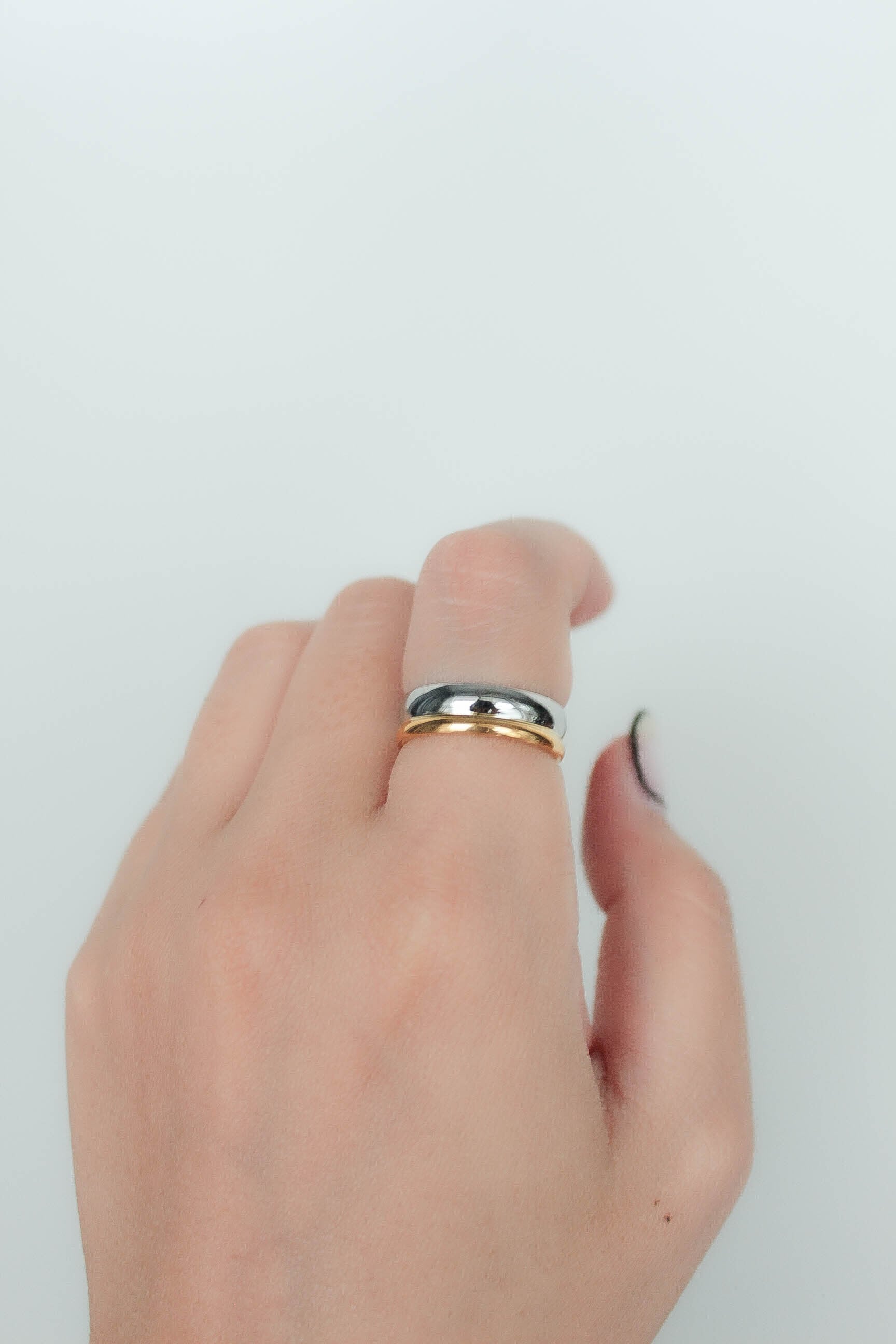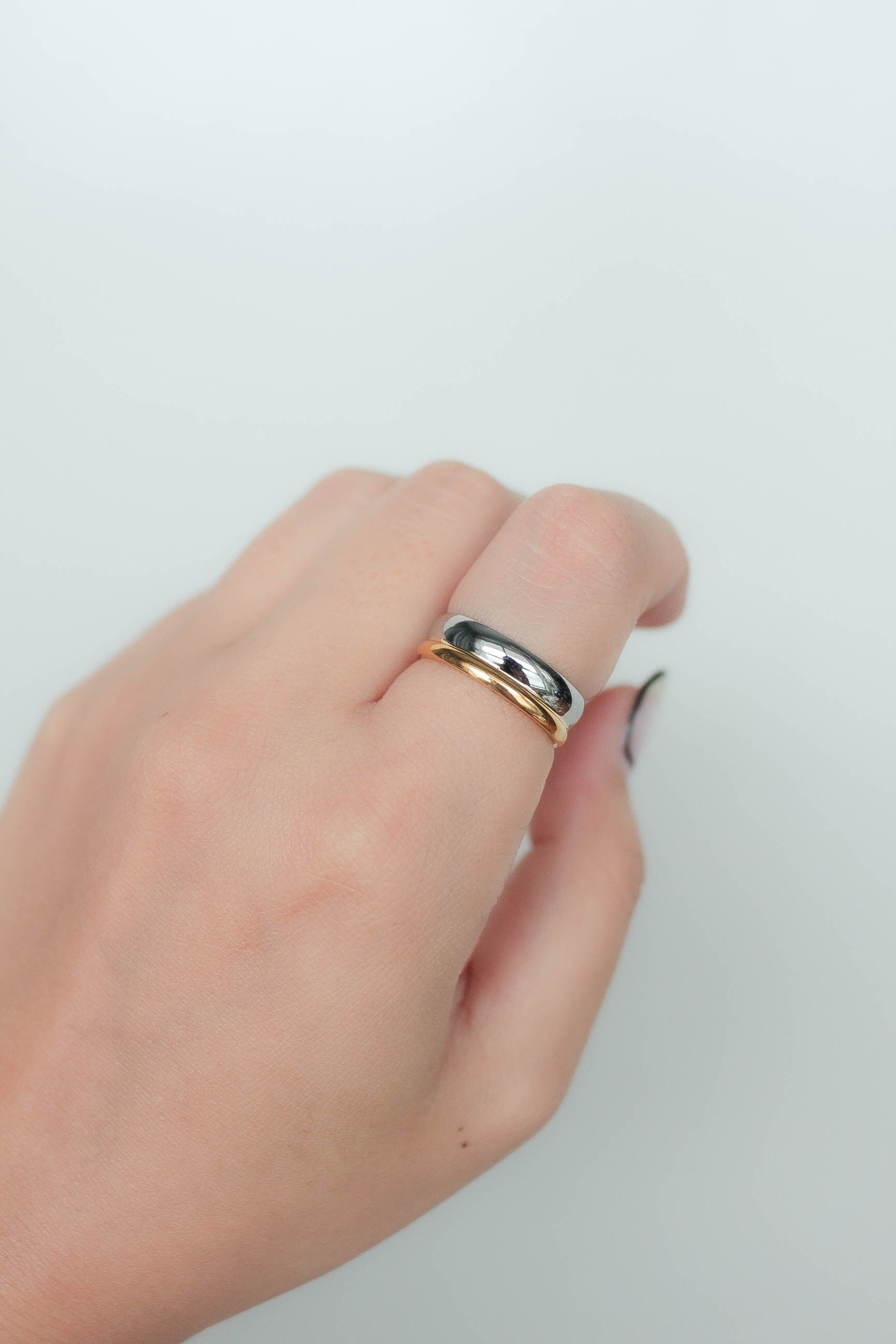 丸みのある大きさの異なるリングを重ね合わせたリング。