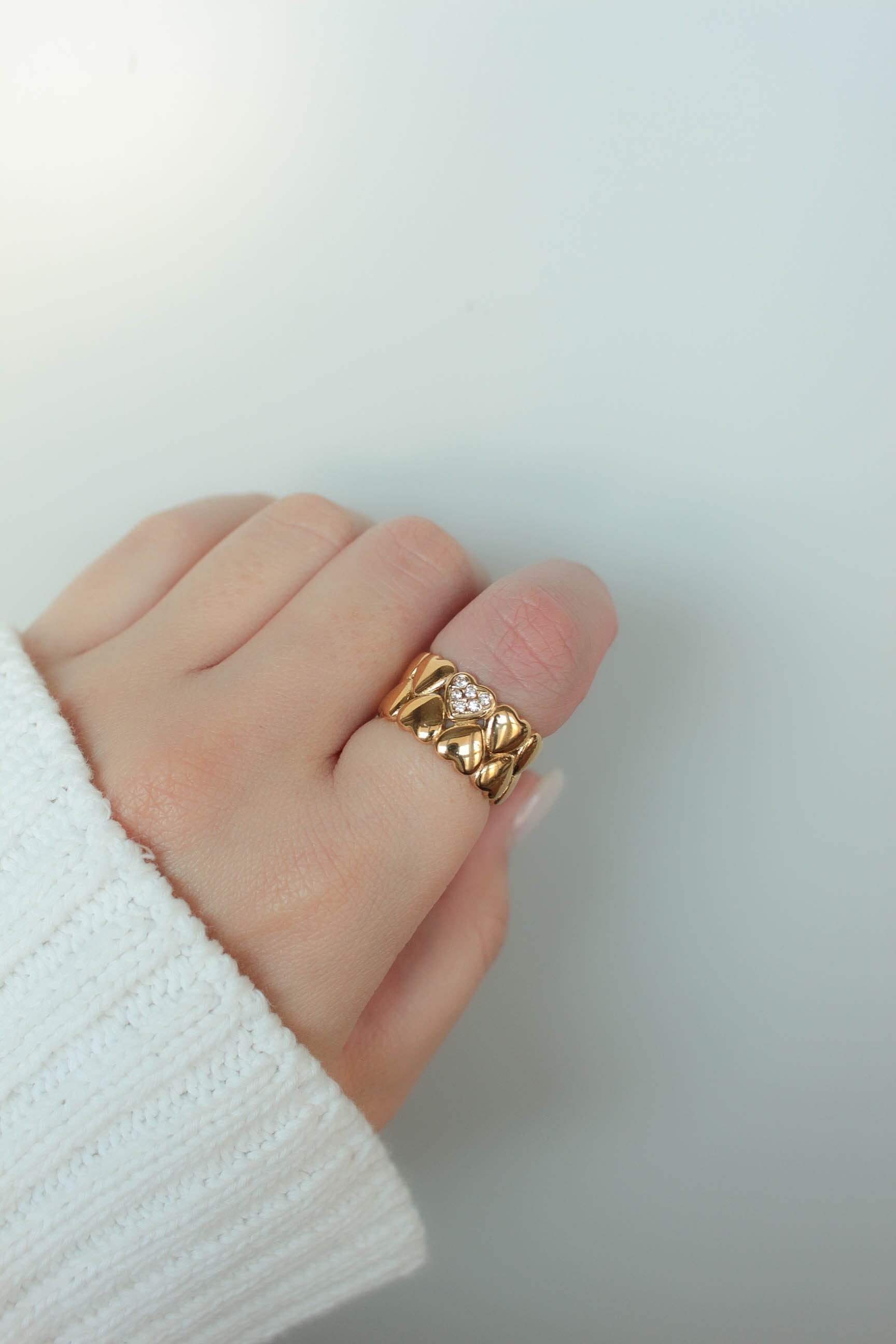 ハートモチーフを360度あしらい2重に重ねた存在感のあるリング。