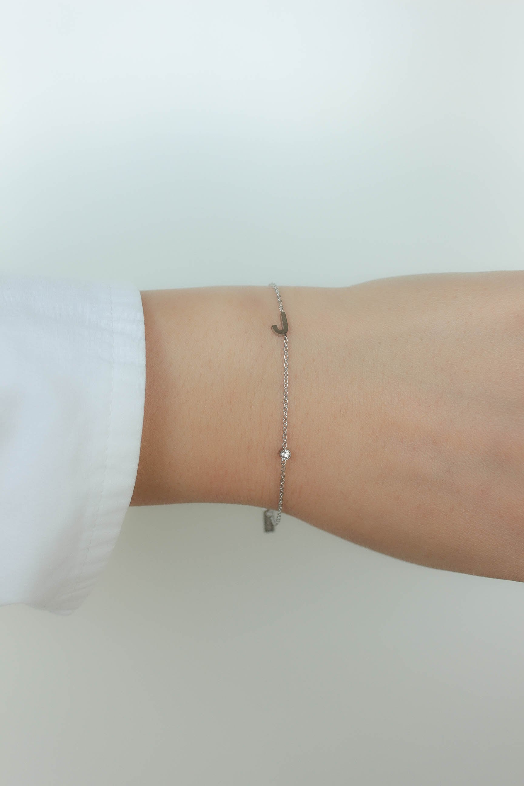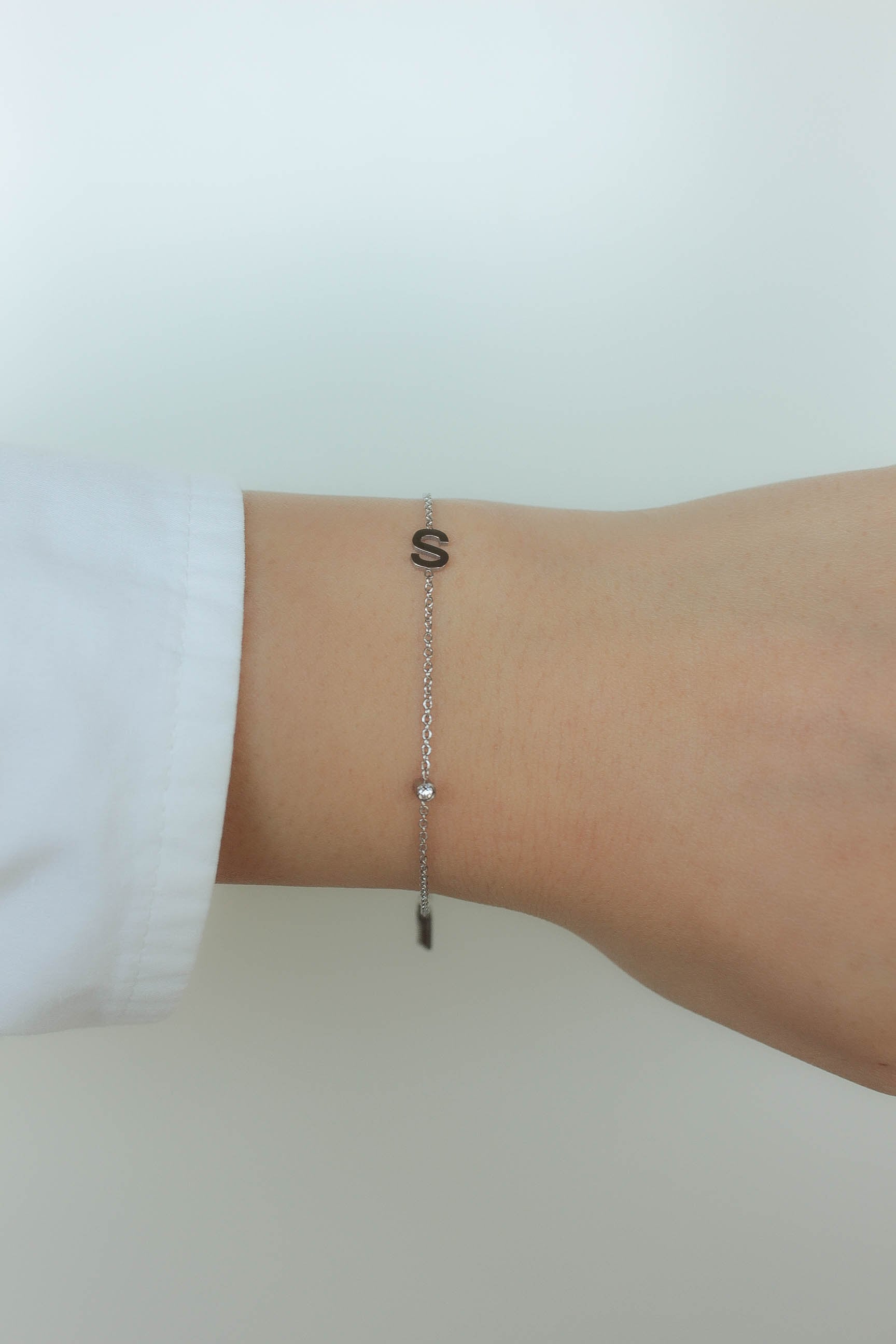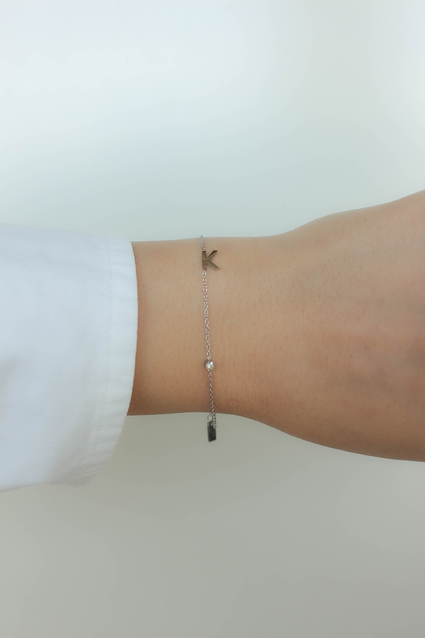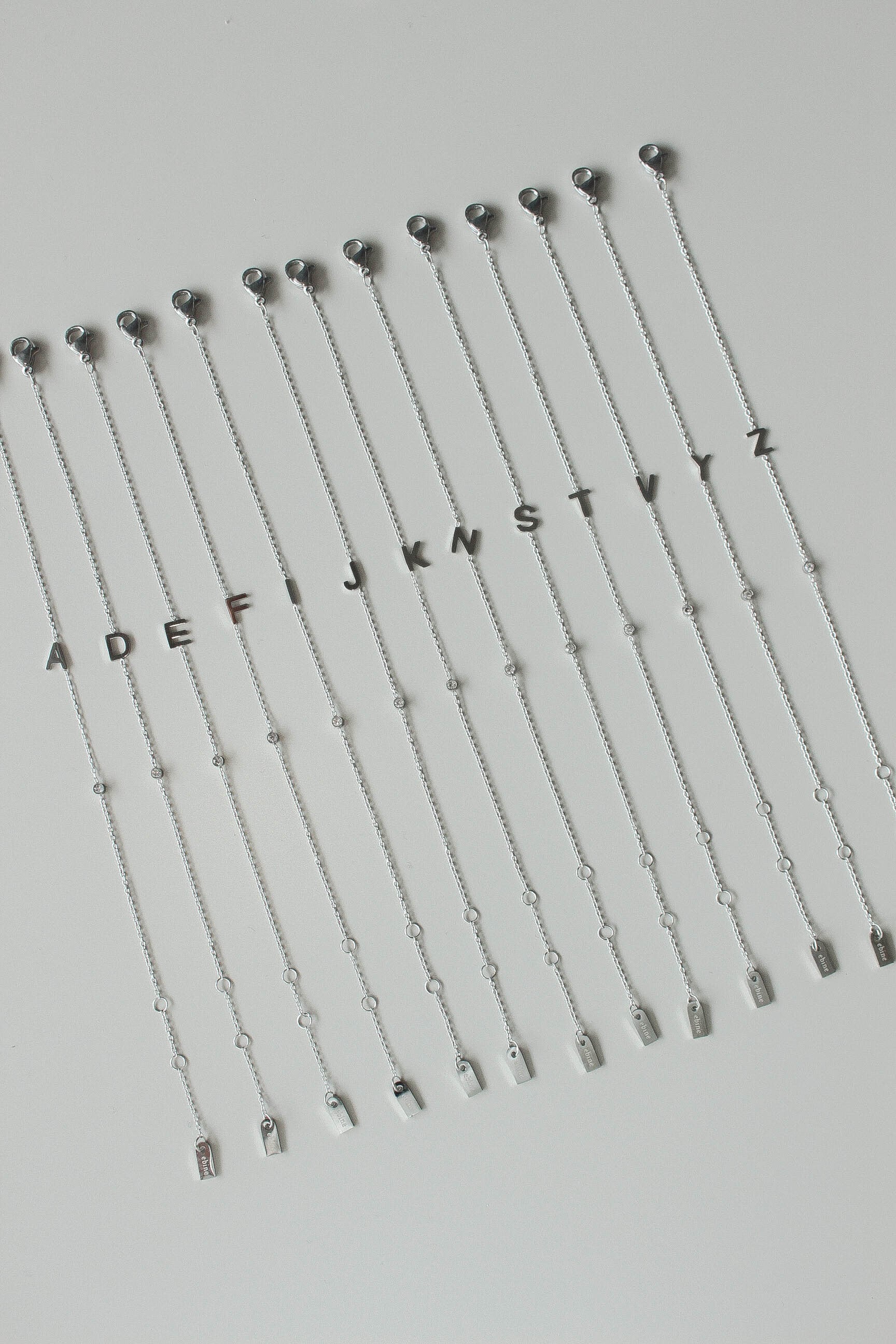 アルファベットと一粒ジルコニアが一緒になったブレスレット。