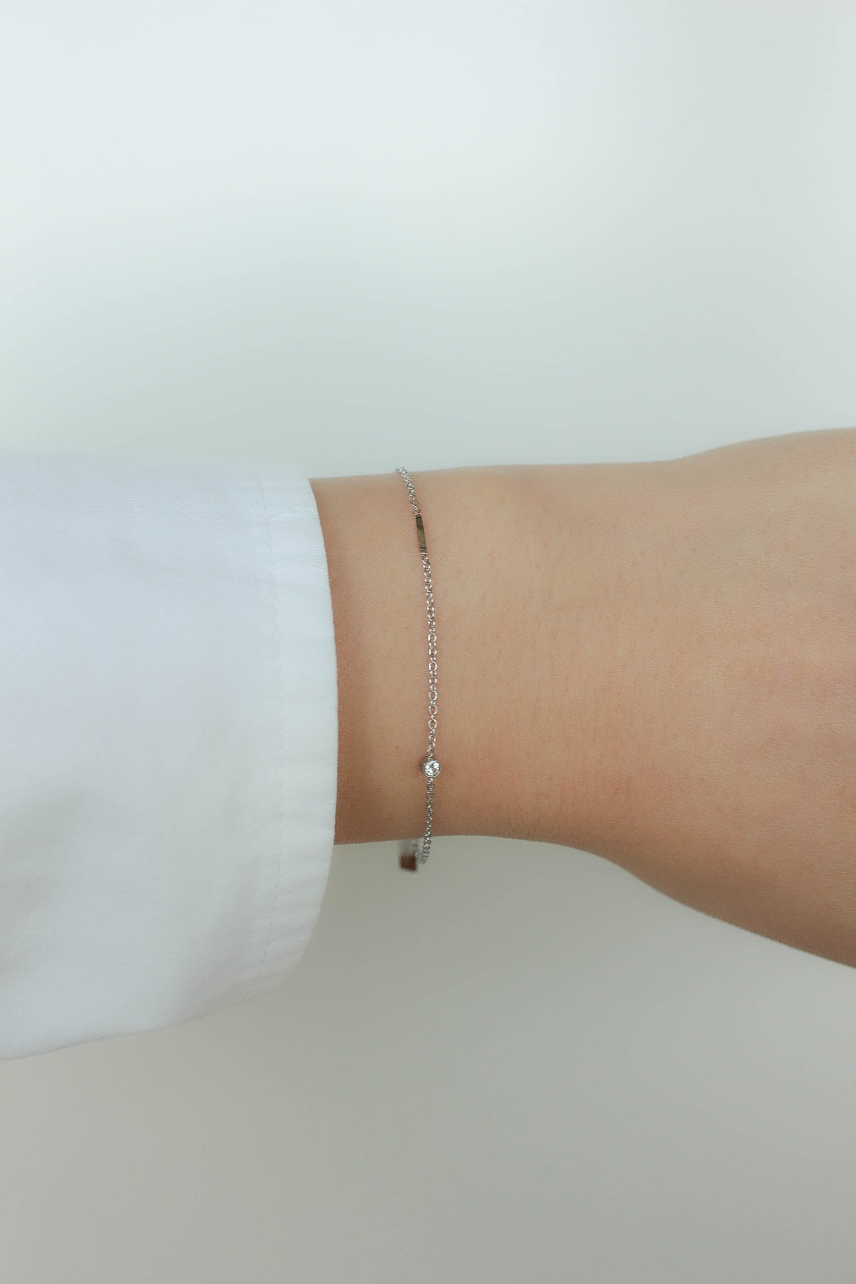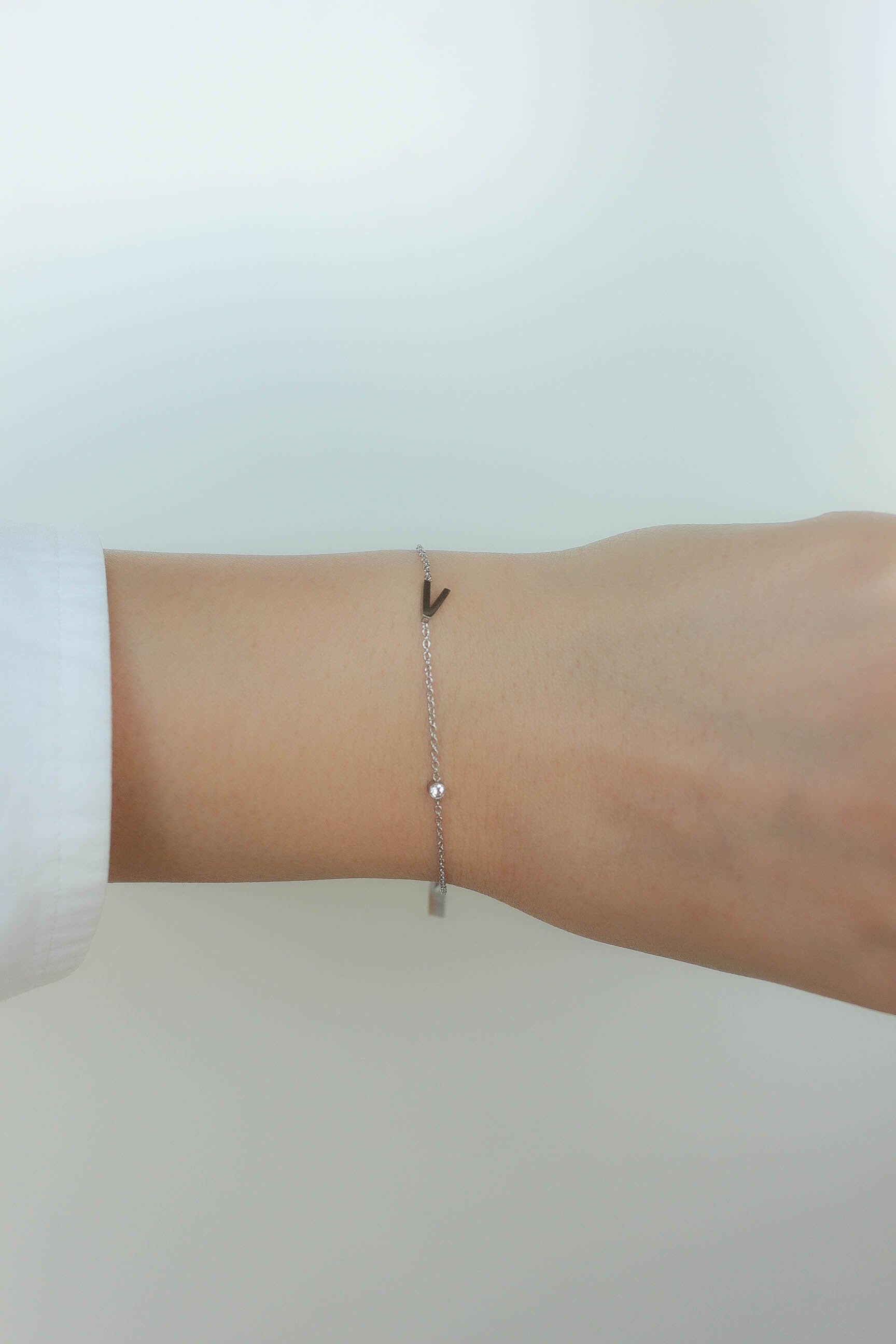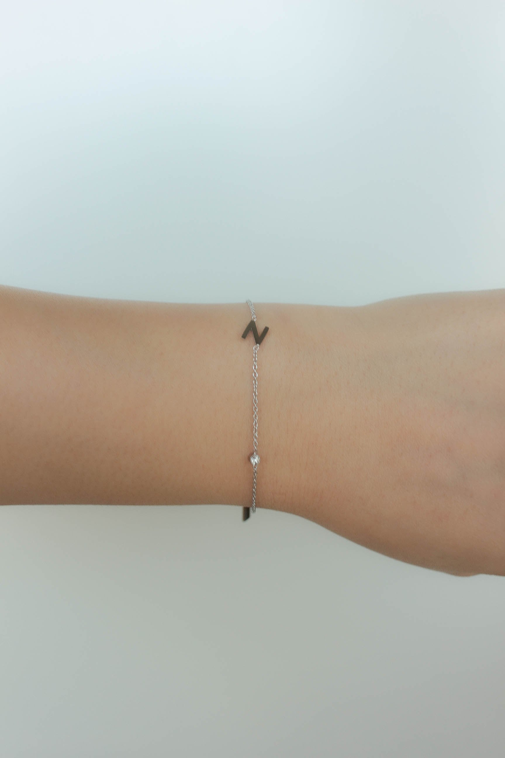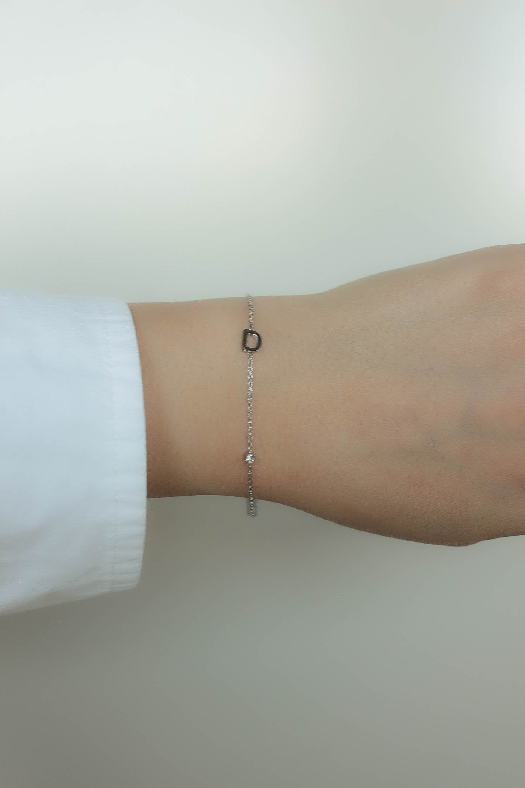 アルファベットと一粒ジルコニアが一緒になったブレスレット。