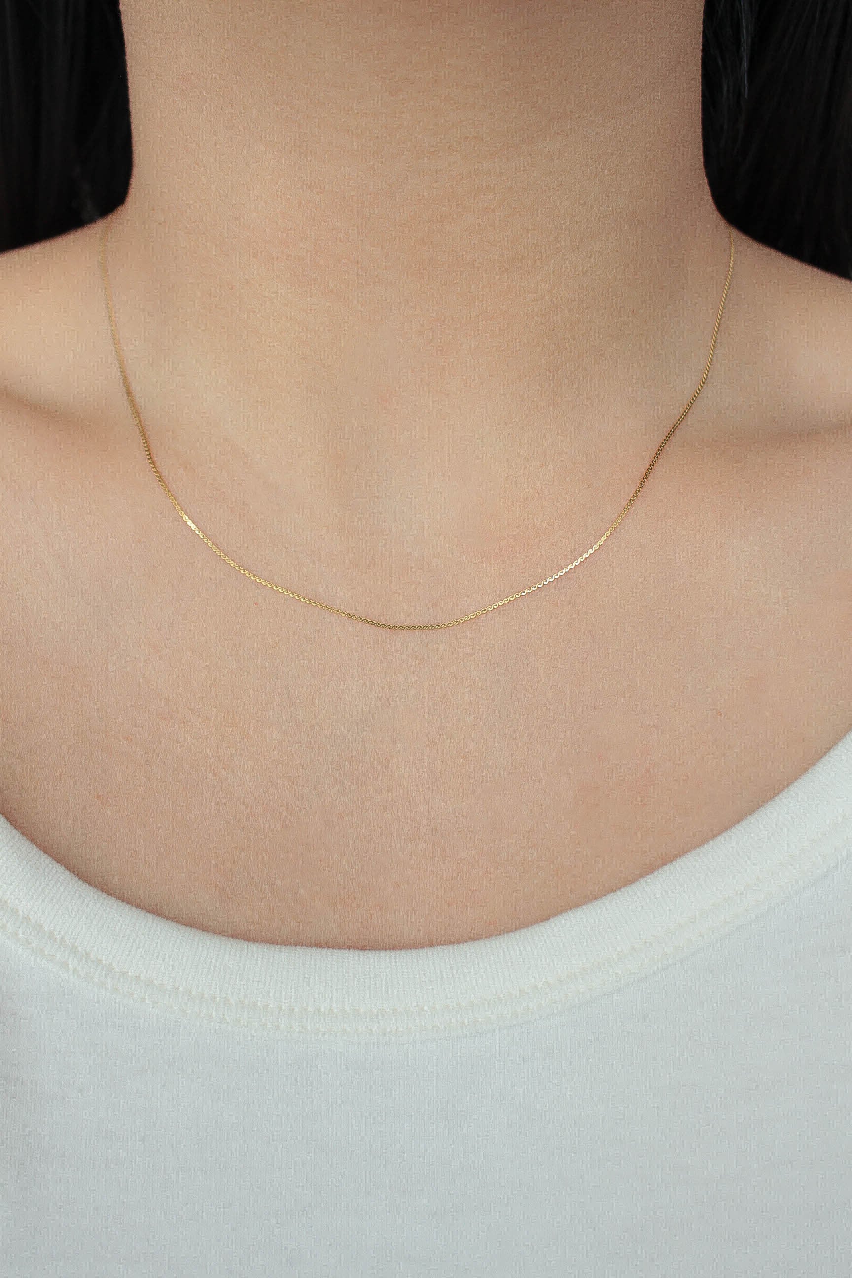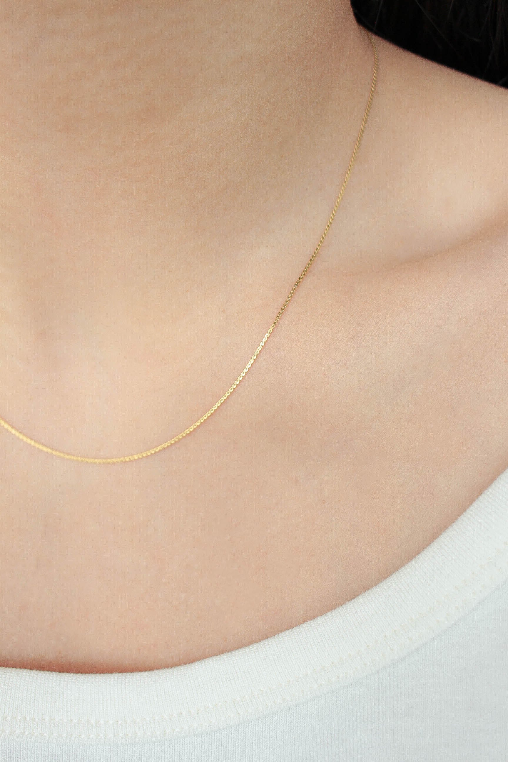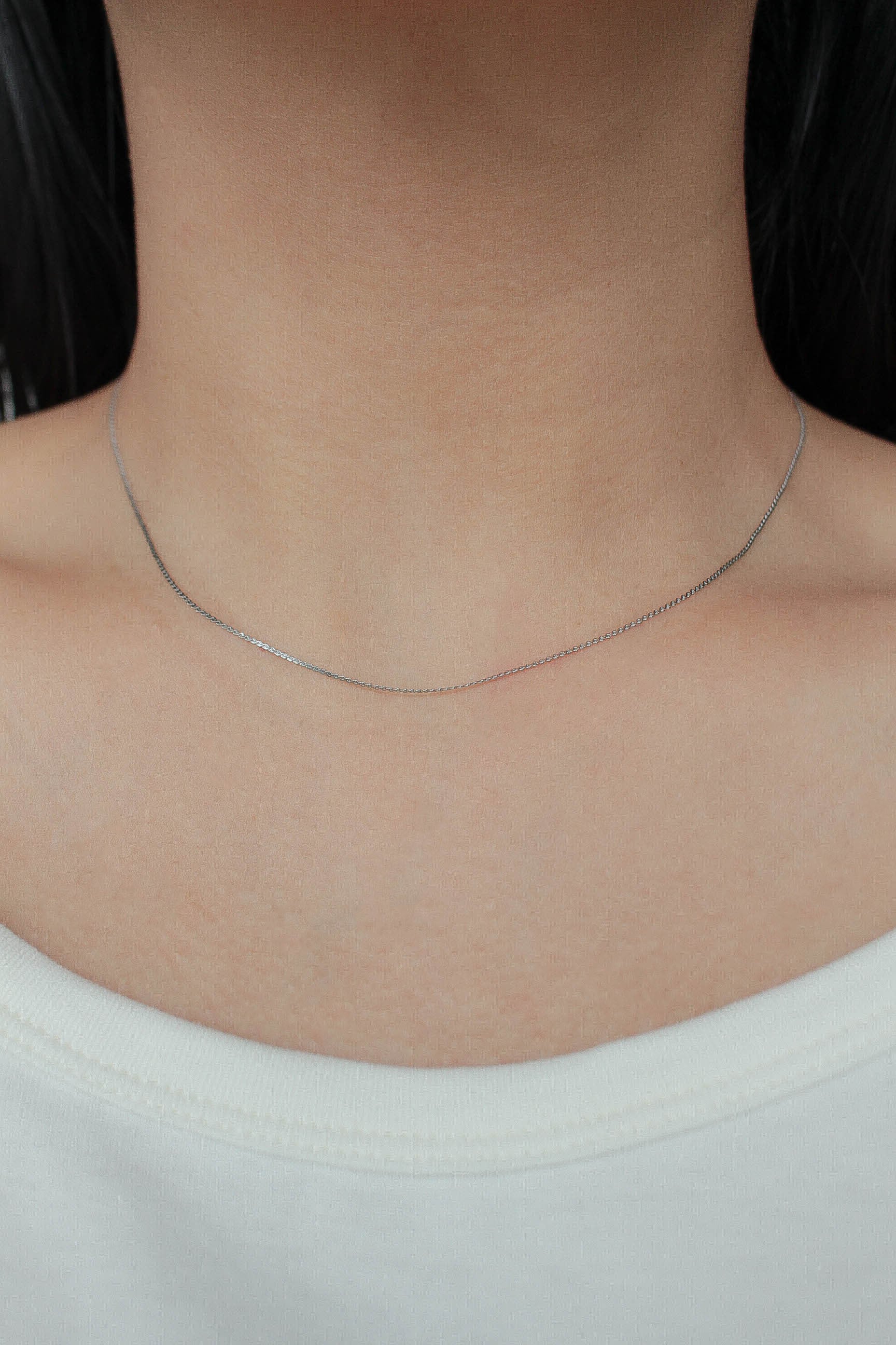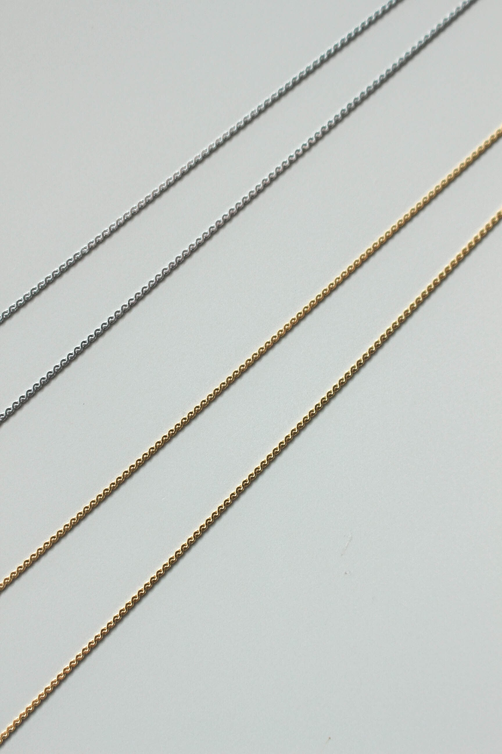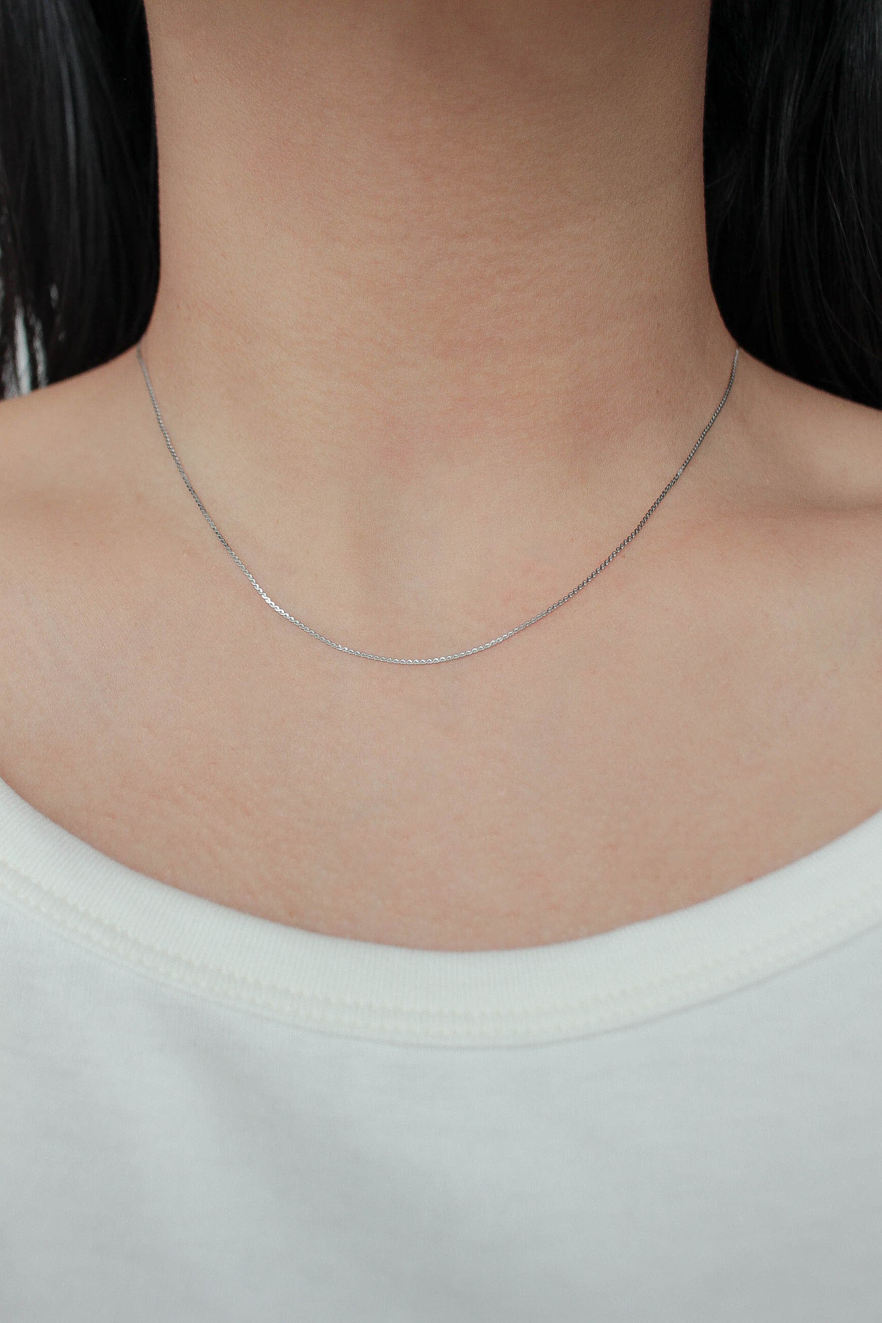 0.8mmの華奢チェーンネックレス。S字を組み合わせたようなデザインが特徴。