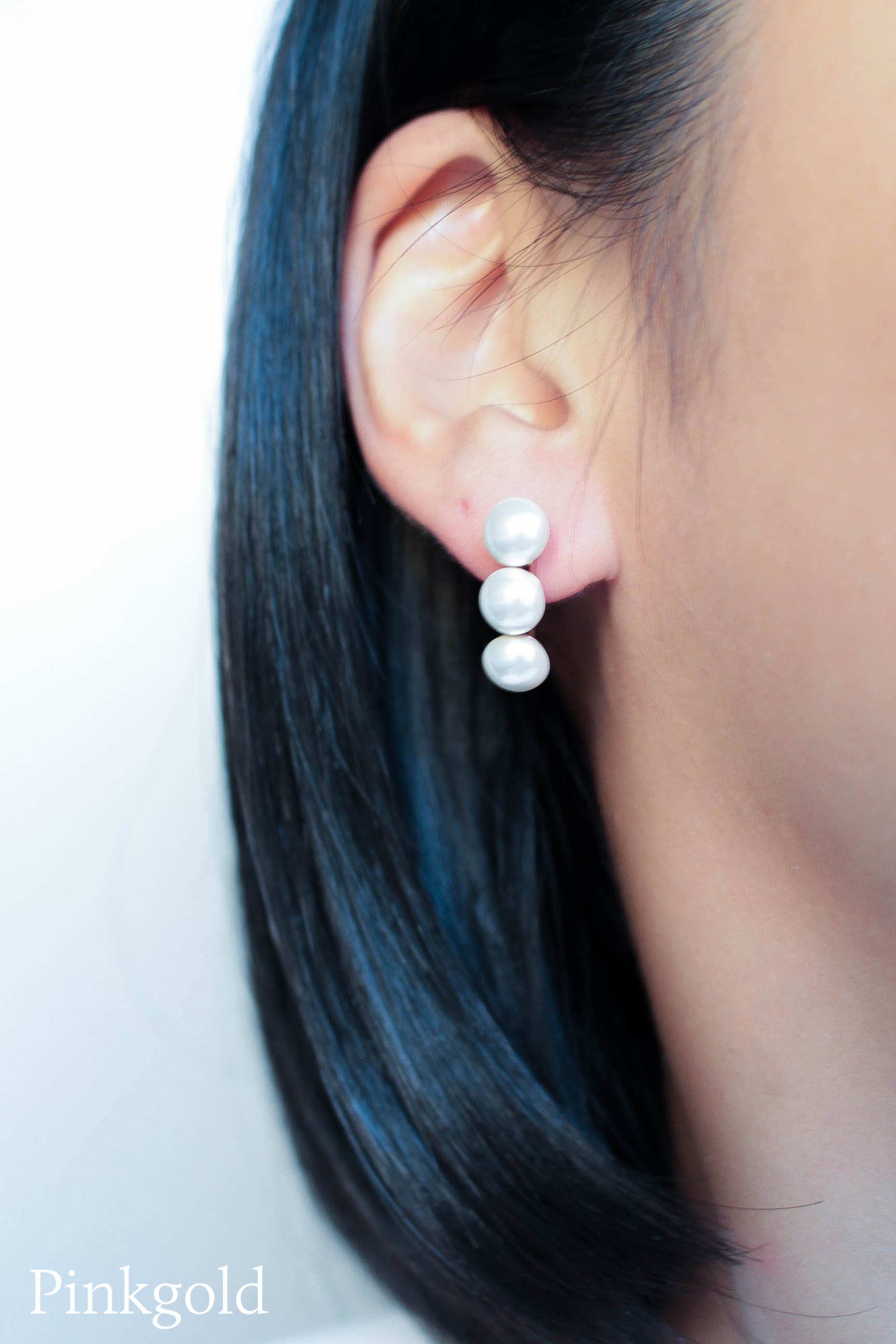 上品な艶を湛えたパールを縦に連ねた、洗練された印象のパールピアス。