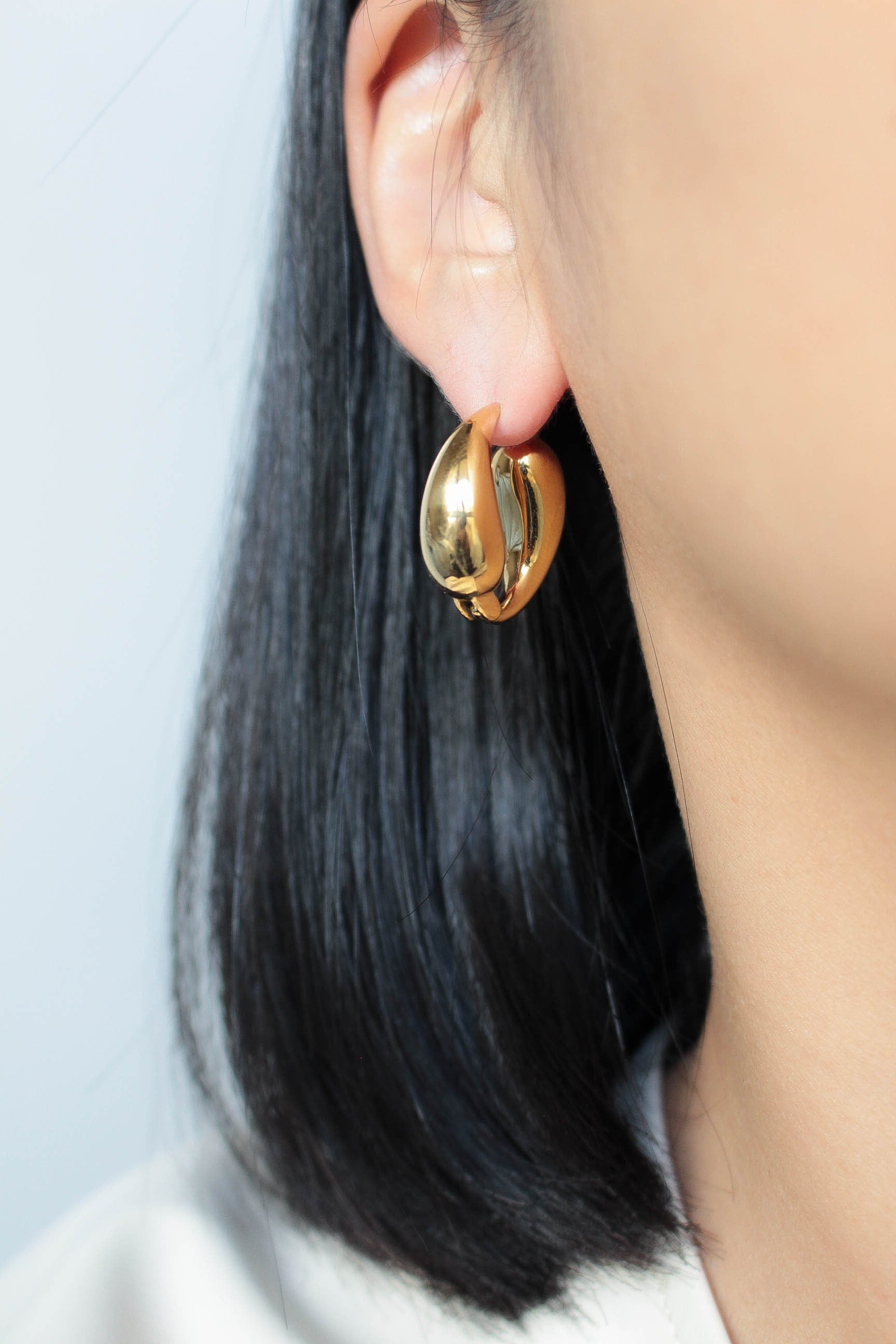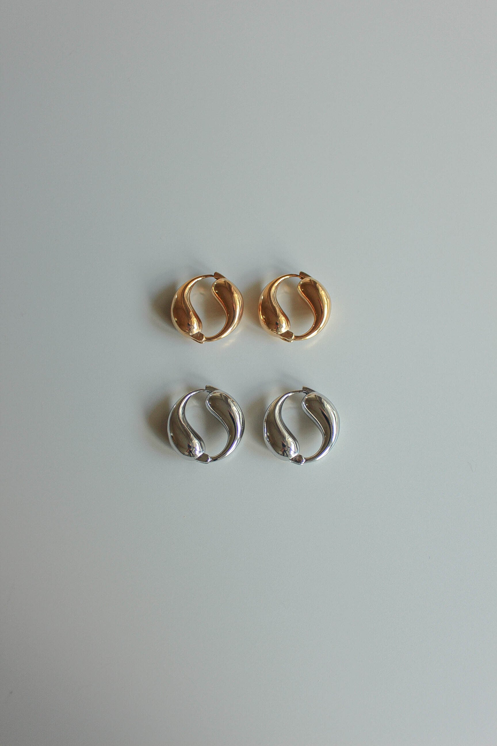 ドロップモチーフを逆さに組み合わせ輪っか上のフープピアスにデザインしたフーピアス。
