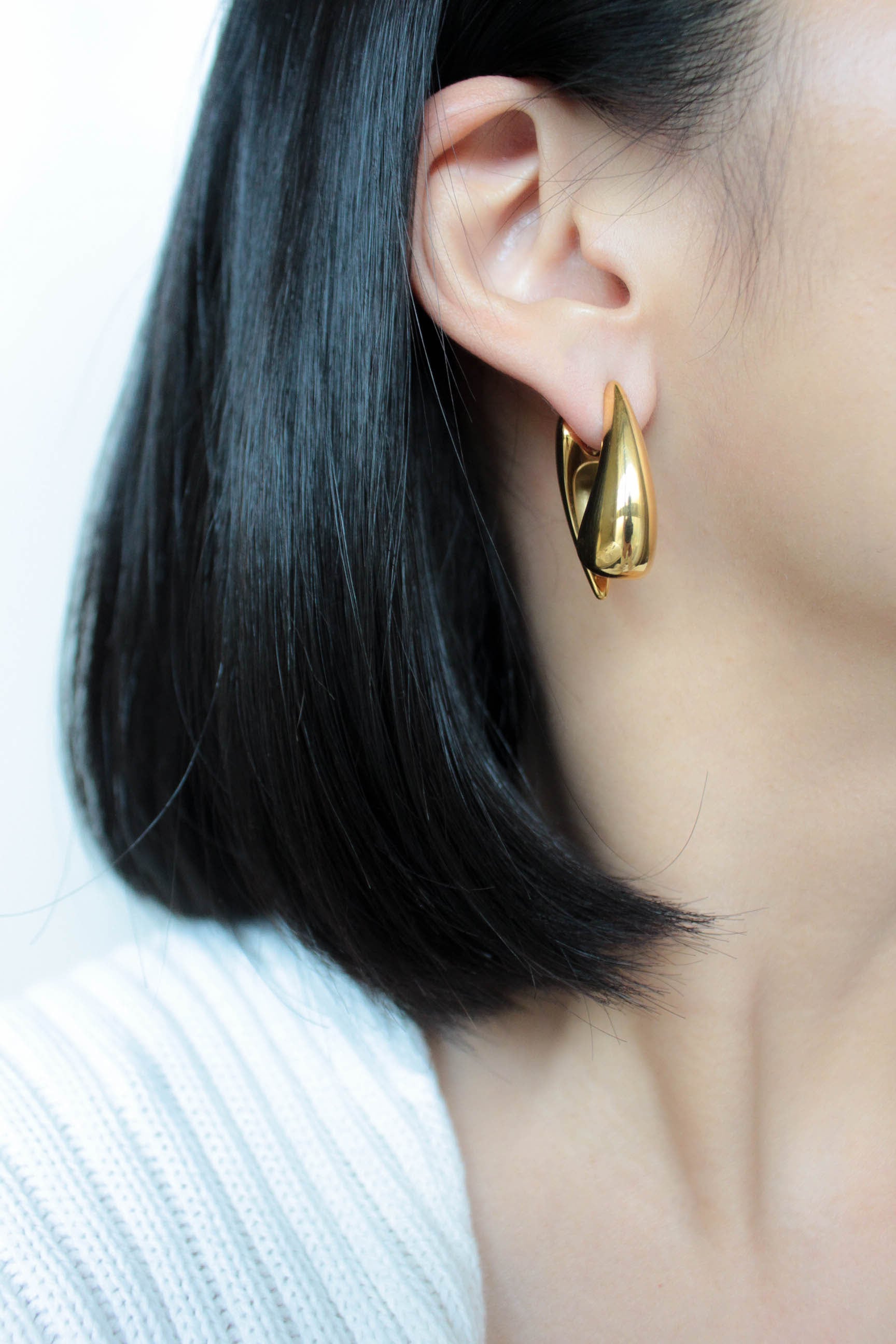 ドロップモチーフを逆さに組み合わせキャッチにしたスタッズピアス。