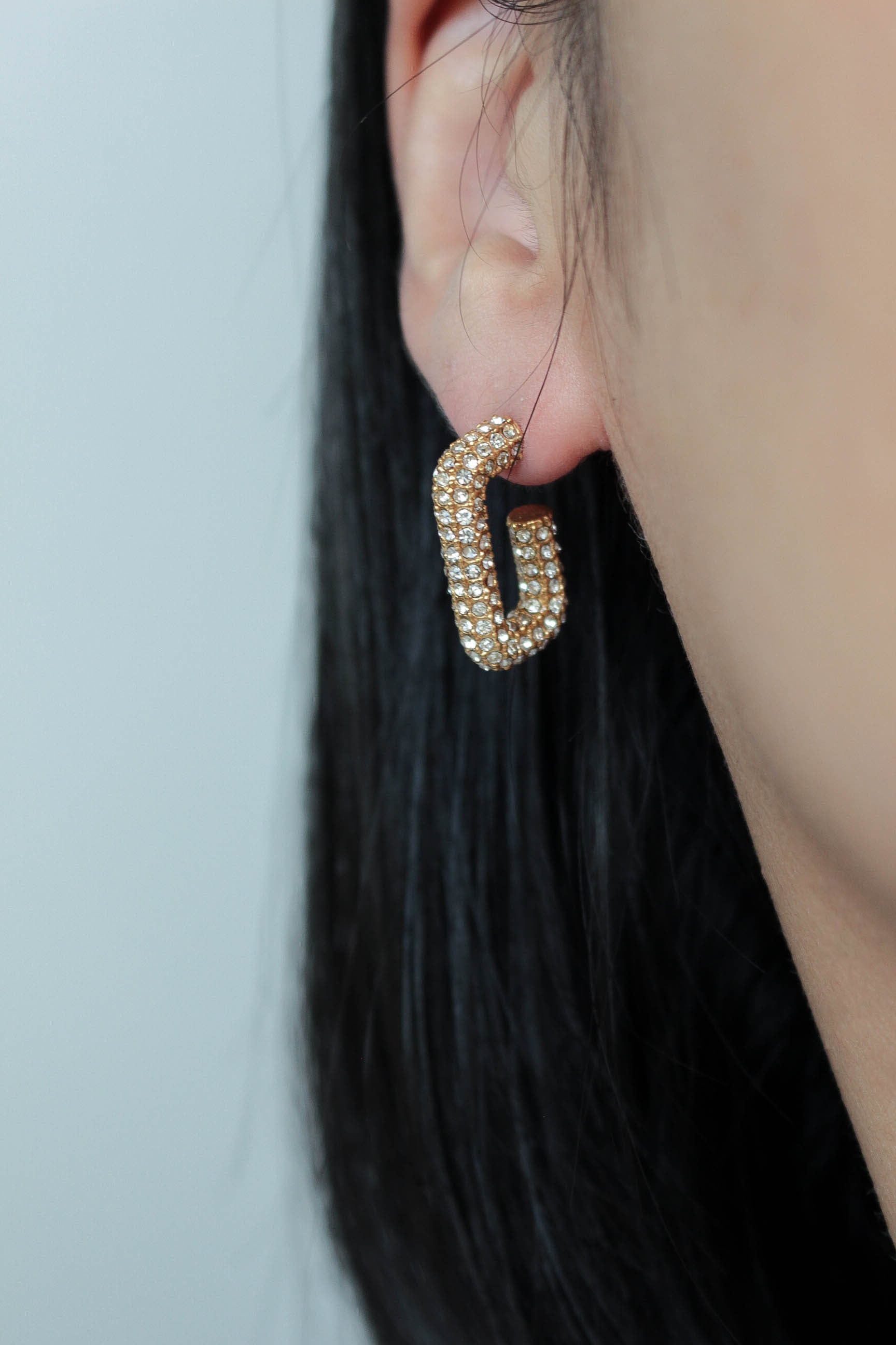 U字のフープピアスの全面に細やかなジルコニアダイヤをあしらったキラキラと輝く上品なピアス。