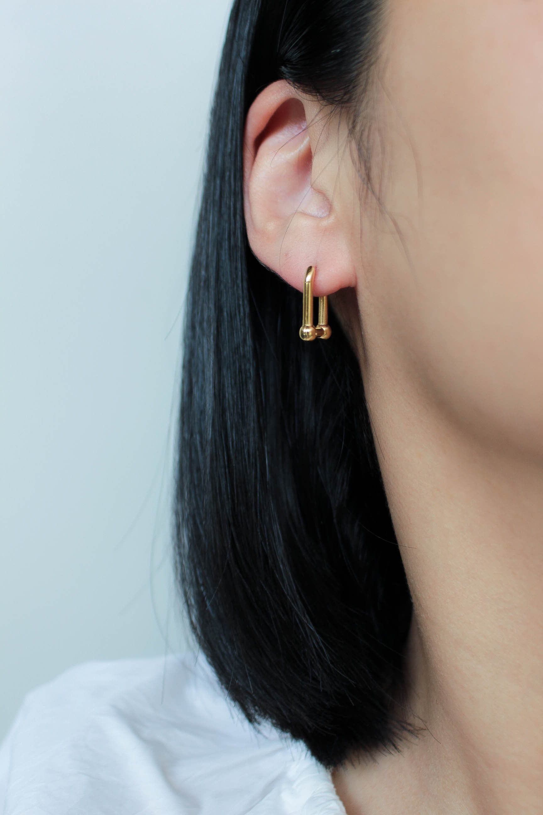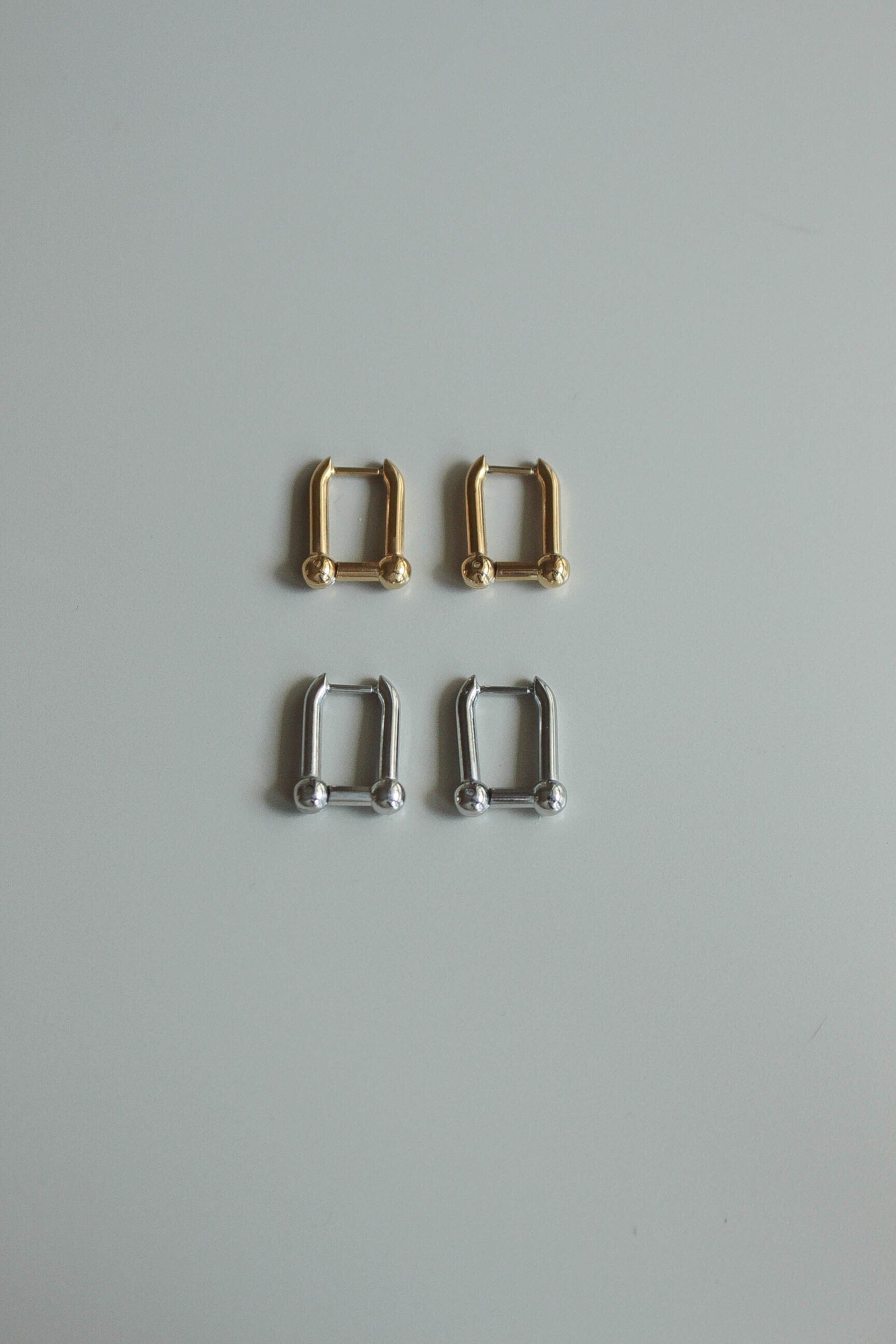 スクエア型のボールモチーフがアクセントになったミニピアス。