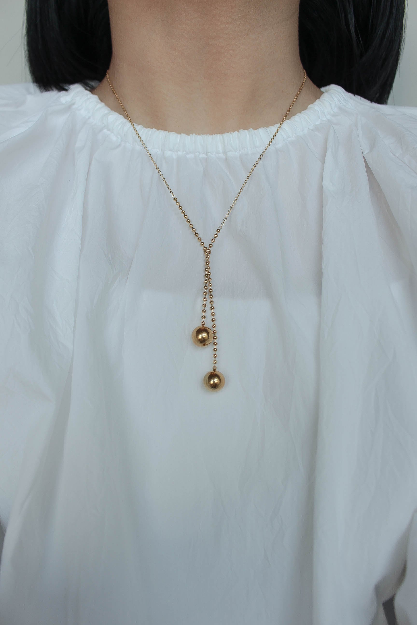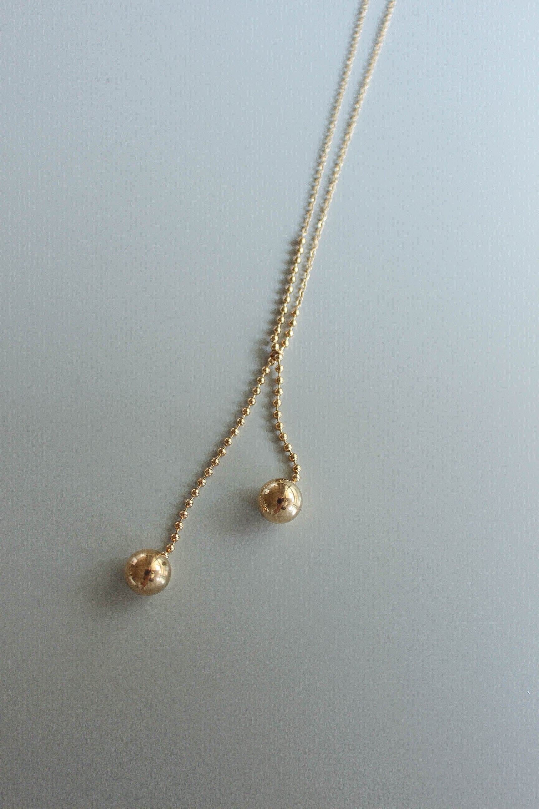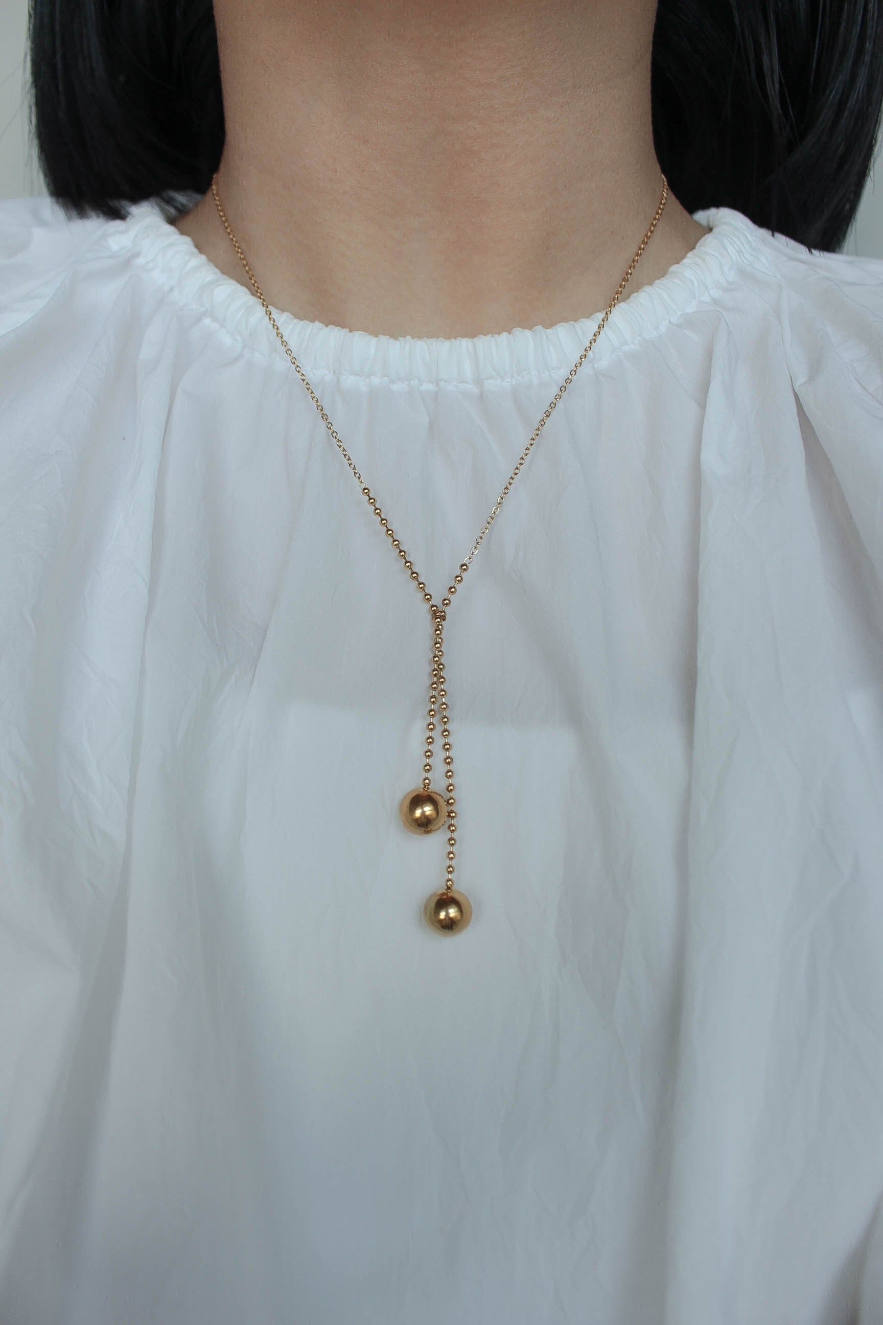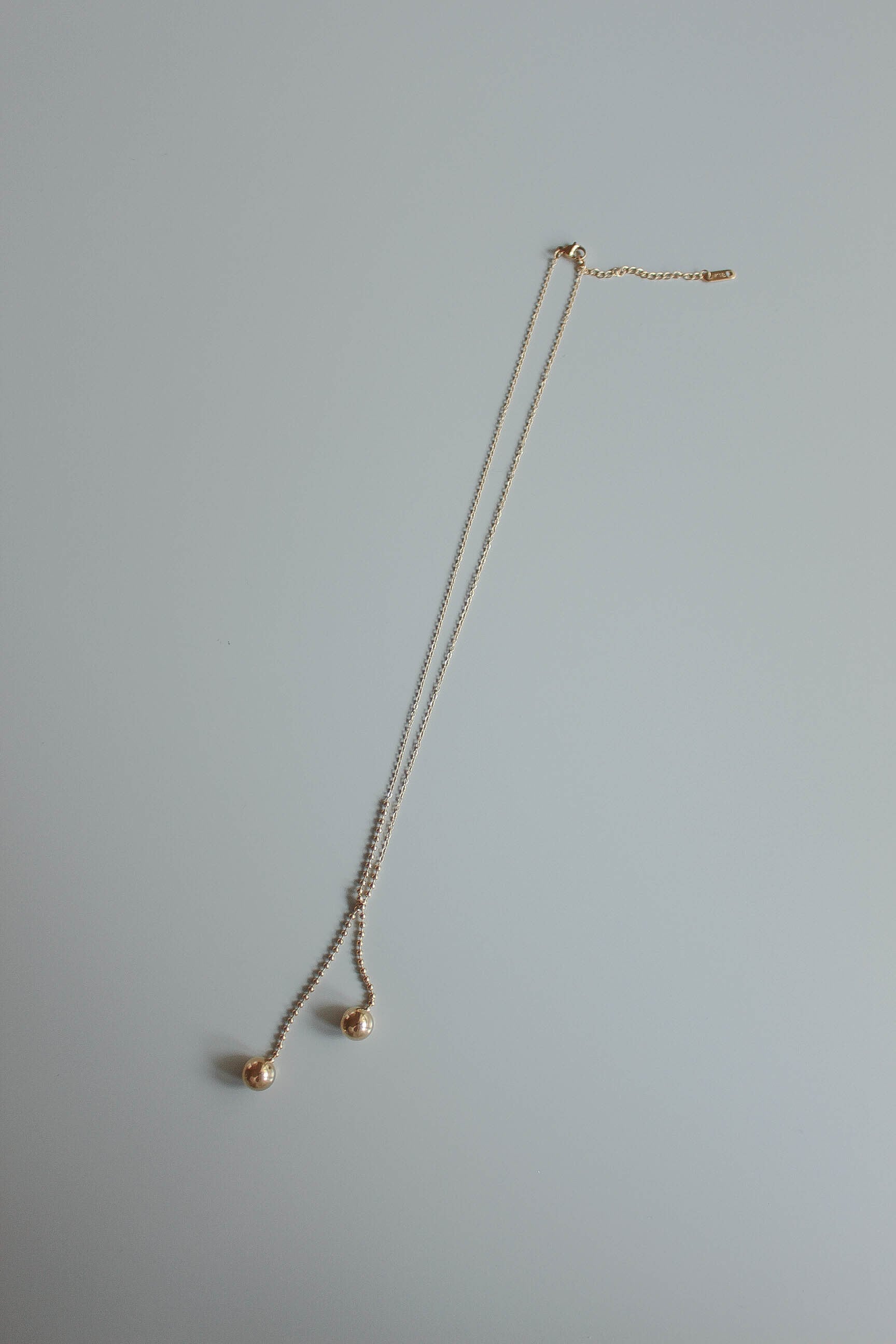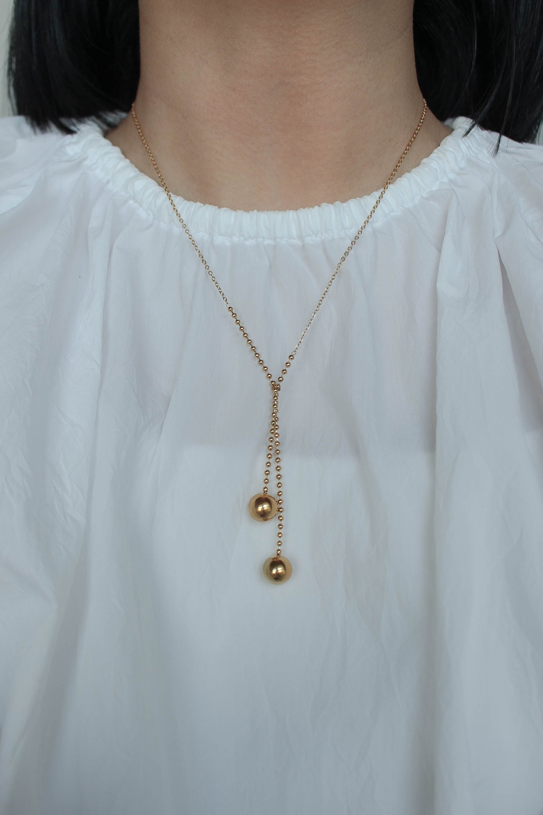 ビーズチェーンにボールモチーフをアクセントにあしらった動きのあるロングネックレス。